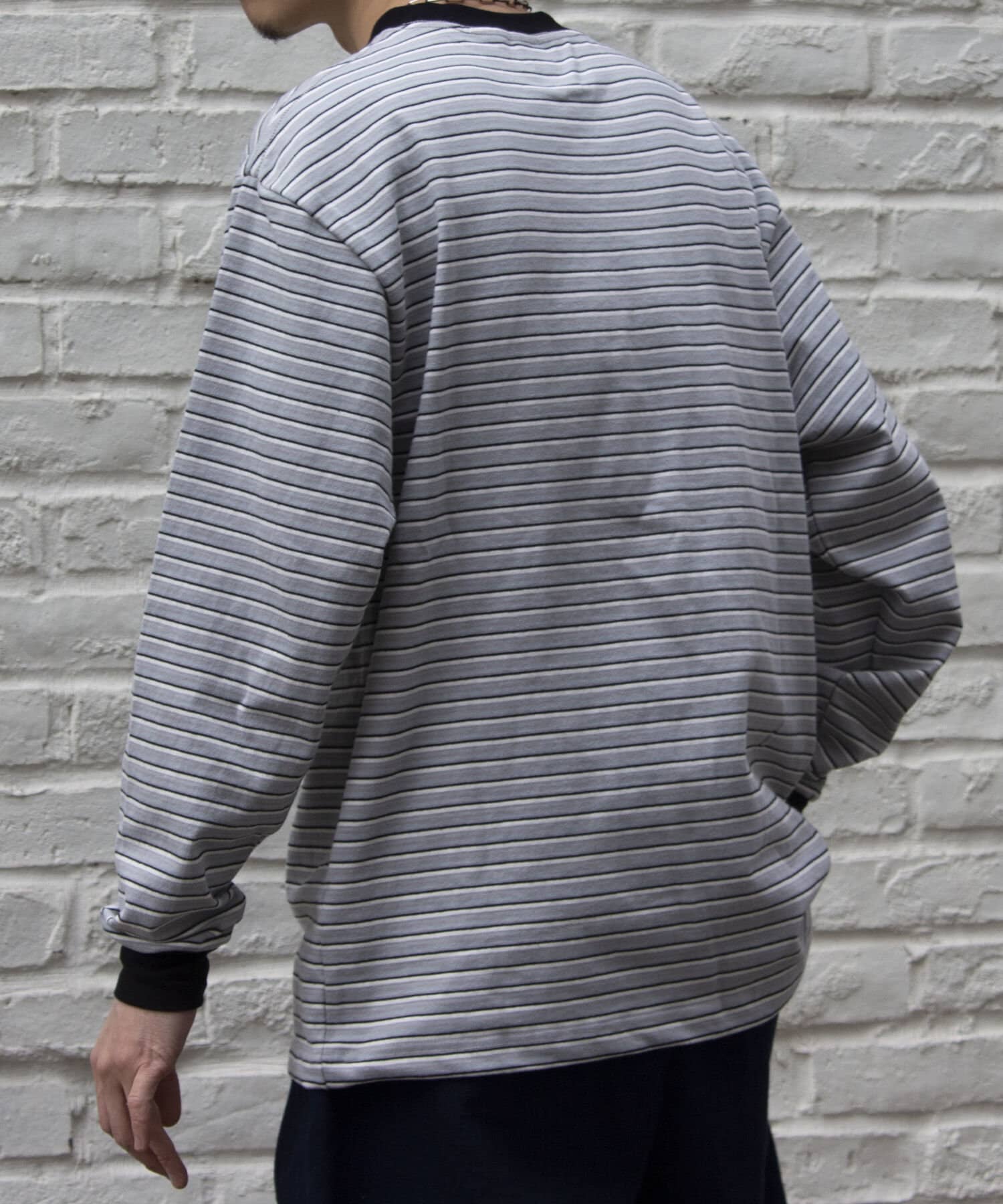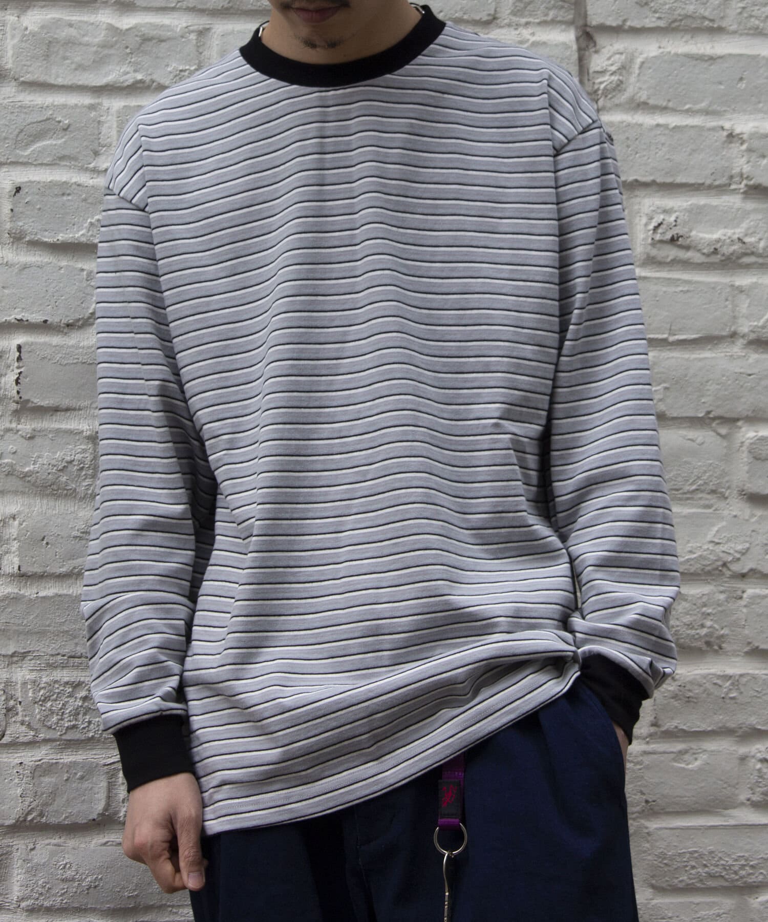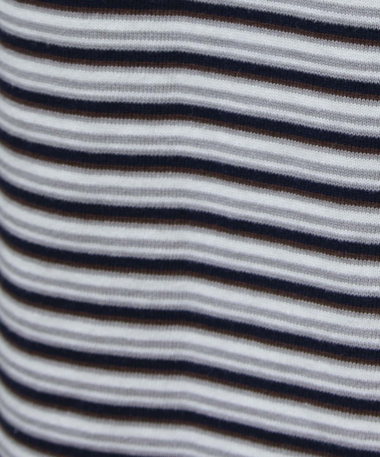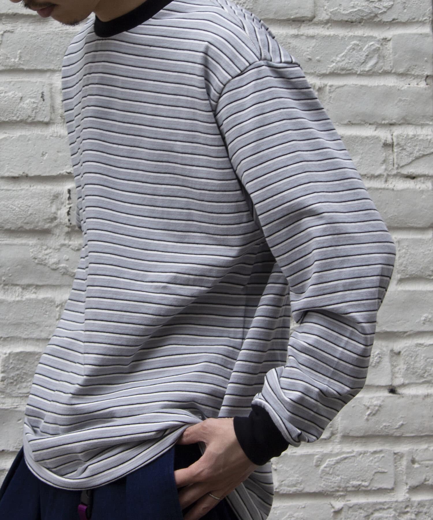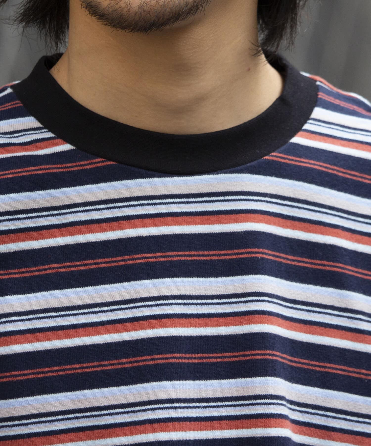 およそ9オンスのヘビーウェイト生地からなる、マルチボーダーのロンTです。