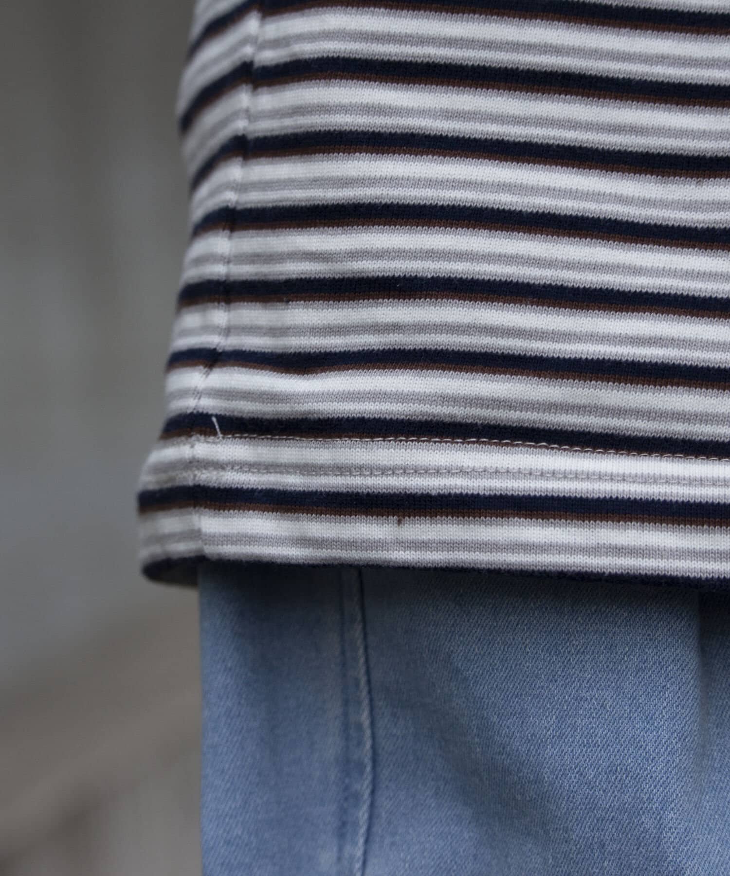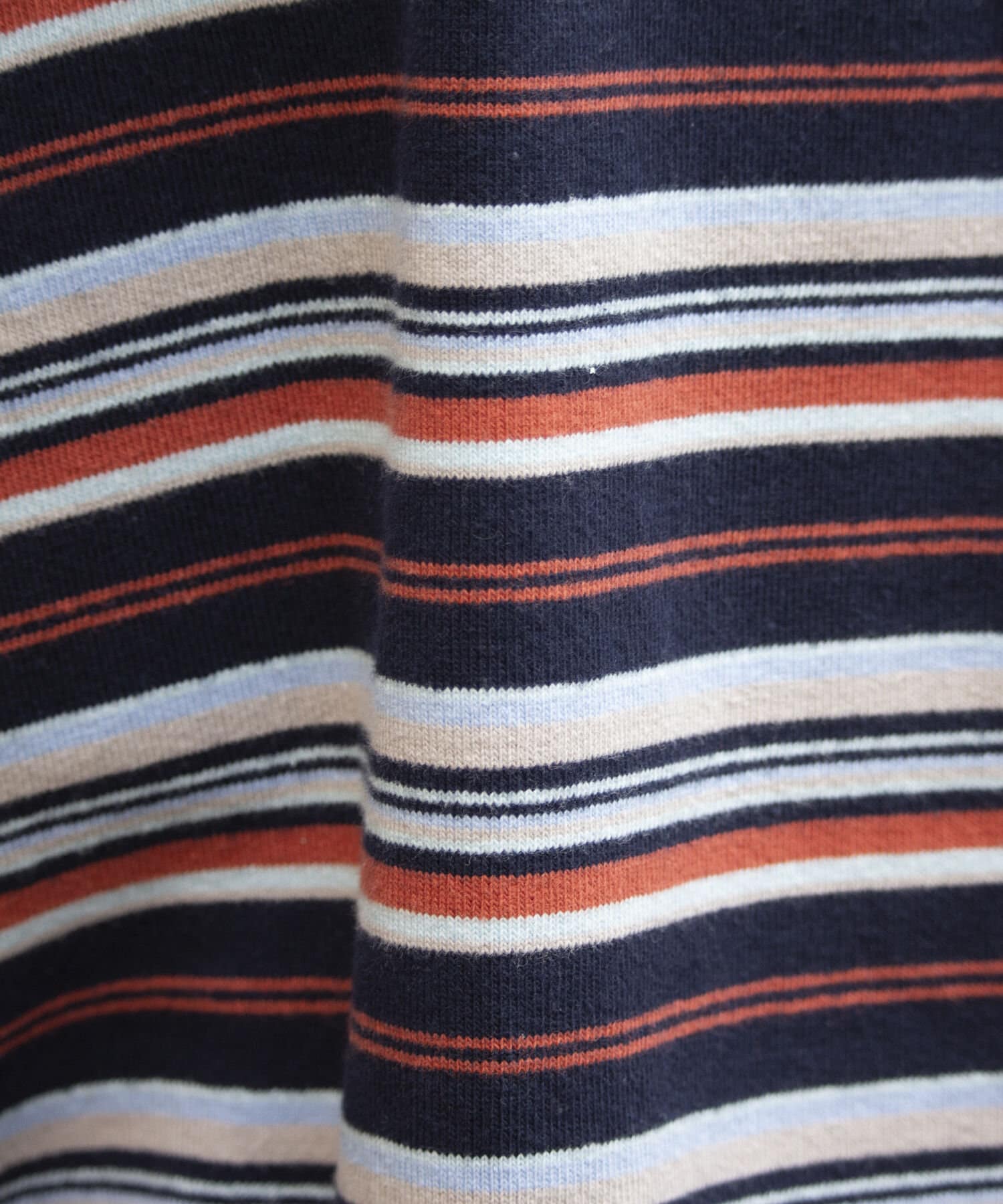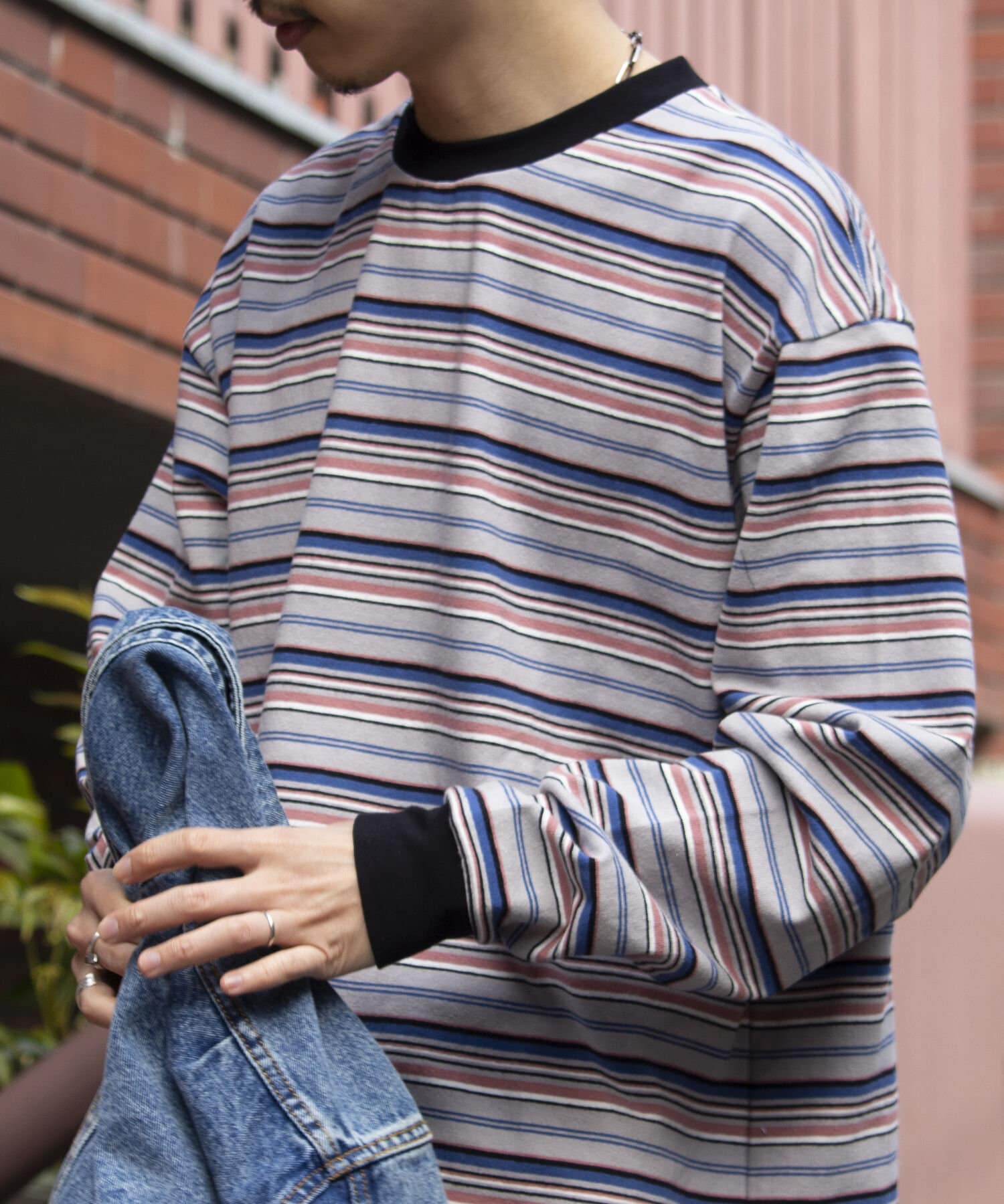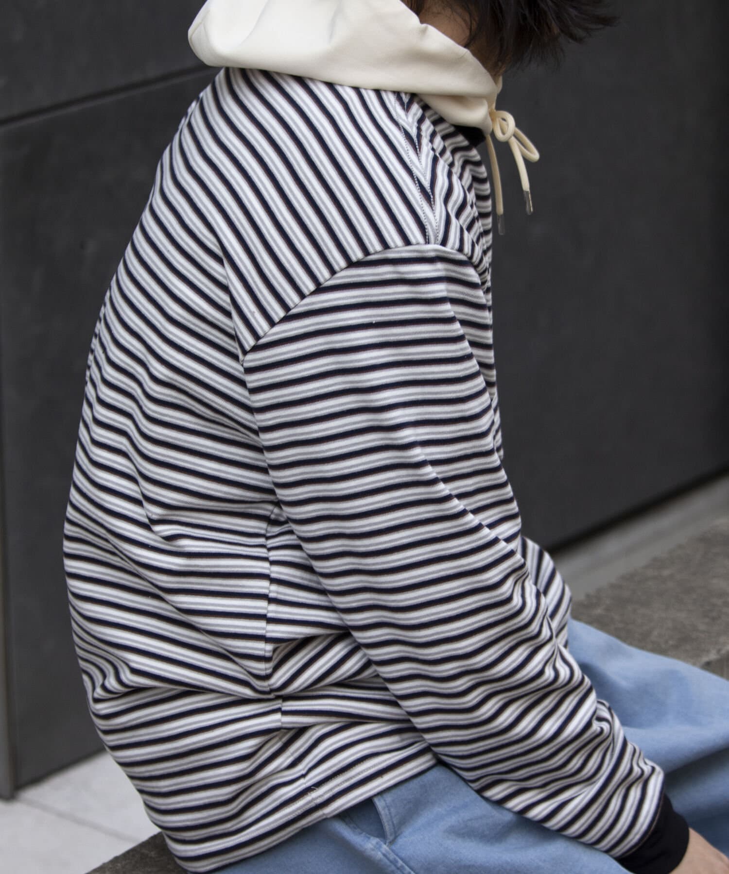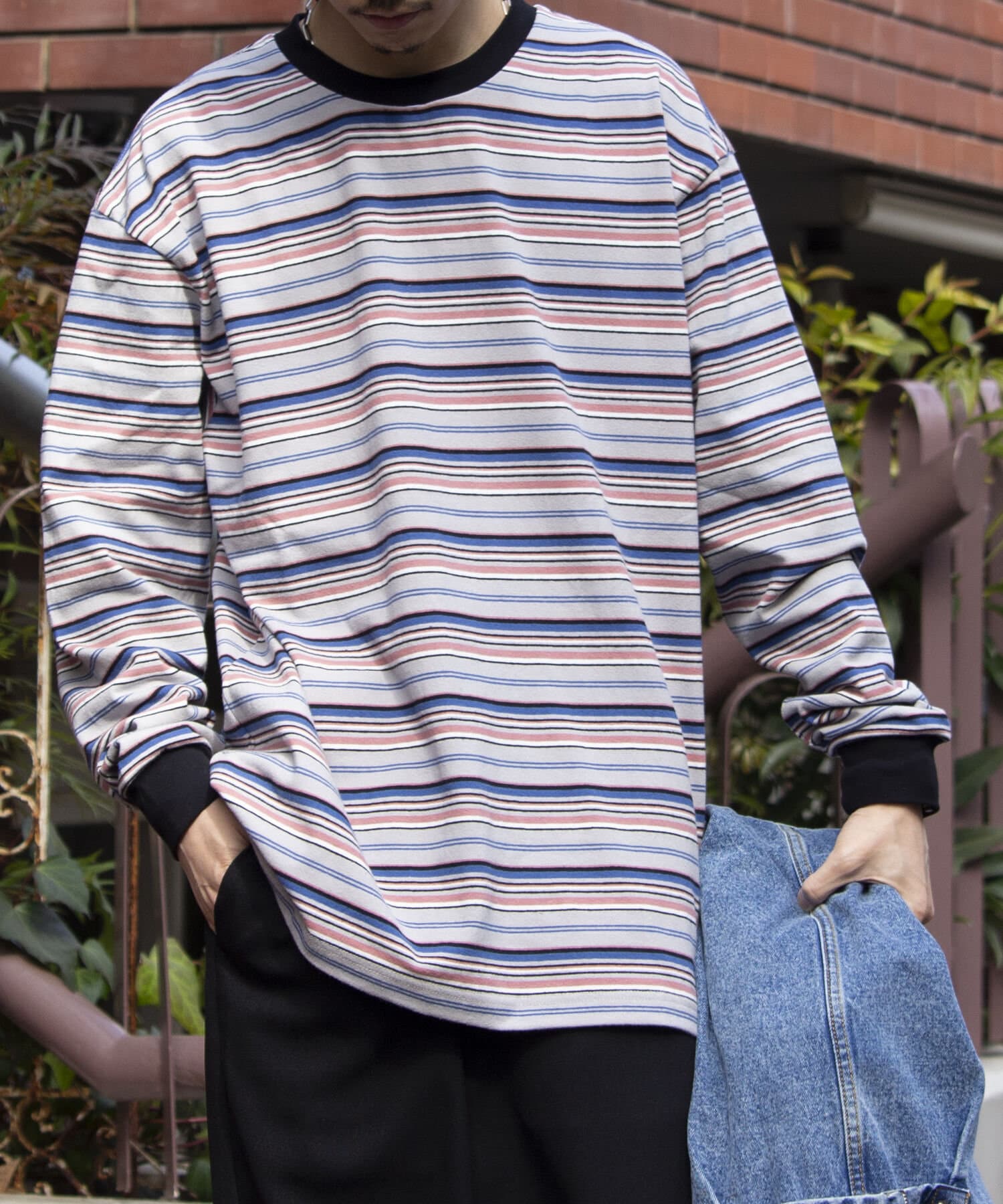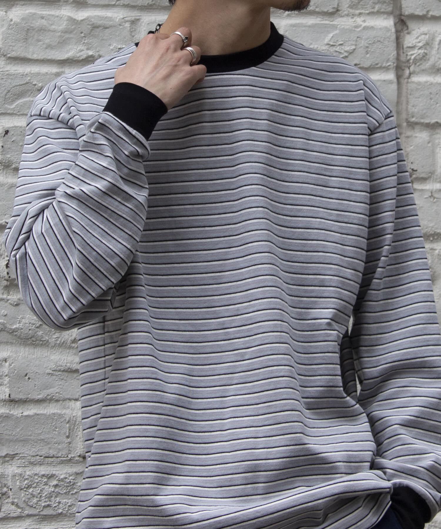 およそ9オンスのヘビーウェイト生地からなる、マルチボーダーのロンTです。