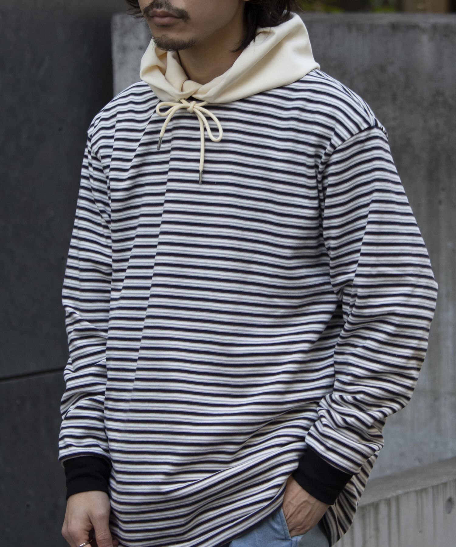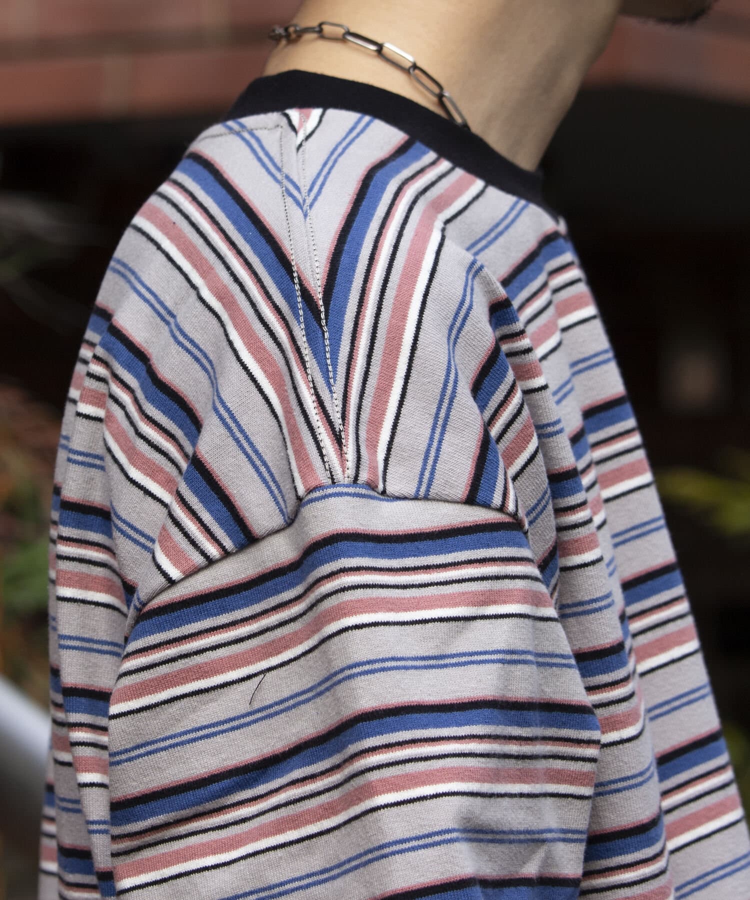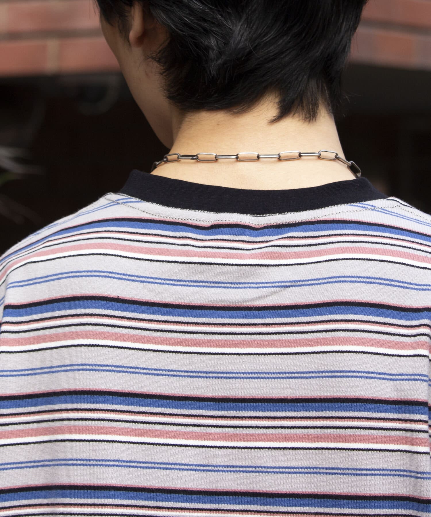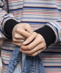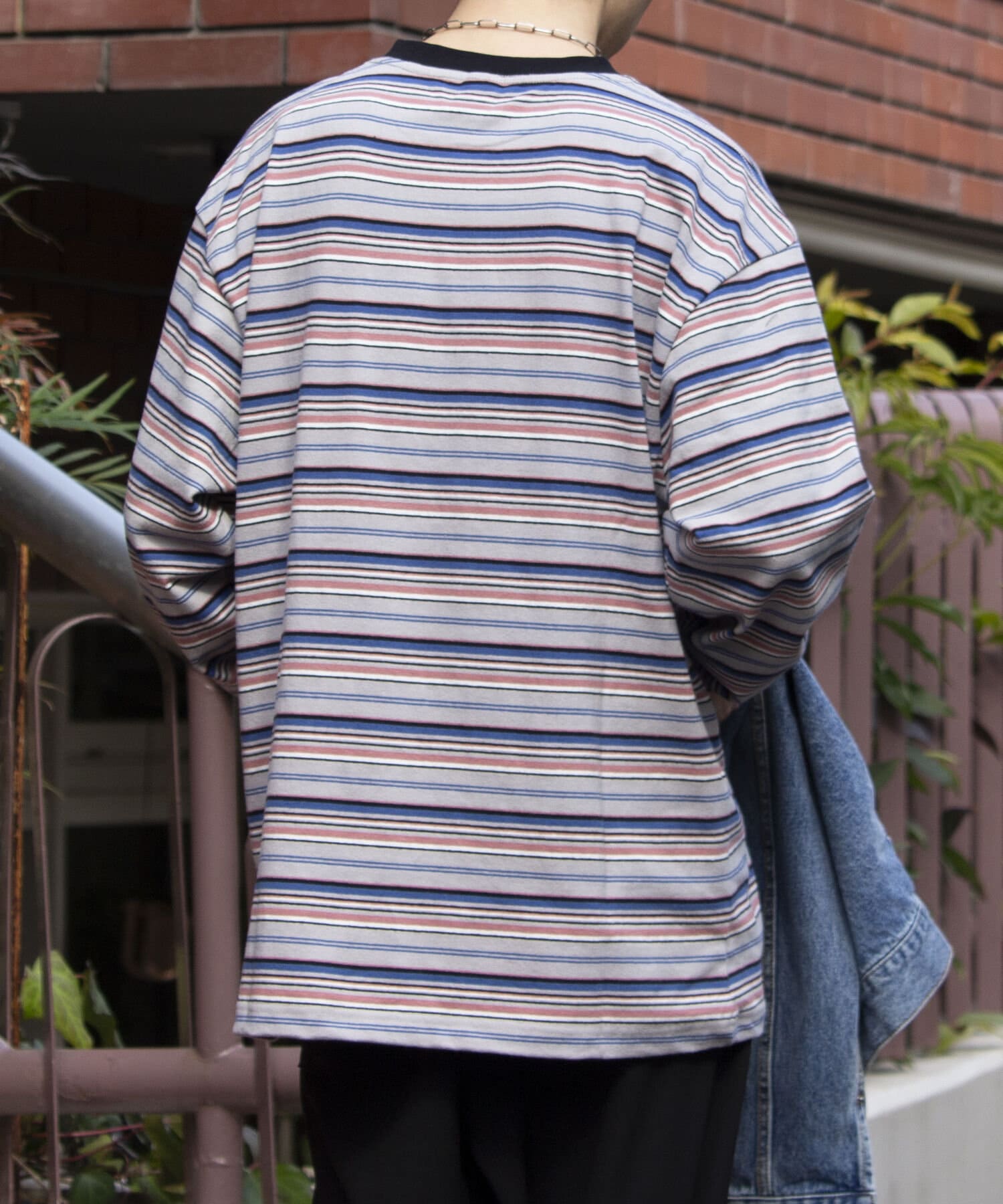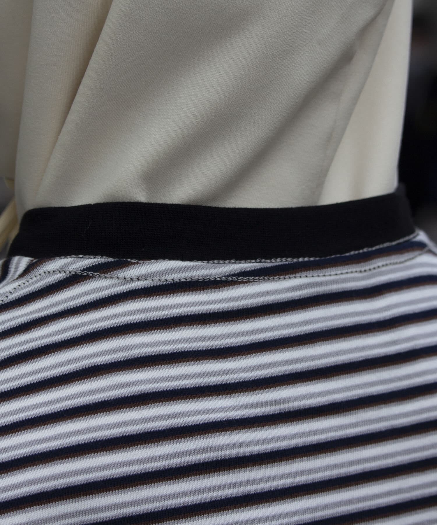 およそ9オンスのヘビーウェイト生地からなる、マルチボーダーのロンTです。