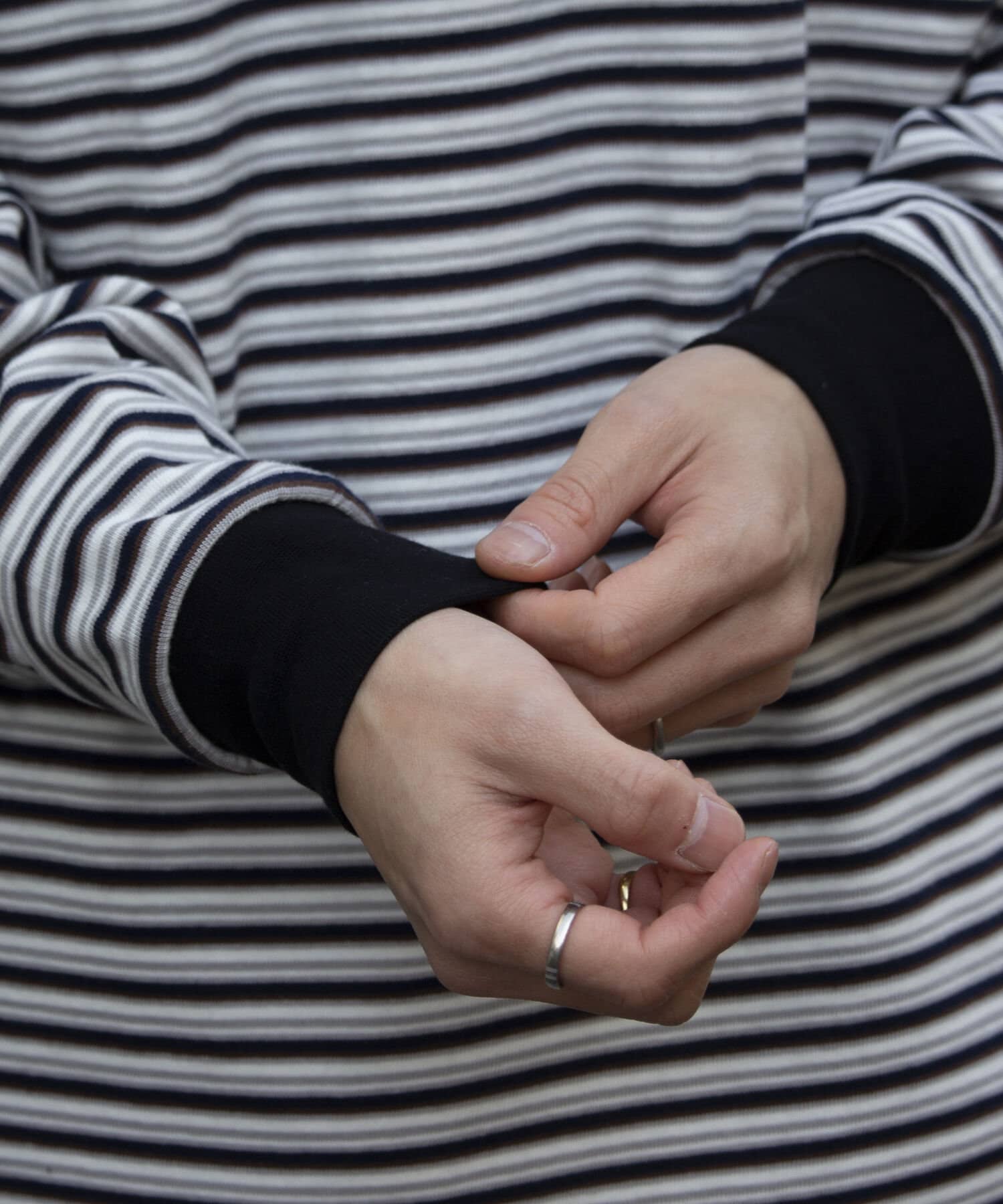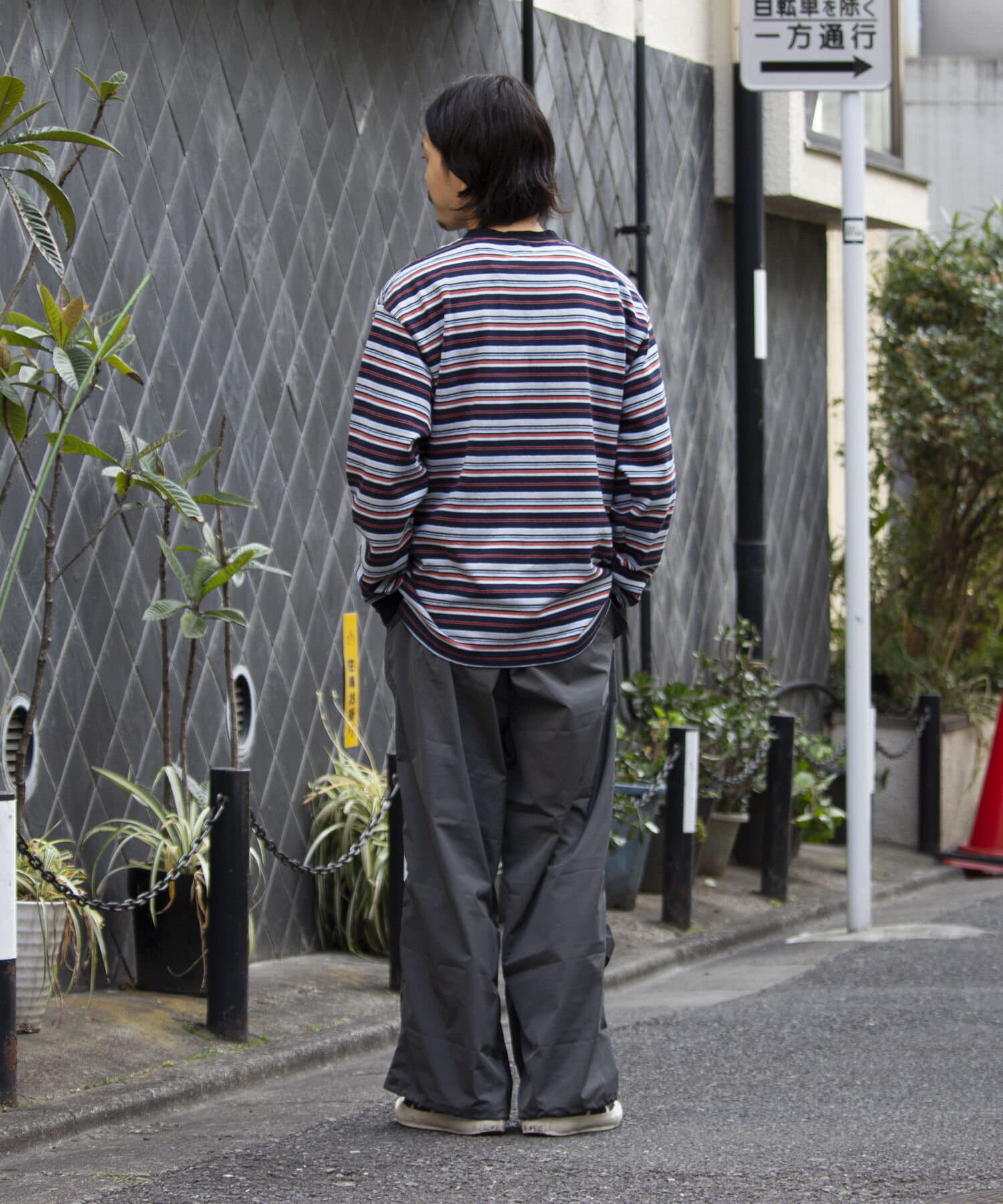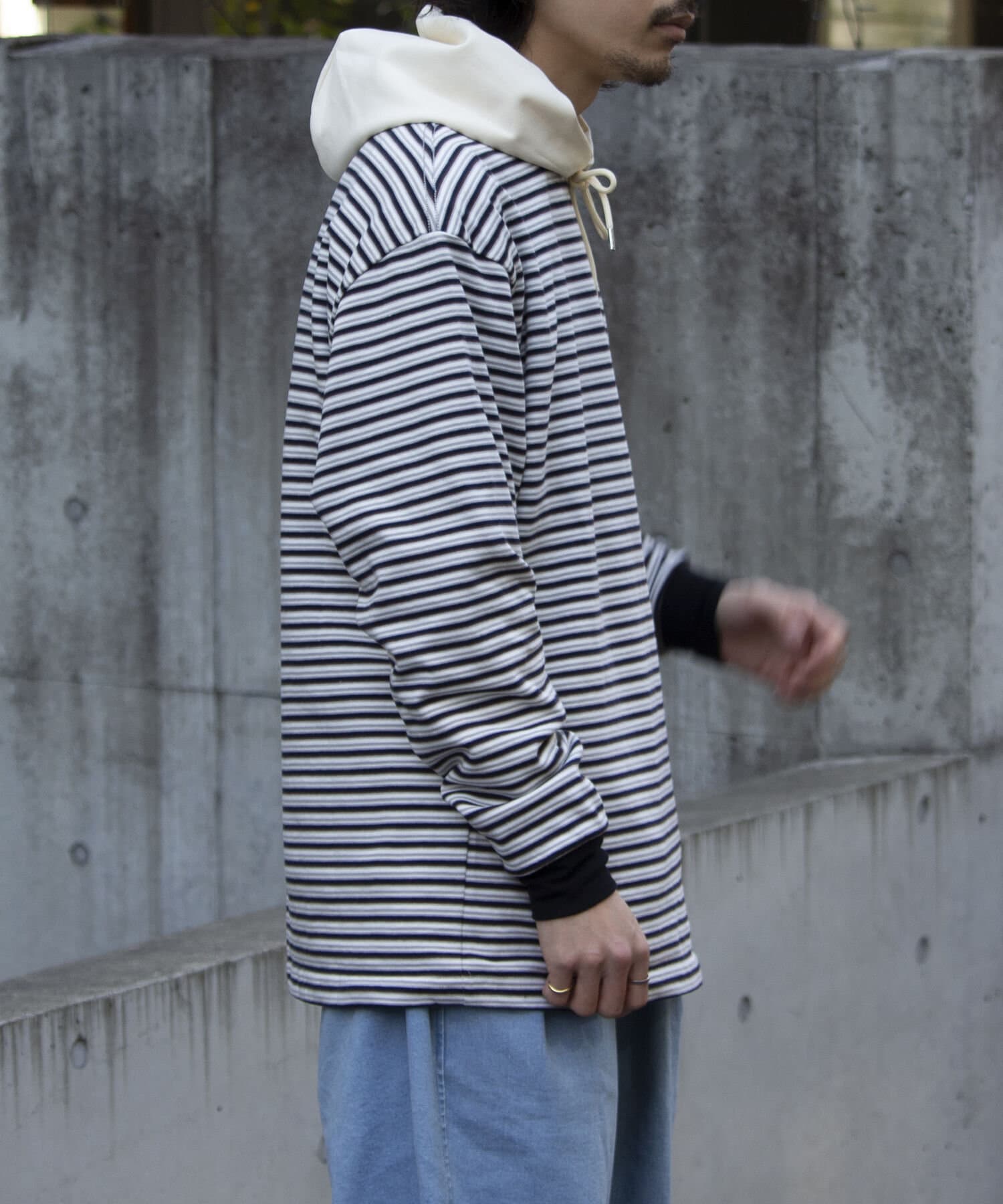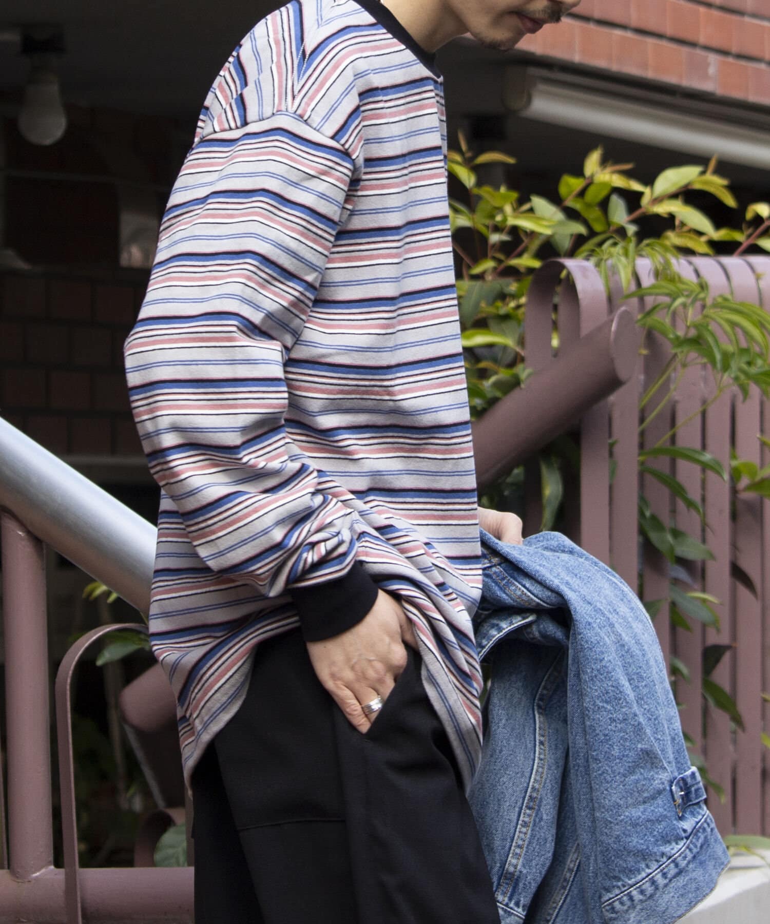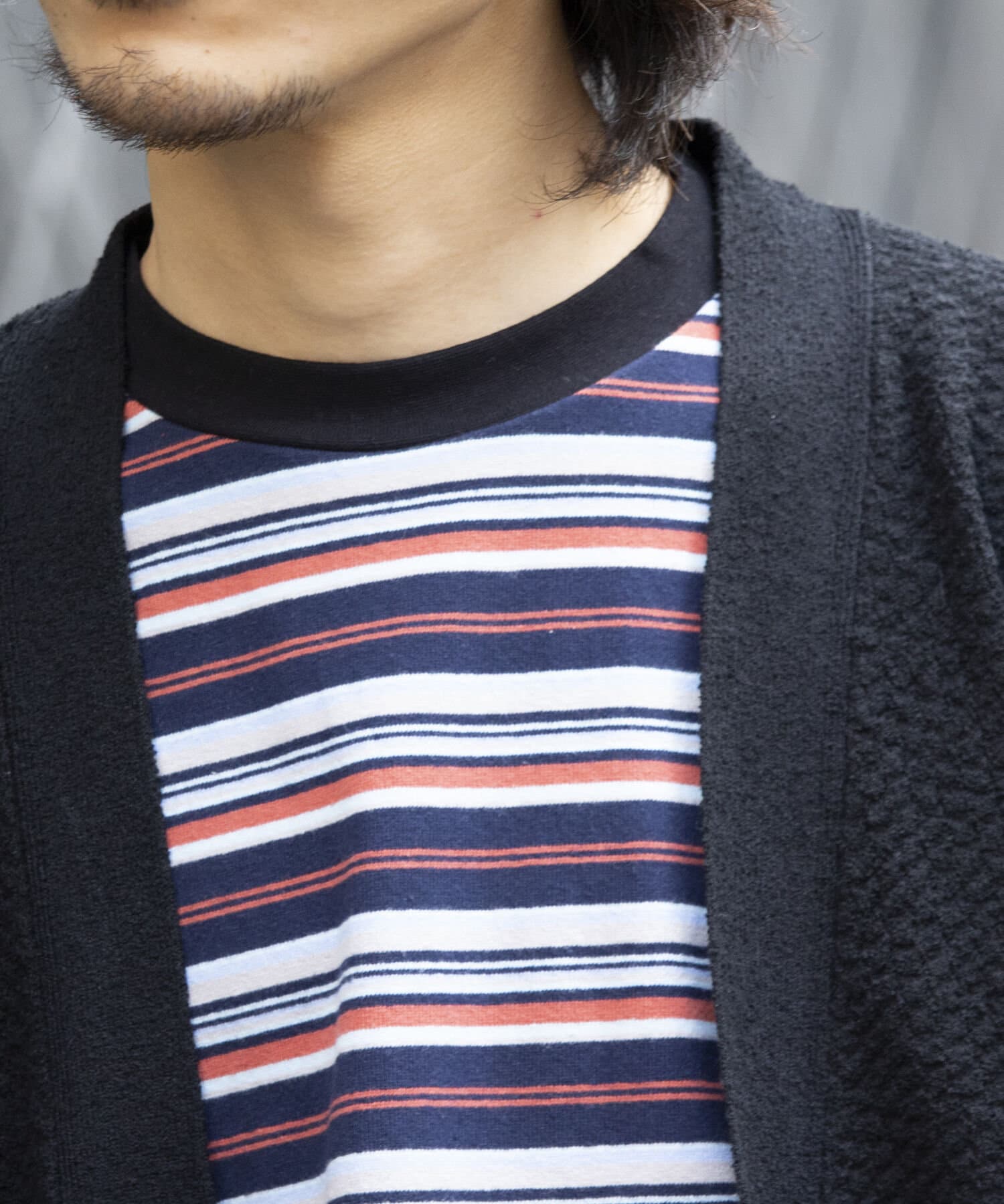 およそ9オンスのヘビーウェイト生地からなる、マルチボーダーのロンTです。