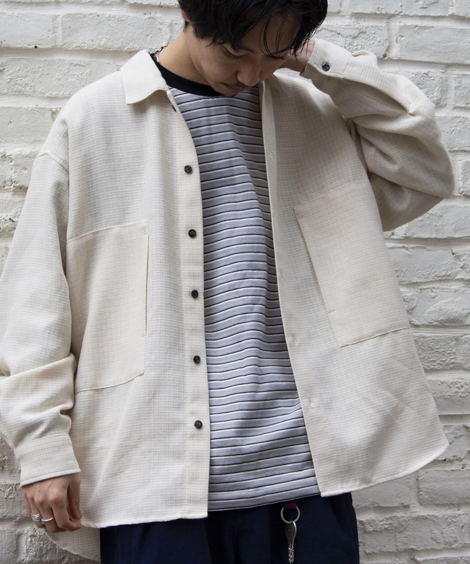 ドライなタッチとちゃんと重みが感じられる素材は、着応えもあり、カラーリングと相まってアメカジスタイルやストリートスタイルにばっちりハマります。