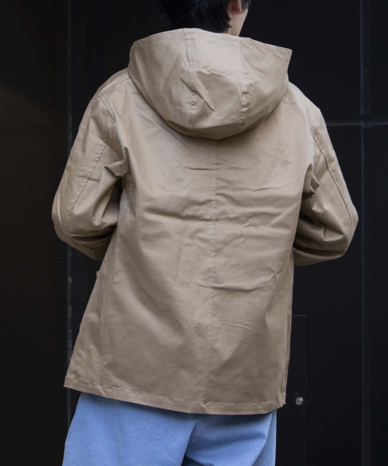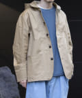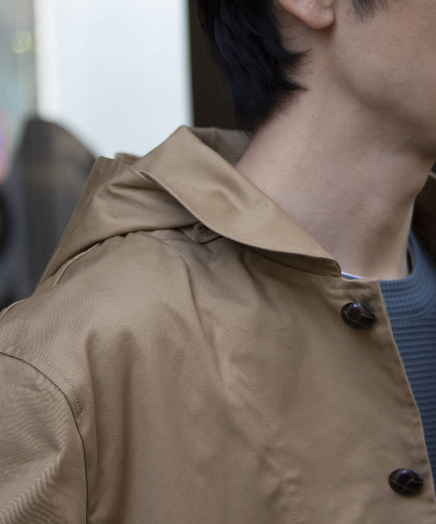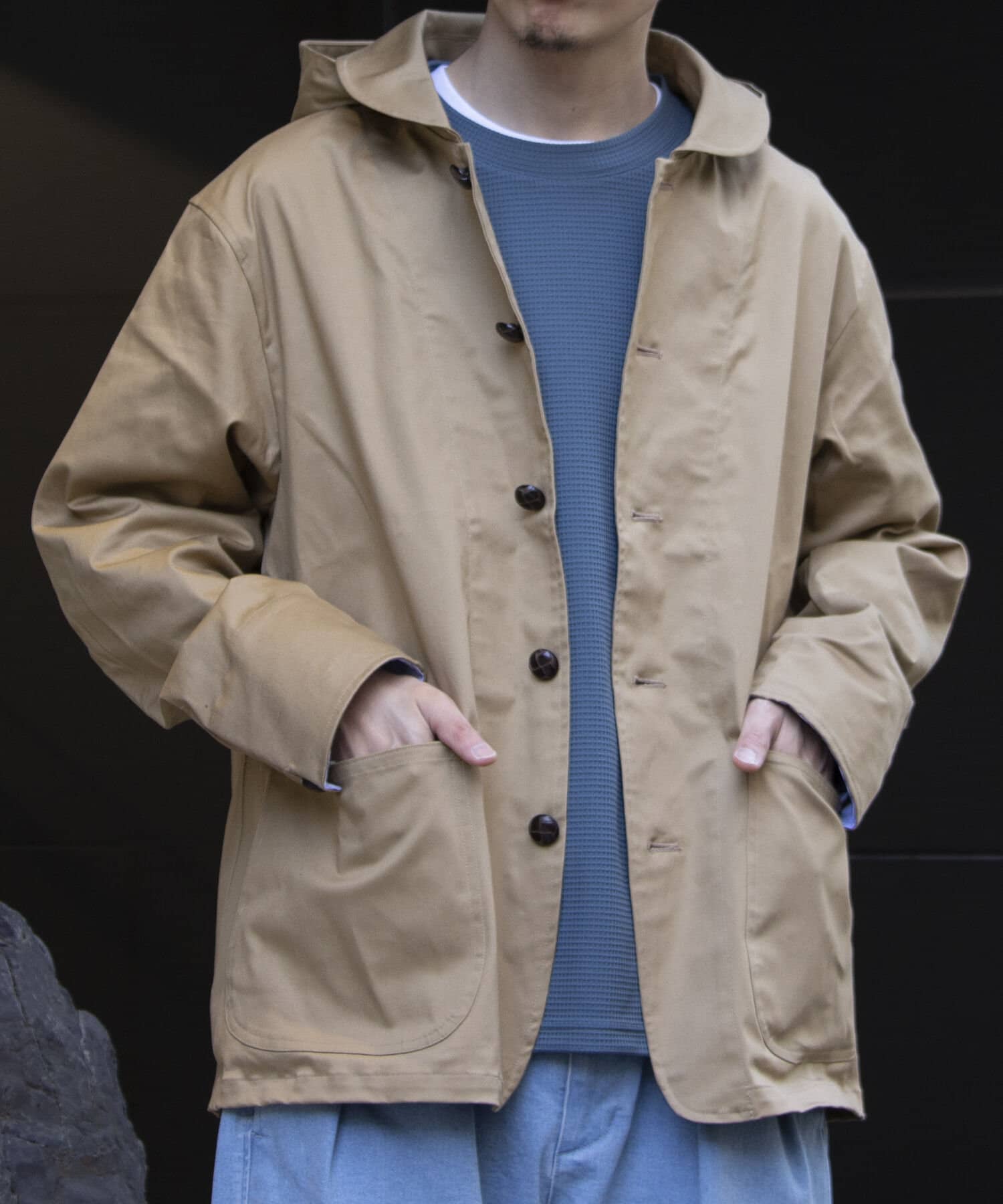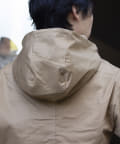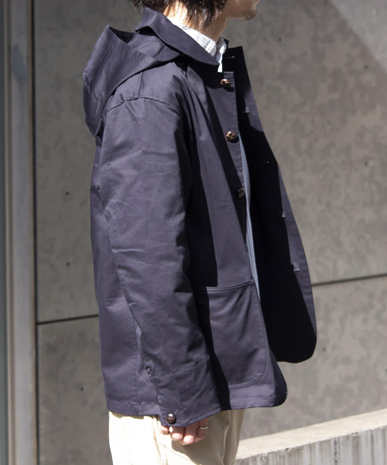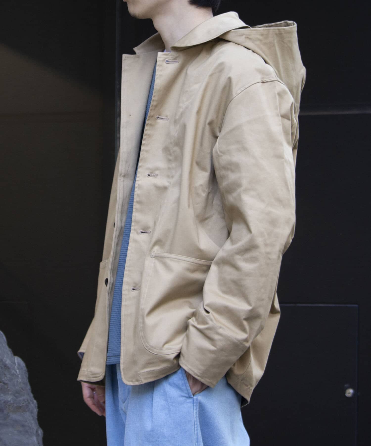 さっと羽織るだけでサマになる春先の羽織りとして丁度良いフードブルゾン。