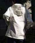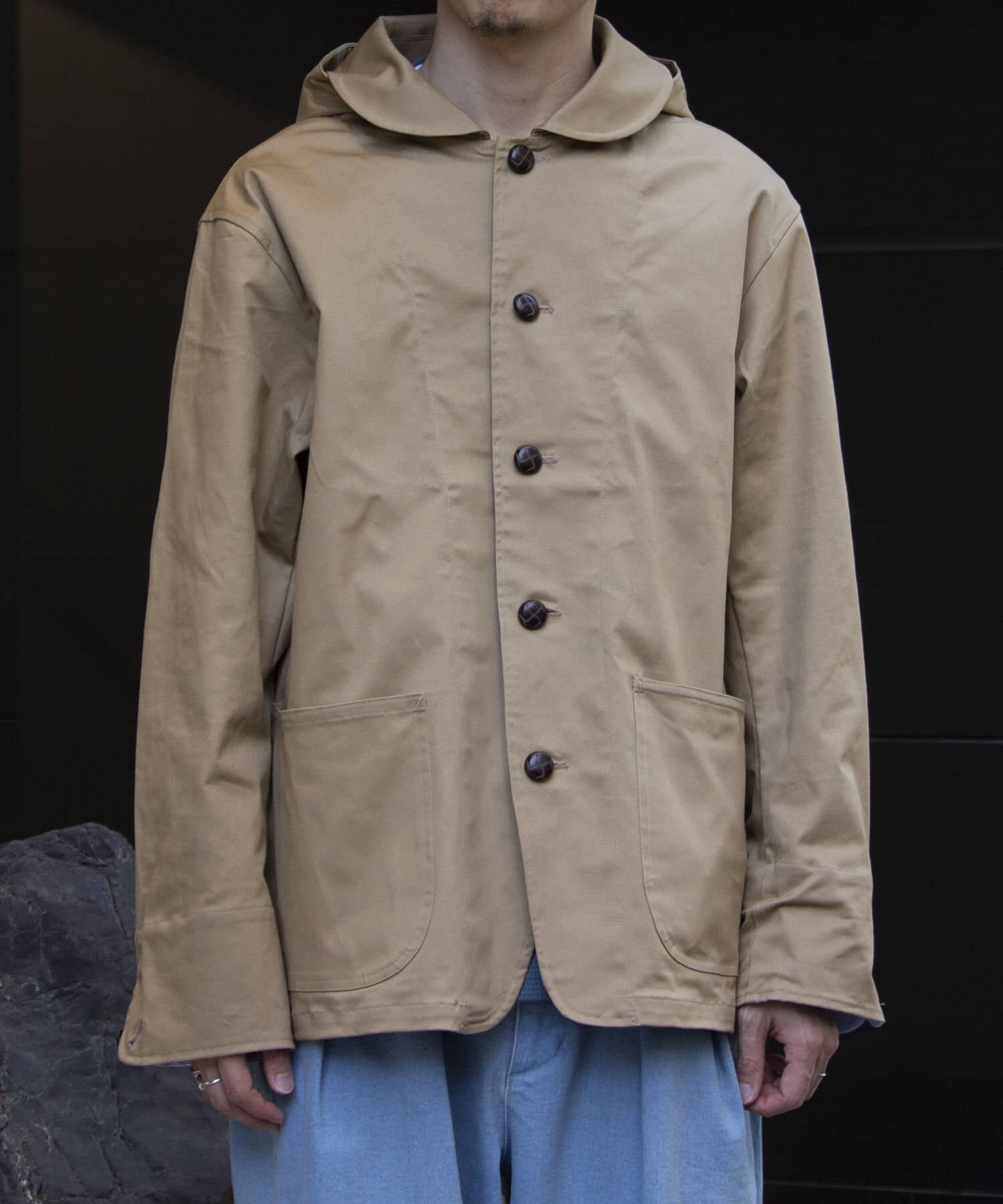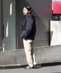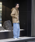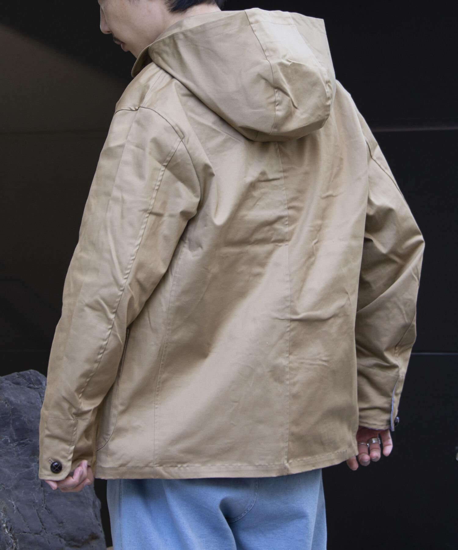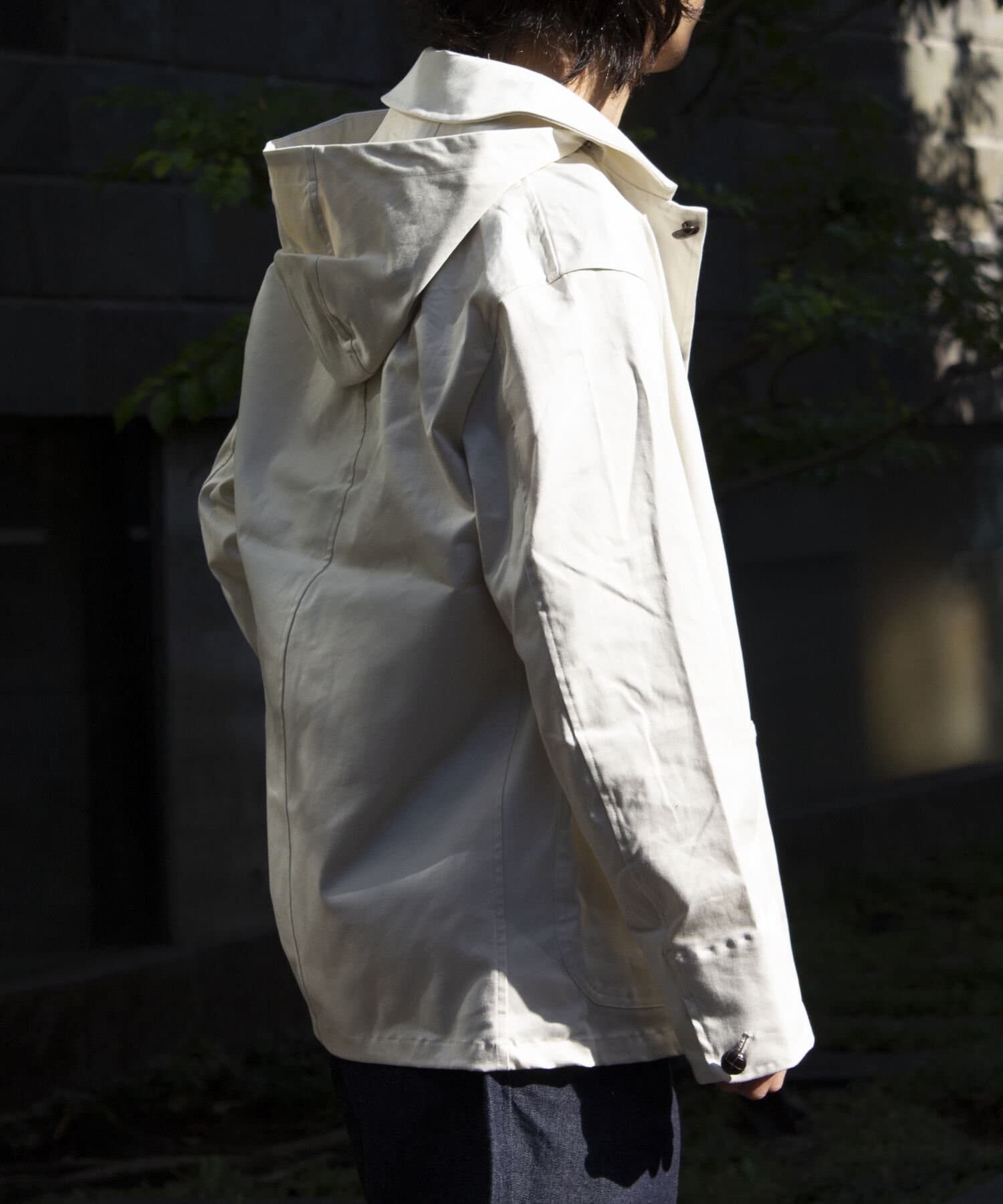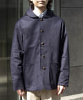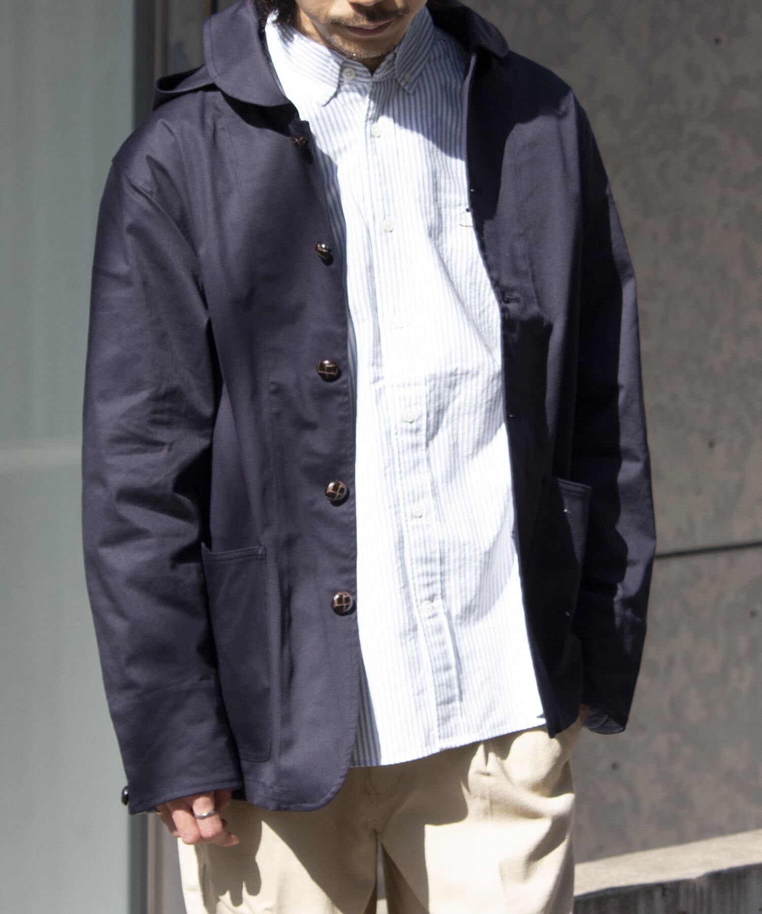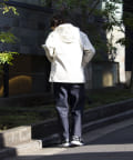 さっと羽織るだけでサマになる春先の羽織りとして丁度良いフードブルゾン。