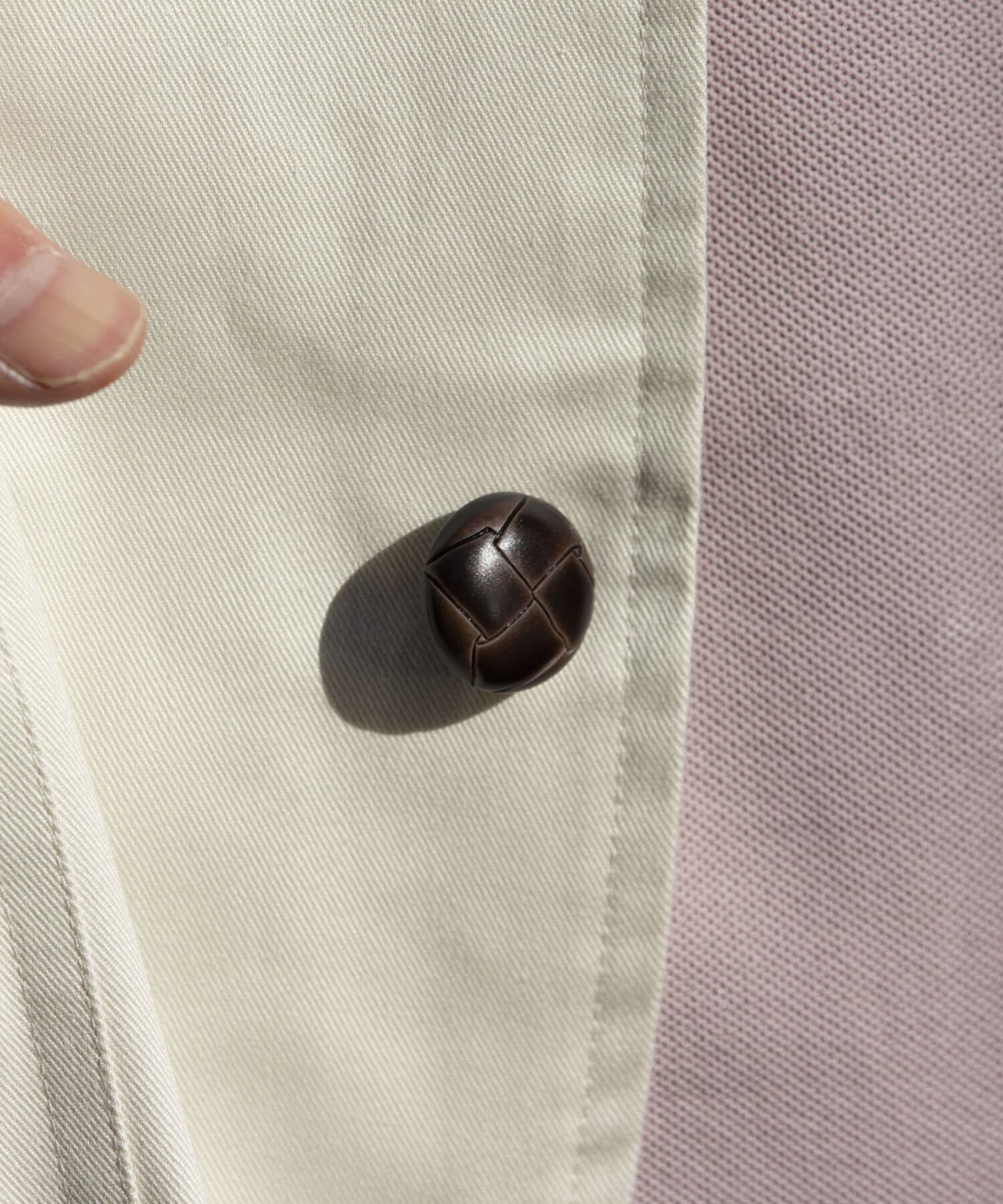 ラウンドカラーやクルミ釦がデザインのアクセントになっています。