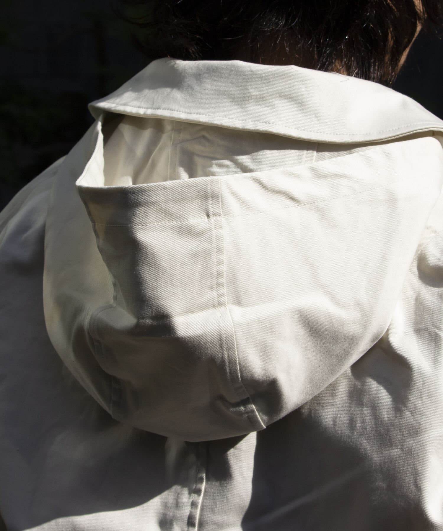 フードは簡単に取り外し可能で、気分やお好みに合わせて着こなしに変化を付けることができます。