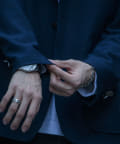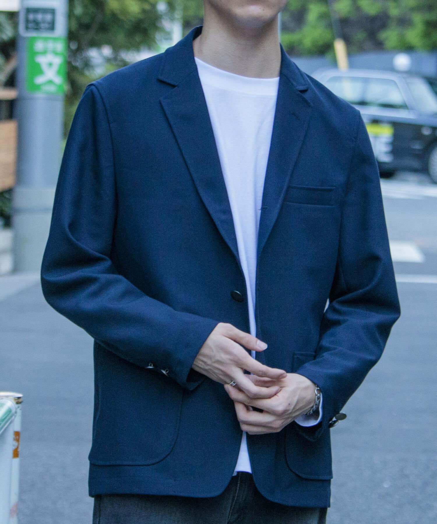 細いラペル幅などデザインさせすぎないモダンな印象を感じるブレザーです。