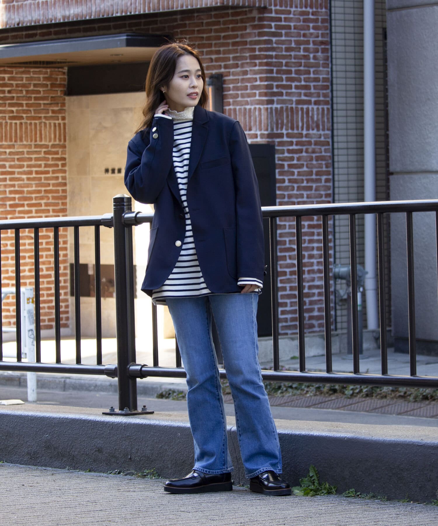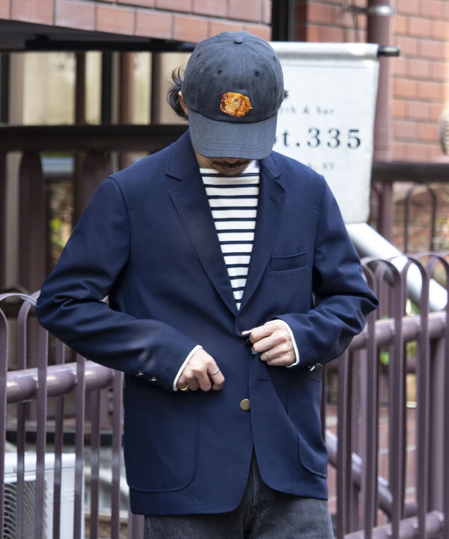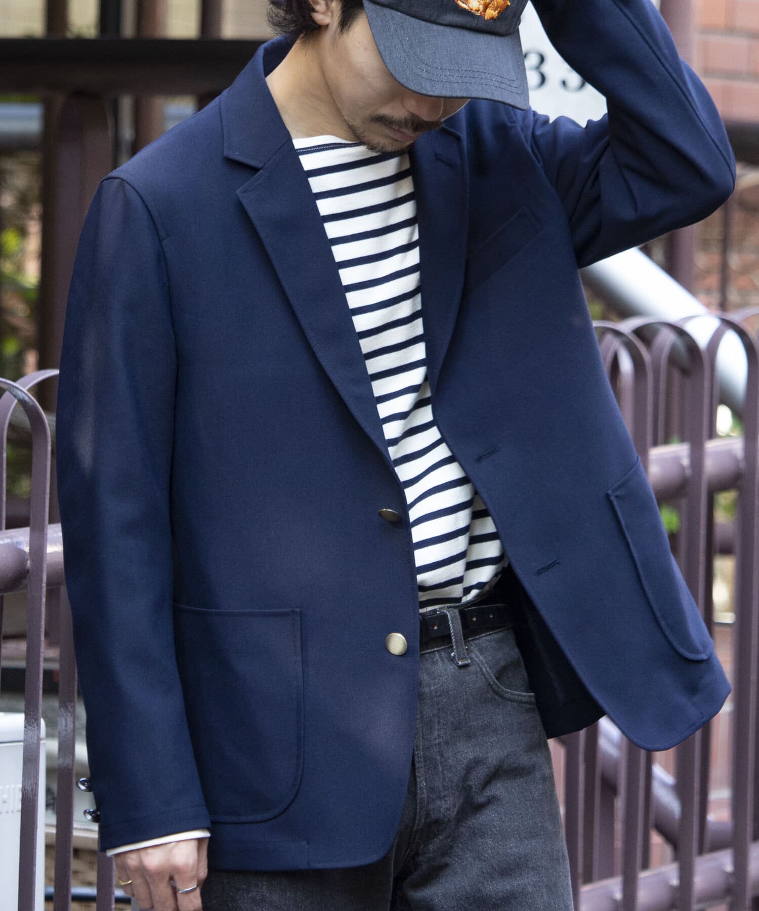 デニムにジャケットを合わせれるカジュアル系の紺ブレ。万能に使えて良い感じです。