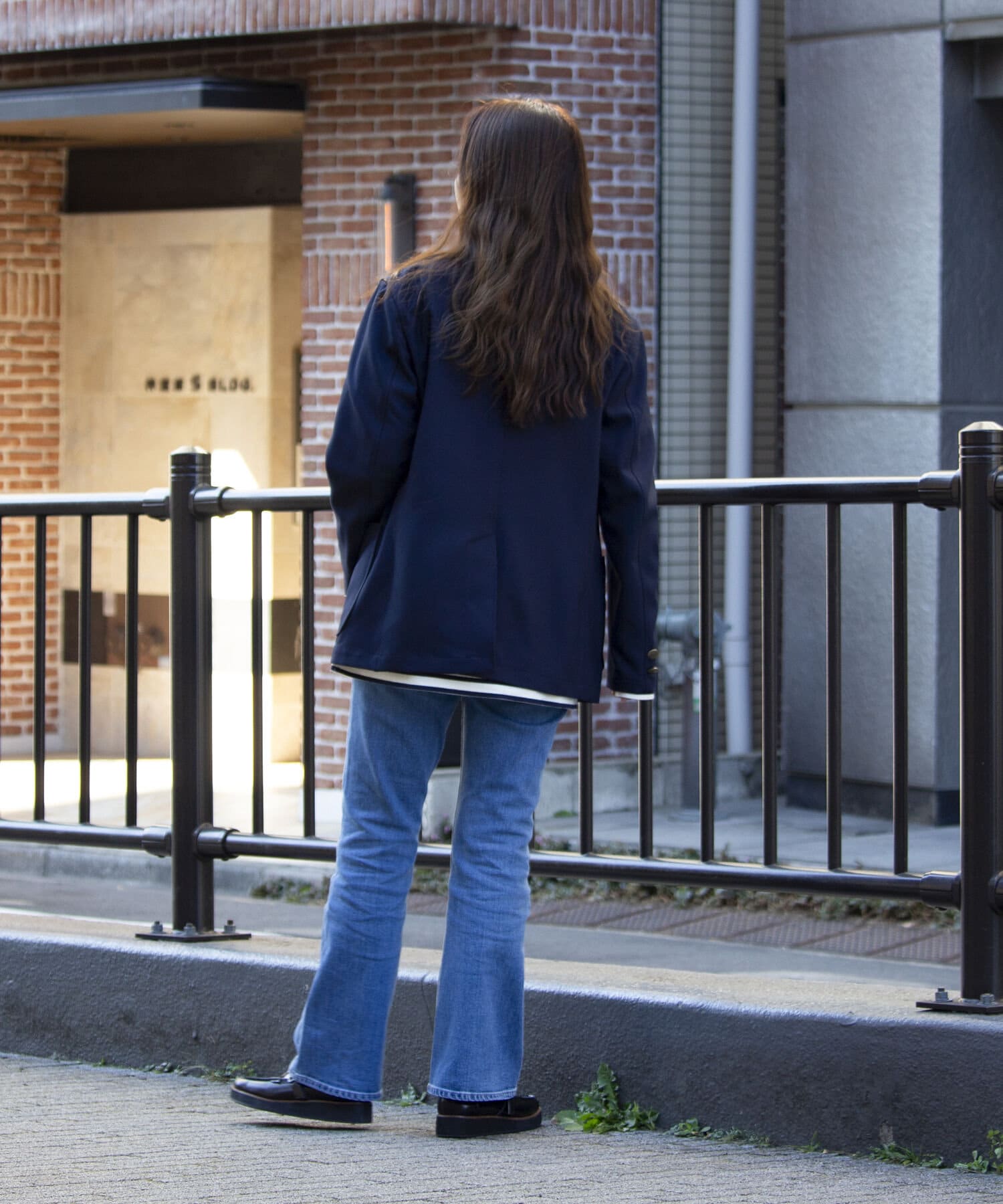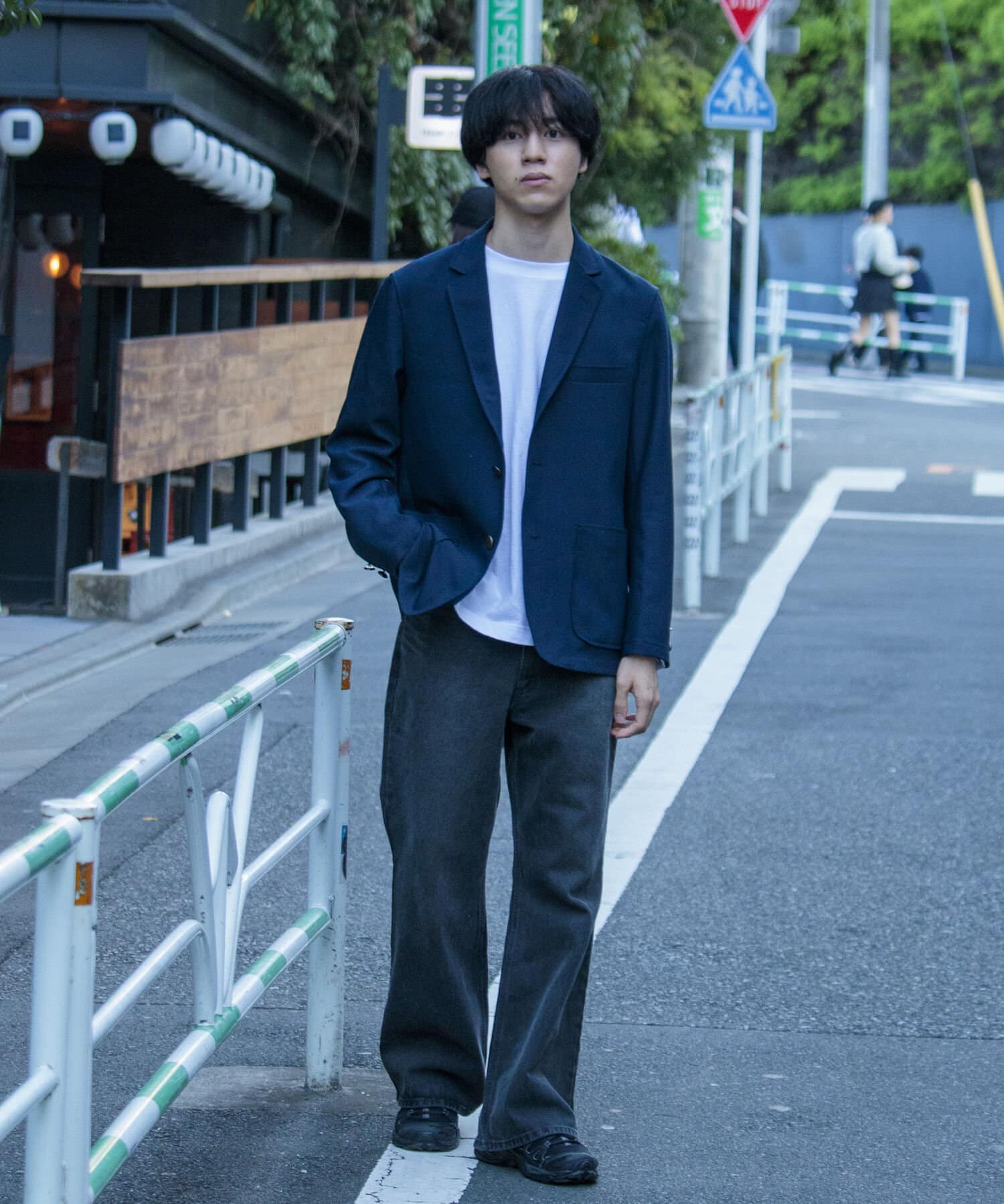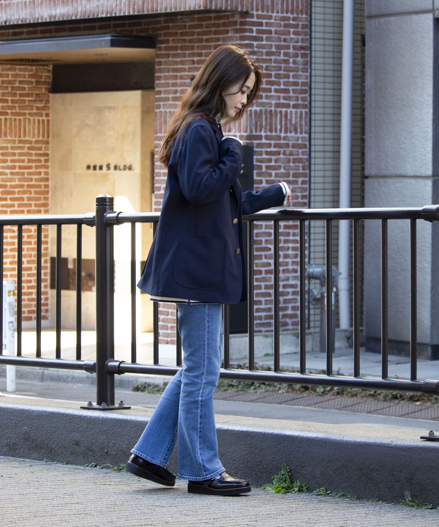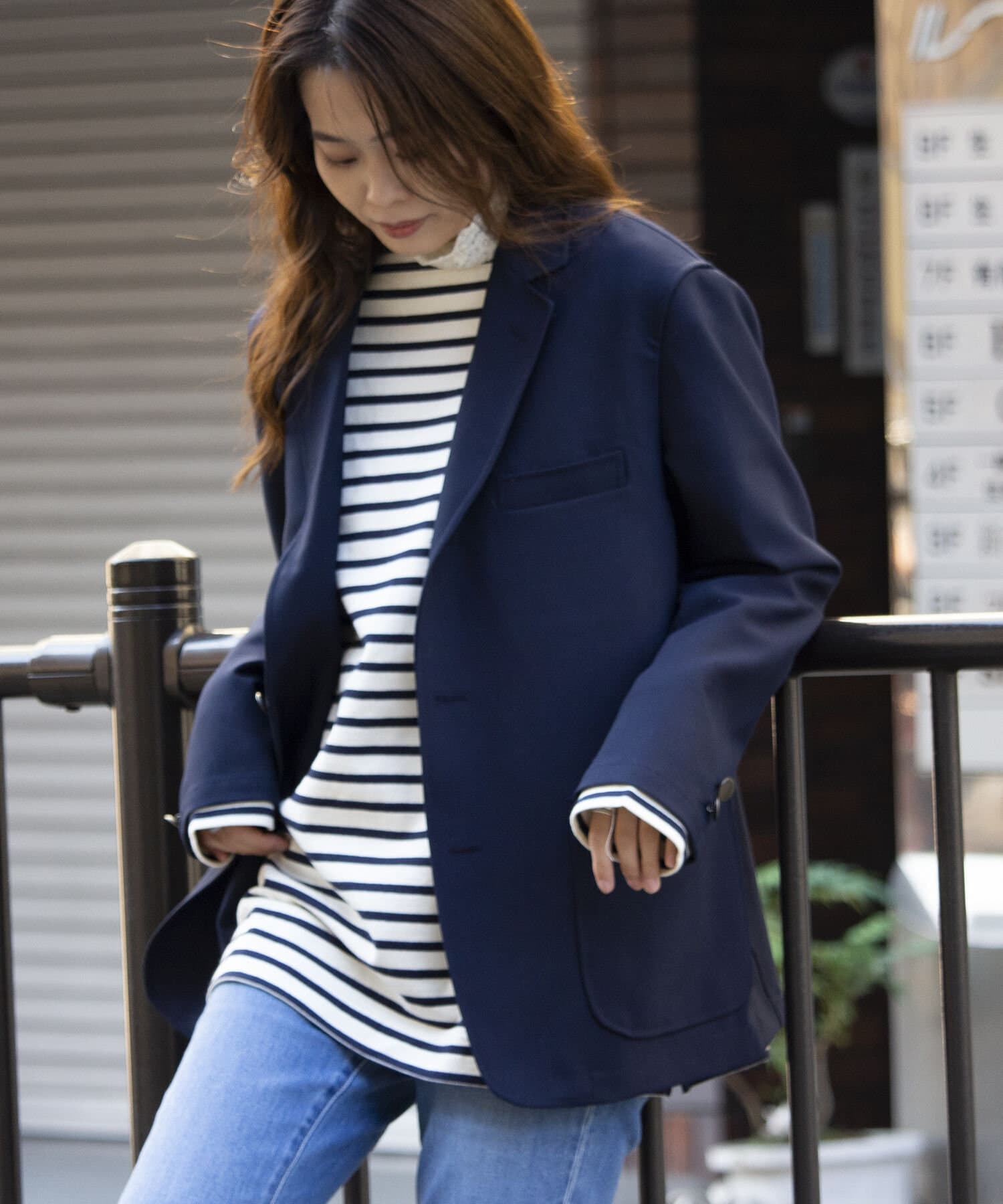 デニムにジャケットを合わせれるカジュアル系の紺ブレ。万能に使えて良い感じです。