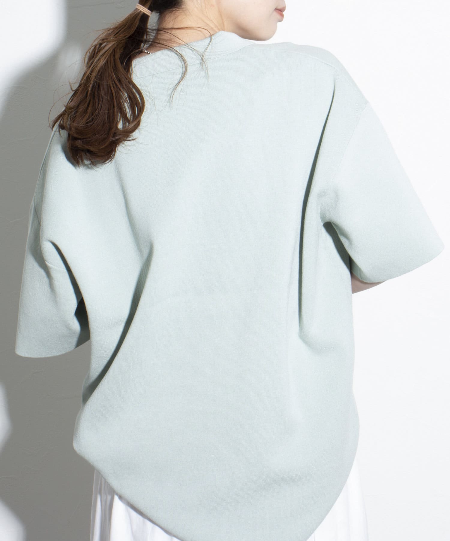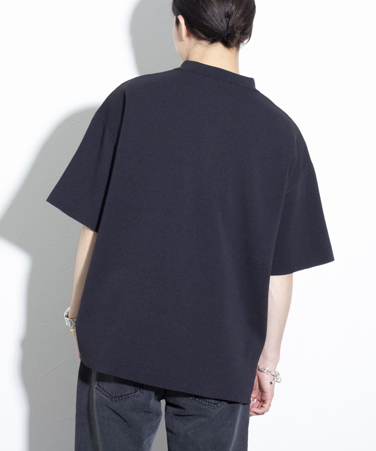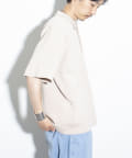 ややワイドな身幅やアームホール、ドロップショルダーなど、ルーズに着こなせるオーバーサイズで仕上げ、袖口、裾はリブによって若干の膨らみが出るように計算された仕様に。