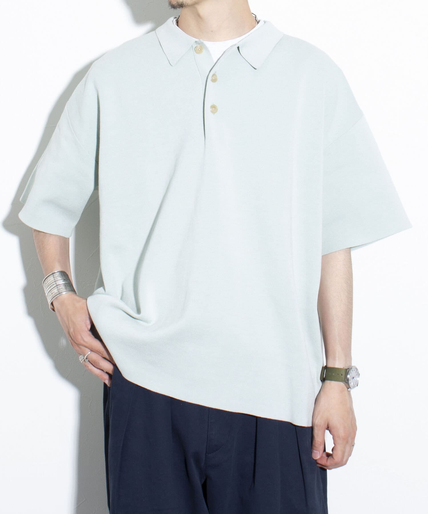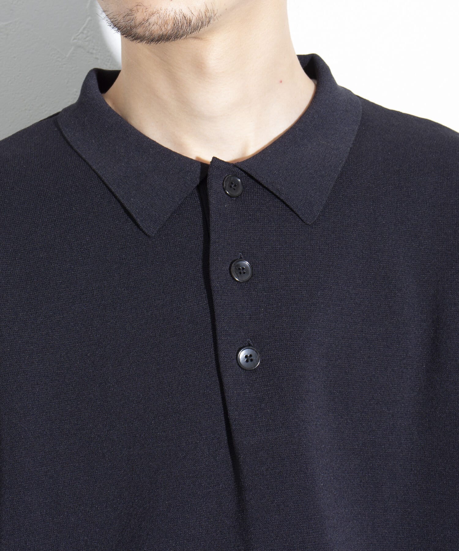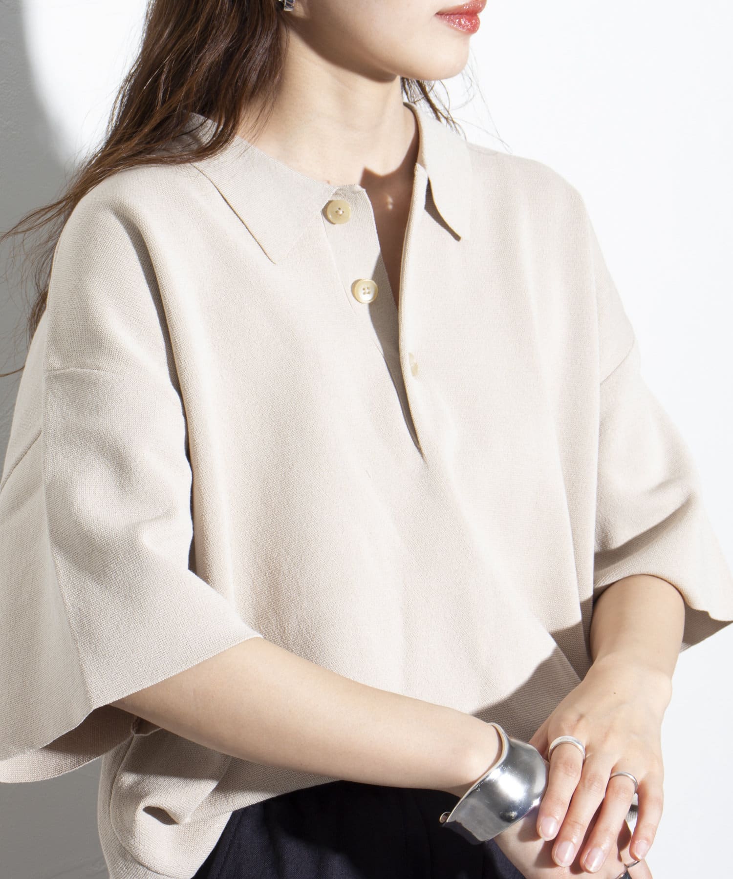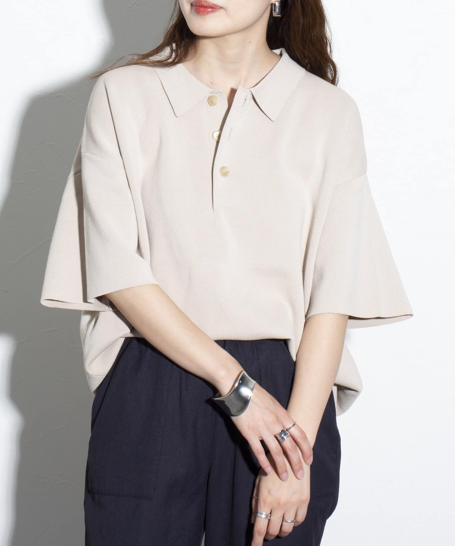 ミラノリブを使用したキレイめで上品な印象のニットポロ。