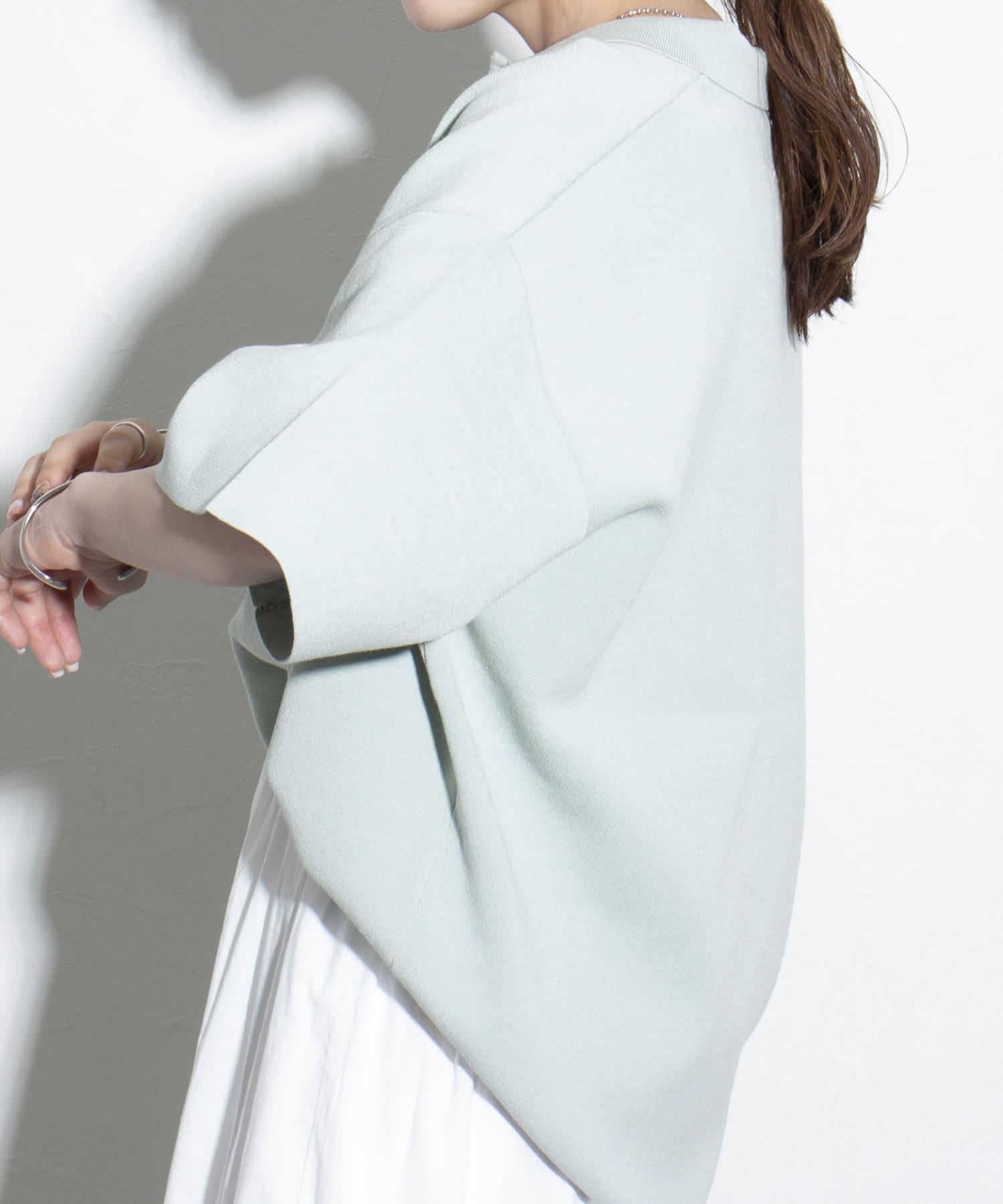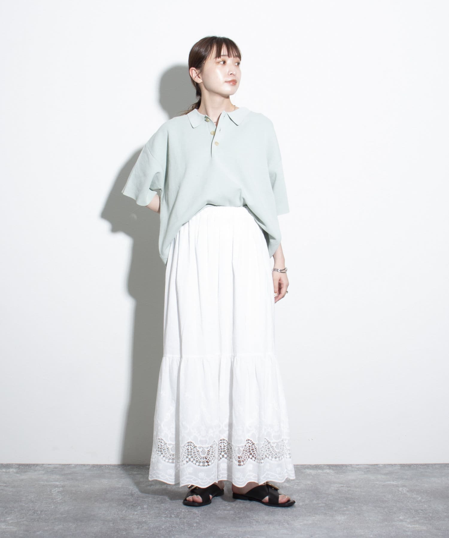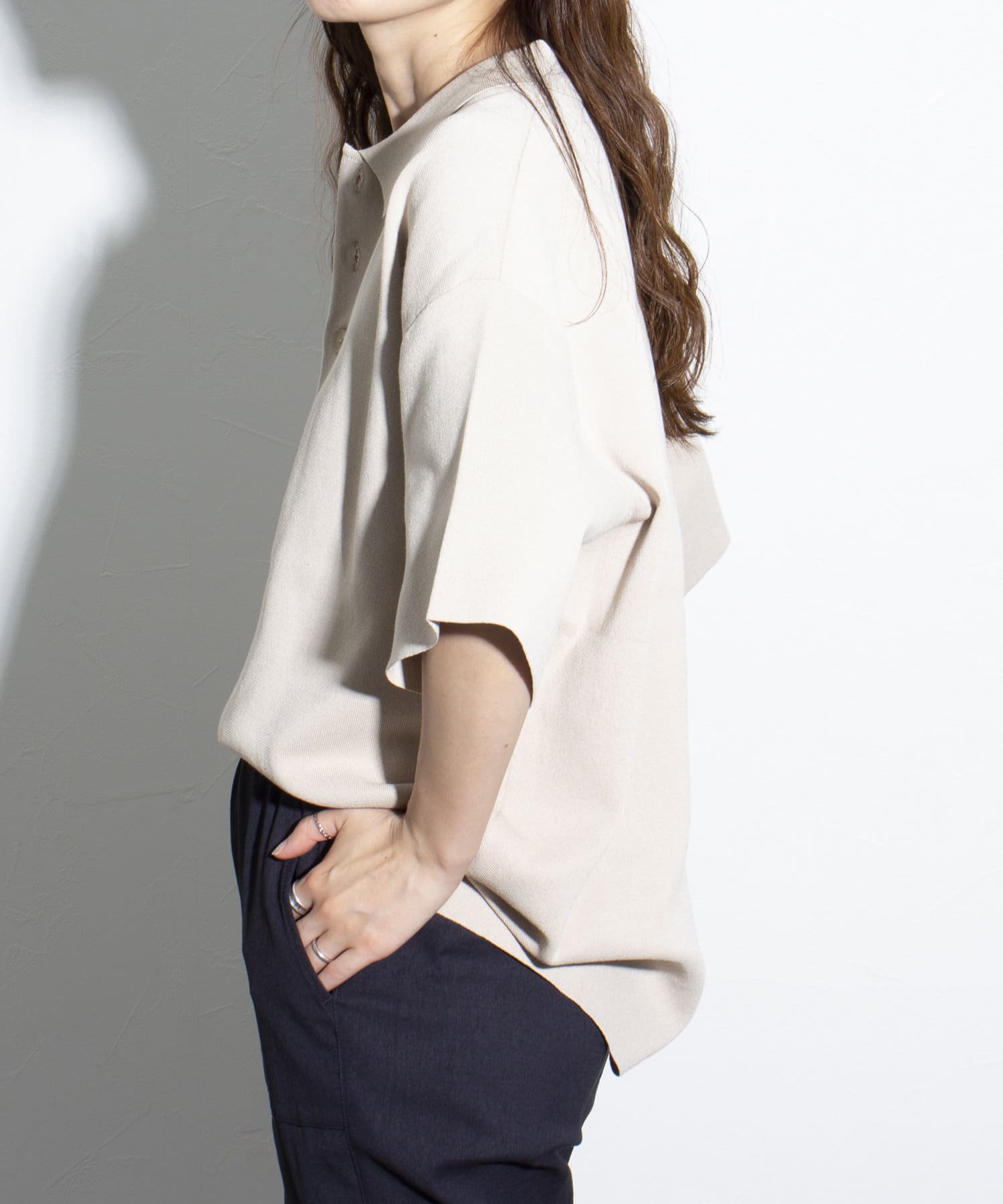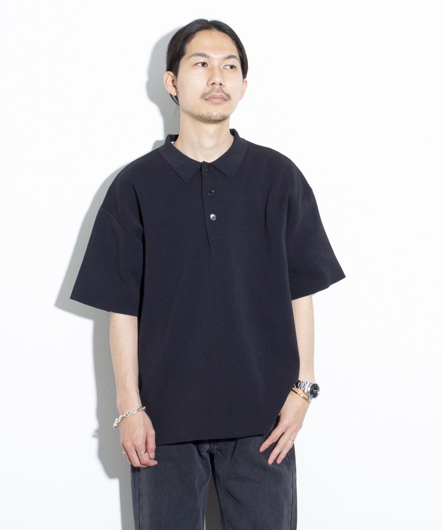 ミラノリブを使用したキレイめで上品な印象のニットポロ。