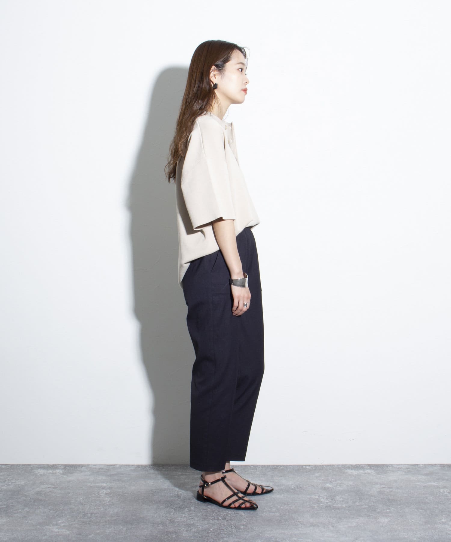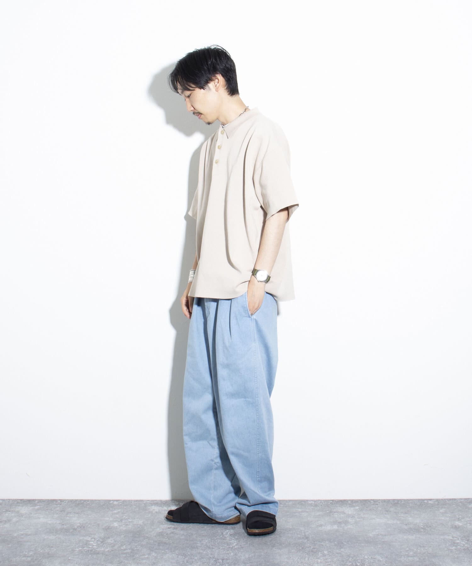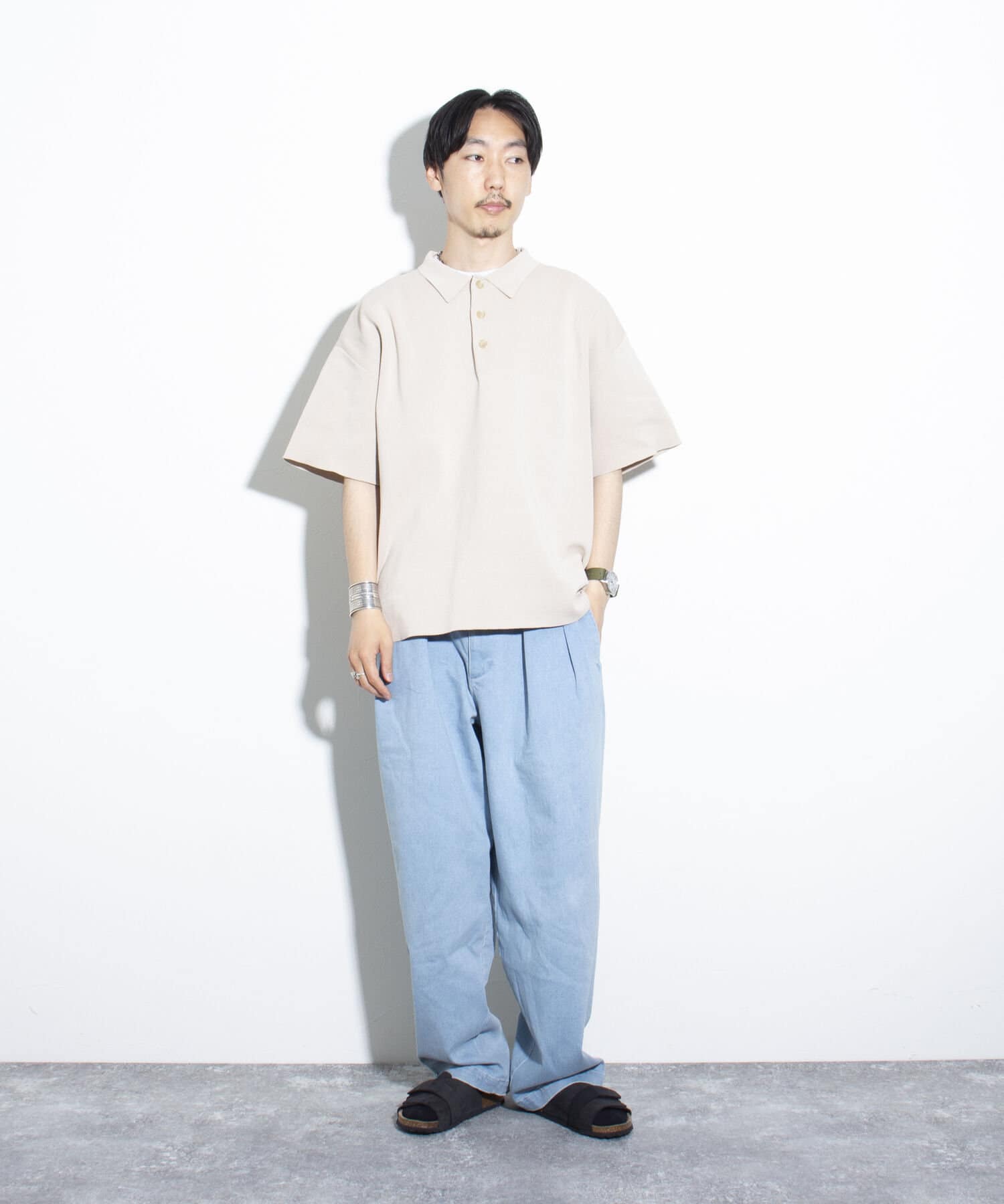 ストレートデニムやベーシックなチノパンツをはじめ、ワイドデニムやテーパード、キレイめなカーゴパンツ、スラックスなど、様々なシルエットのボトムスとも相性が良く、暑くなるこれからのシーズンは、ショートパンツやサンダルと合わせた夏の装いにもお使い頂けます。