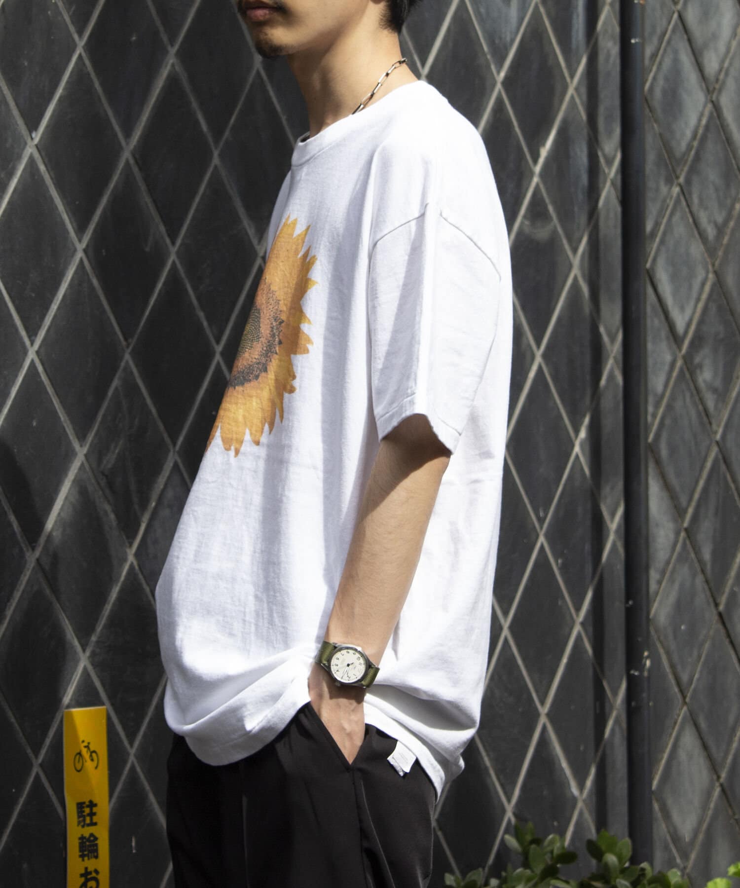 90Sのヴィンテージを彷彿とさせる、ひまわり/ヒマワリ/SUNFLOWERプリントのアートTシャツ