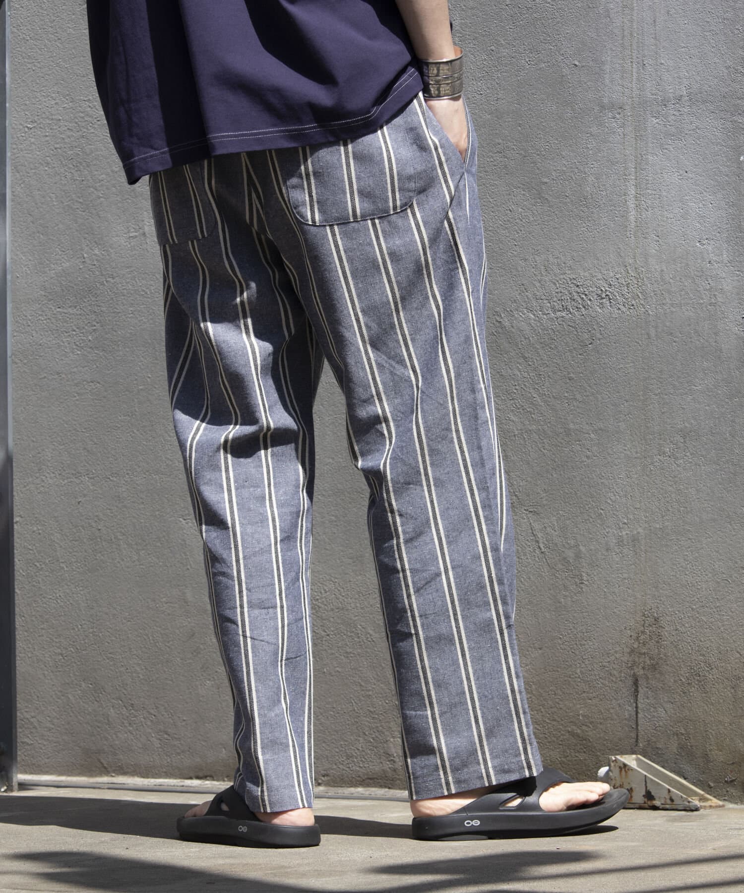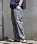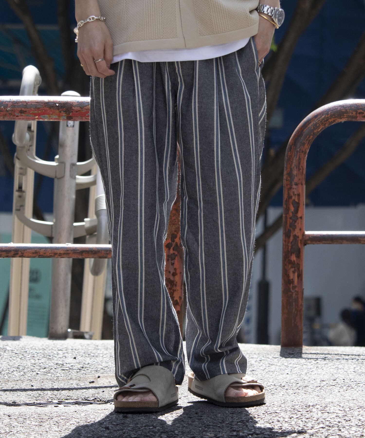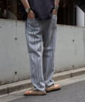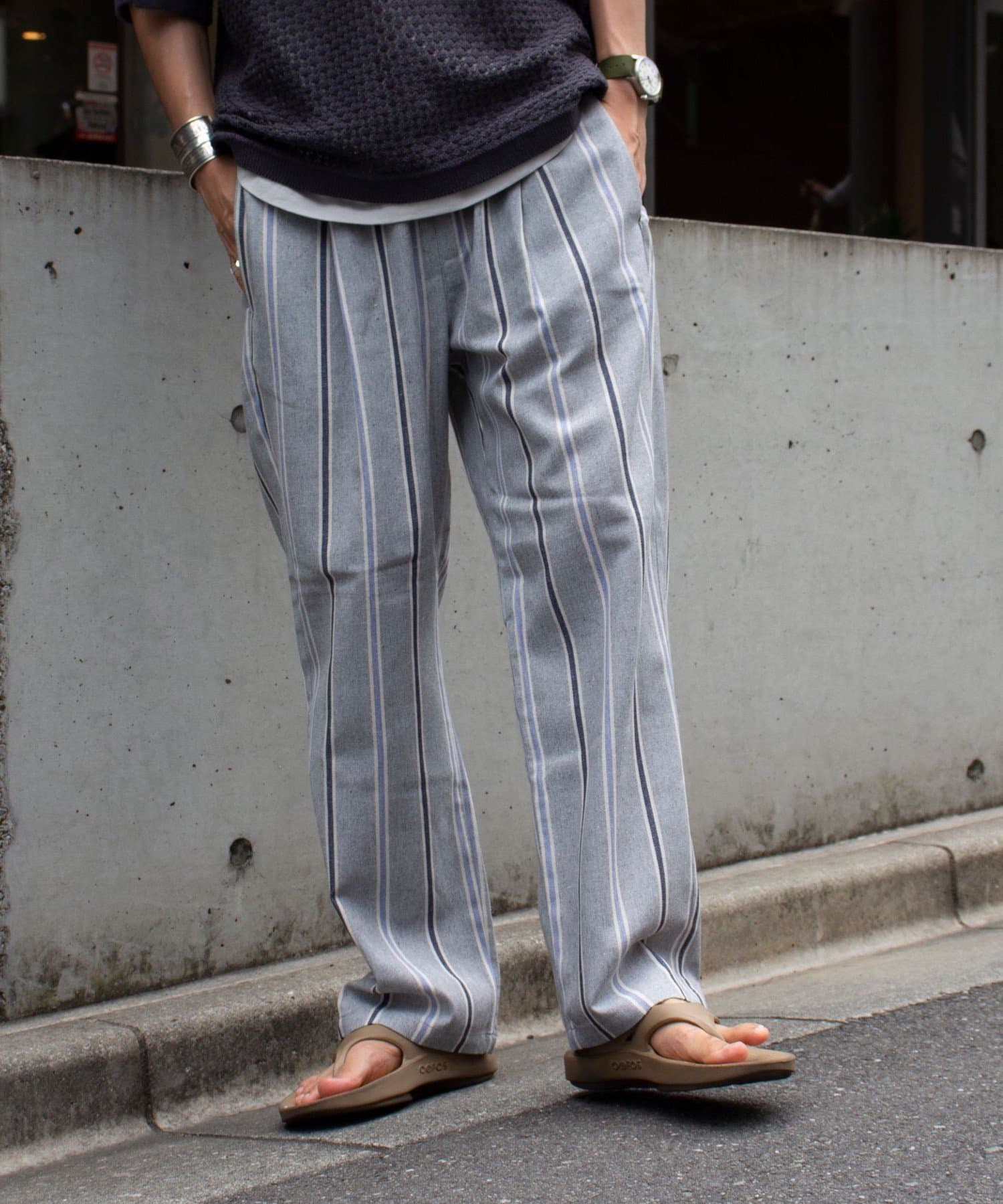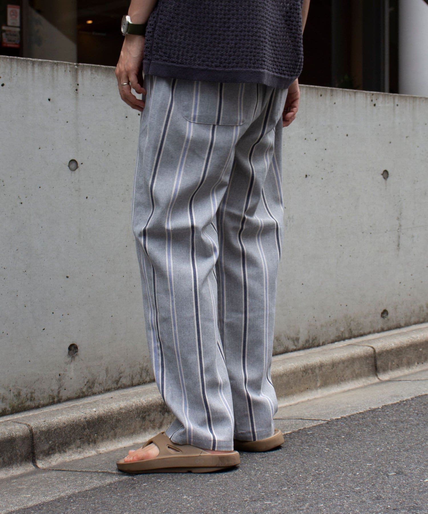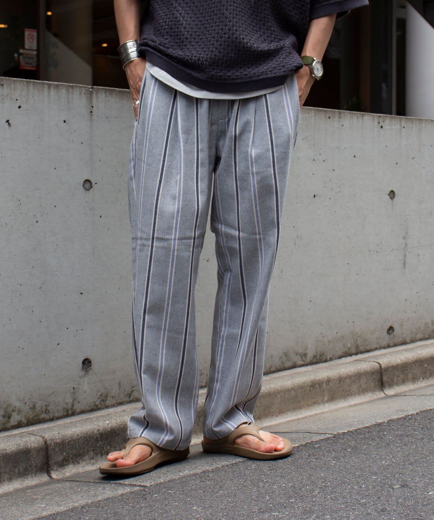【GLOSTER】コットンリネンストライプイージーパンツ 綿麻 タック入り