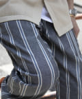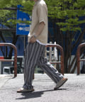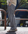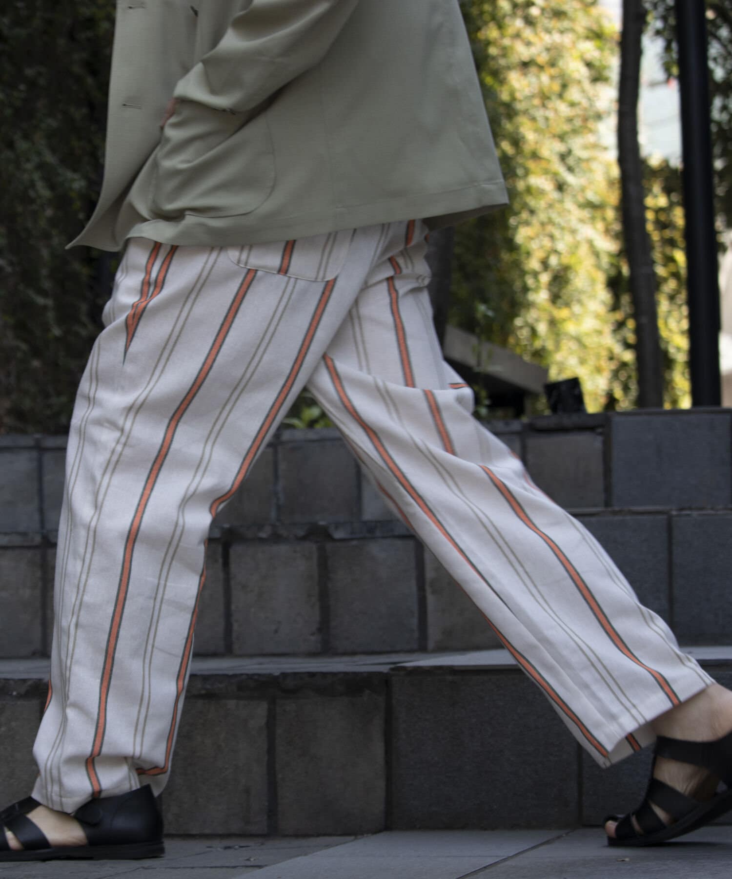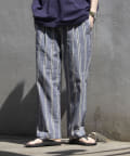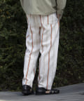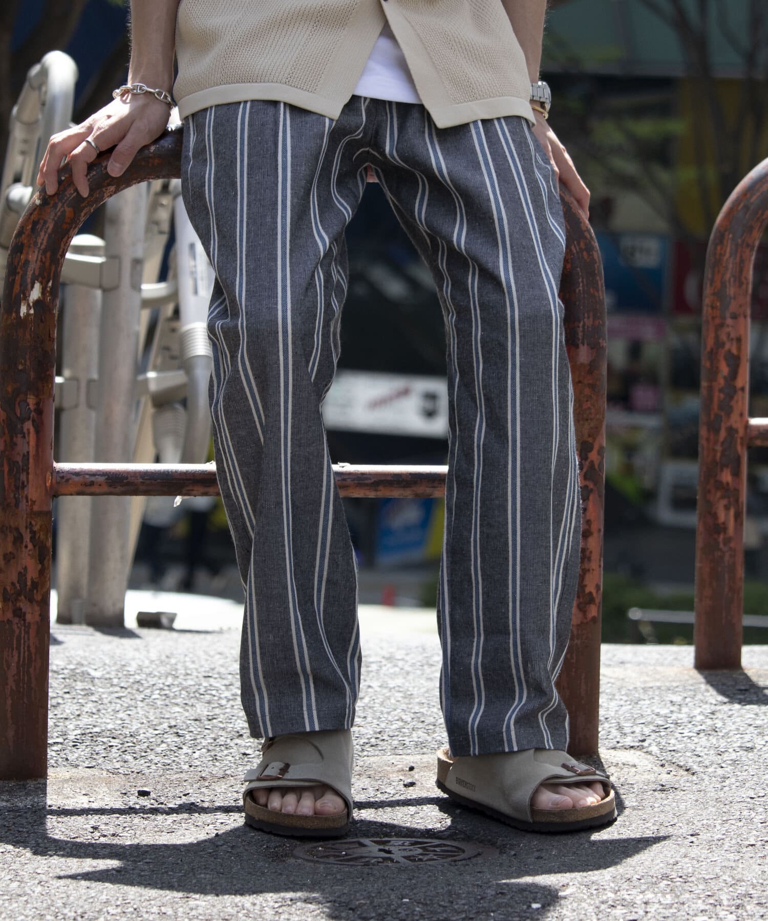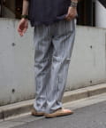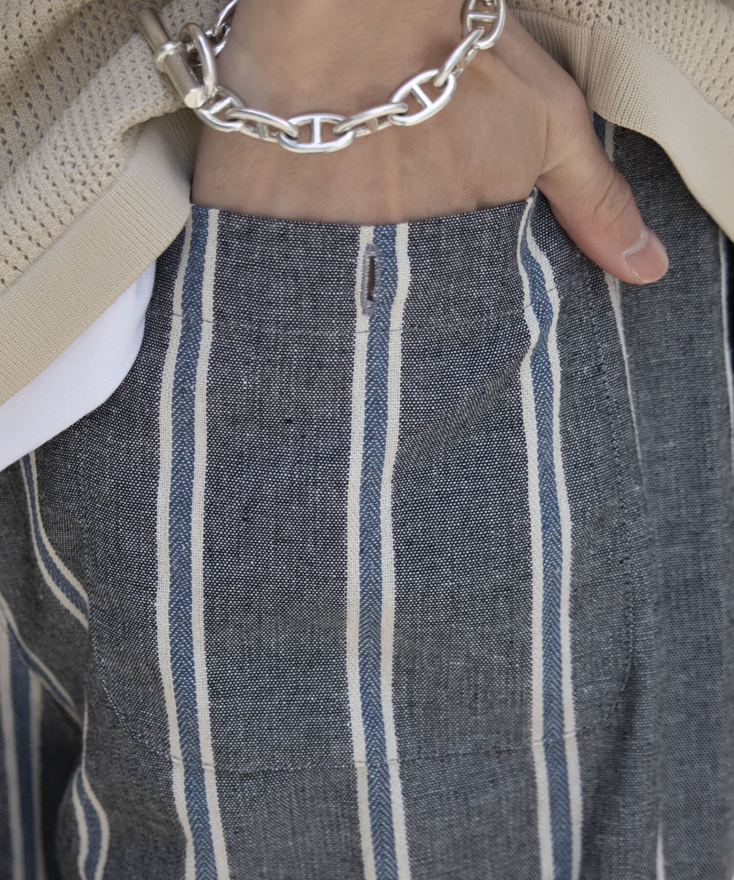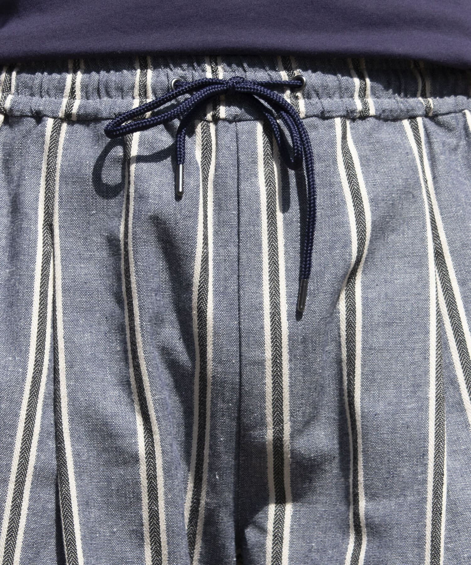 【GLOSTER】コットンリネンストライプイージーパンツ 綿麻 タック入り