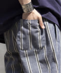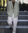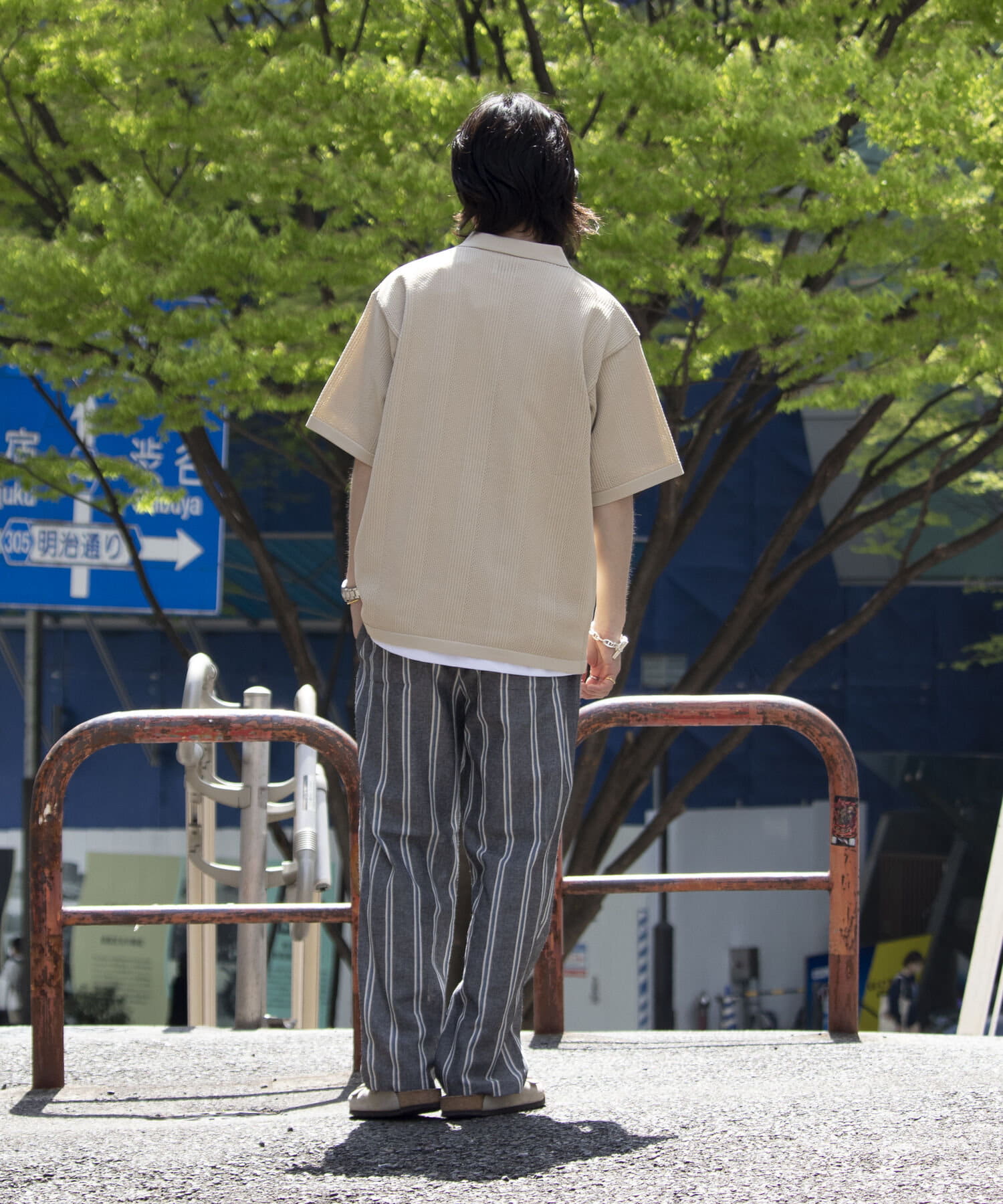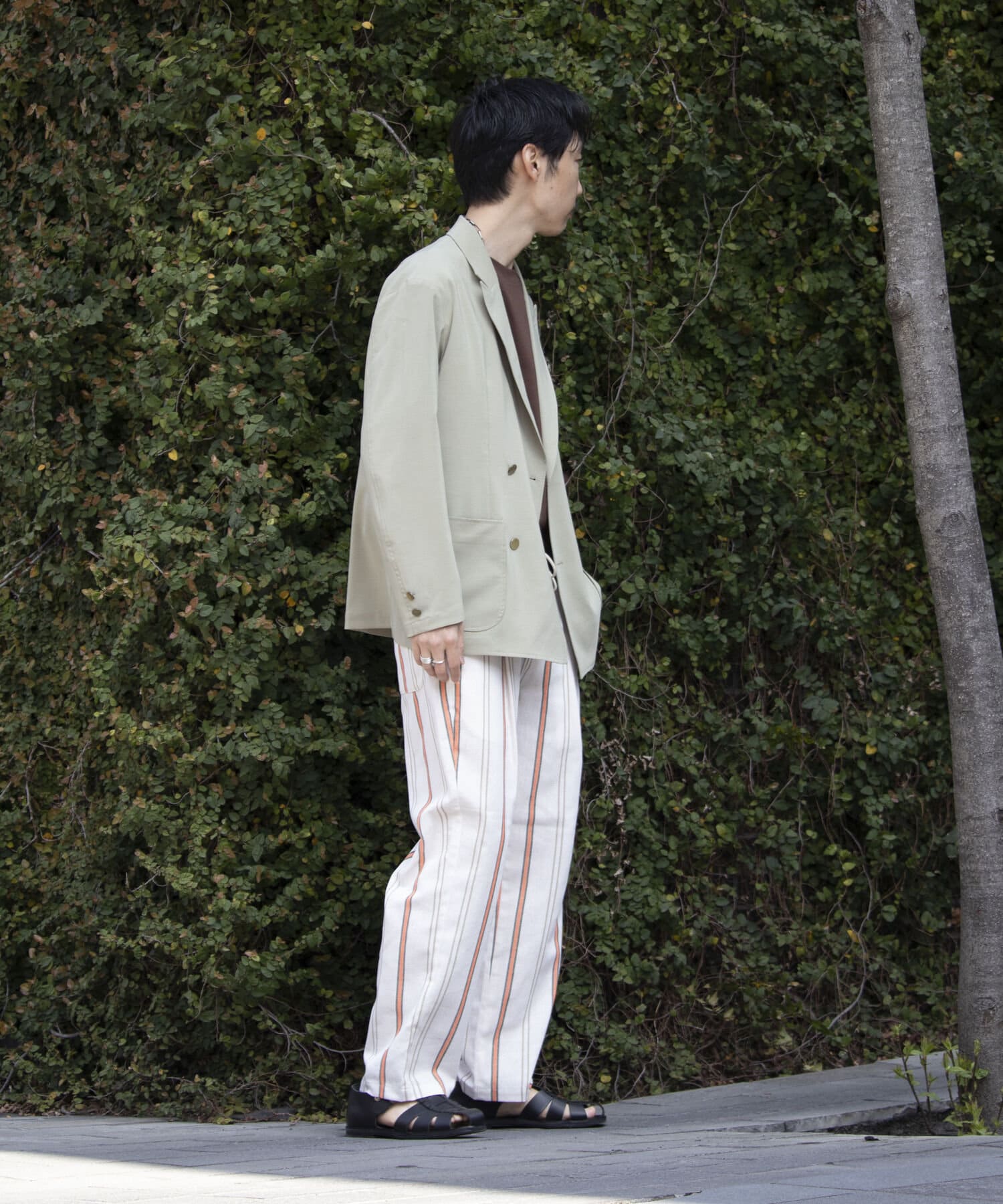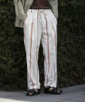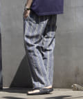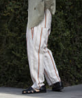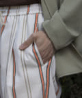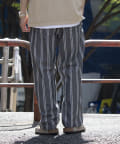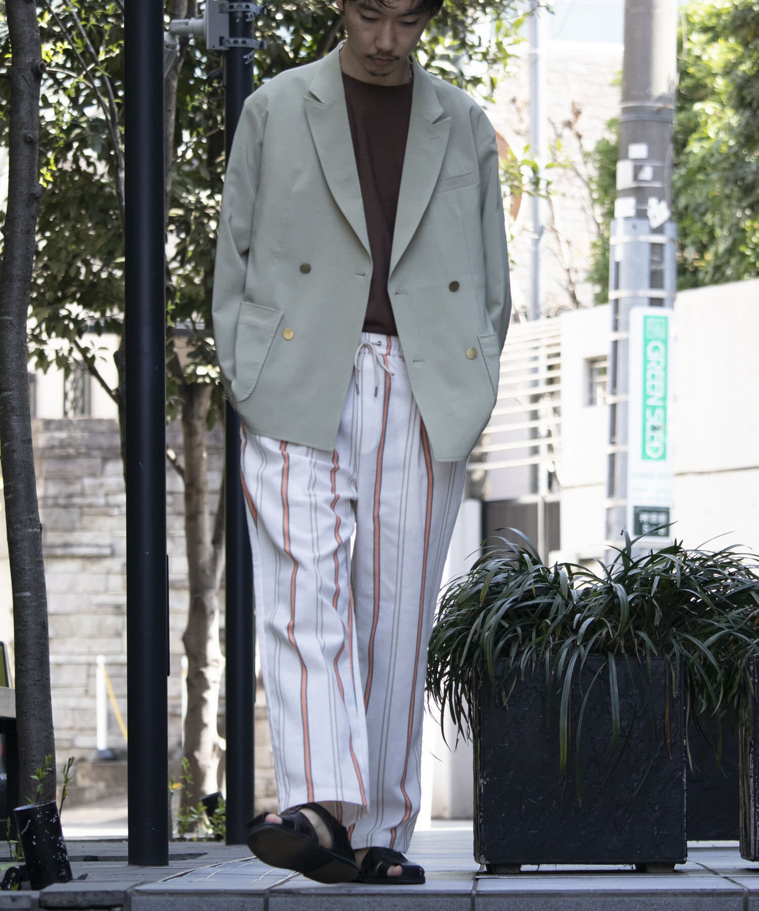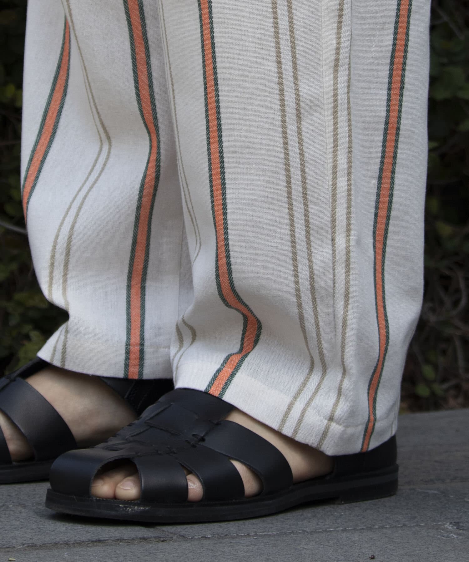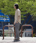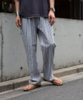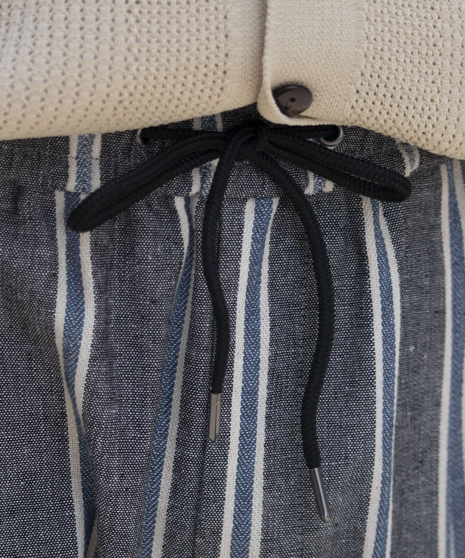 【GLOSTER】コットンリネンストライプイージーパンツ 綿麻 タック入り