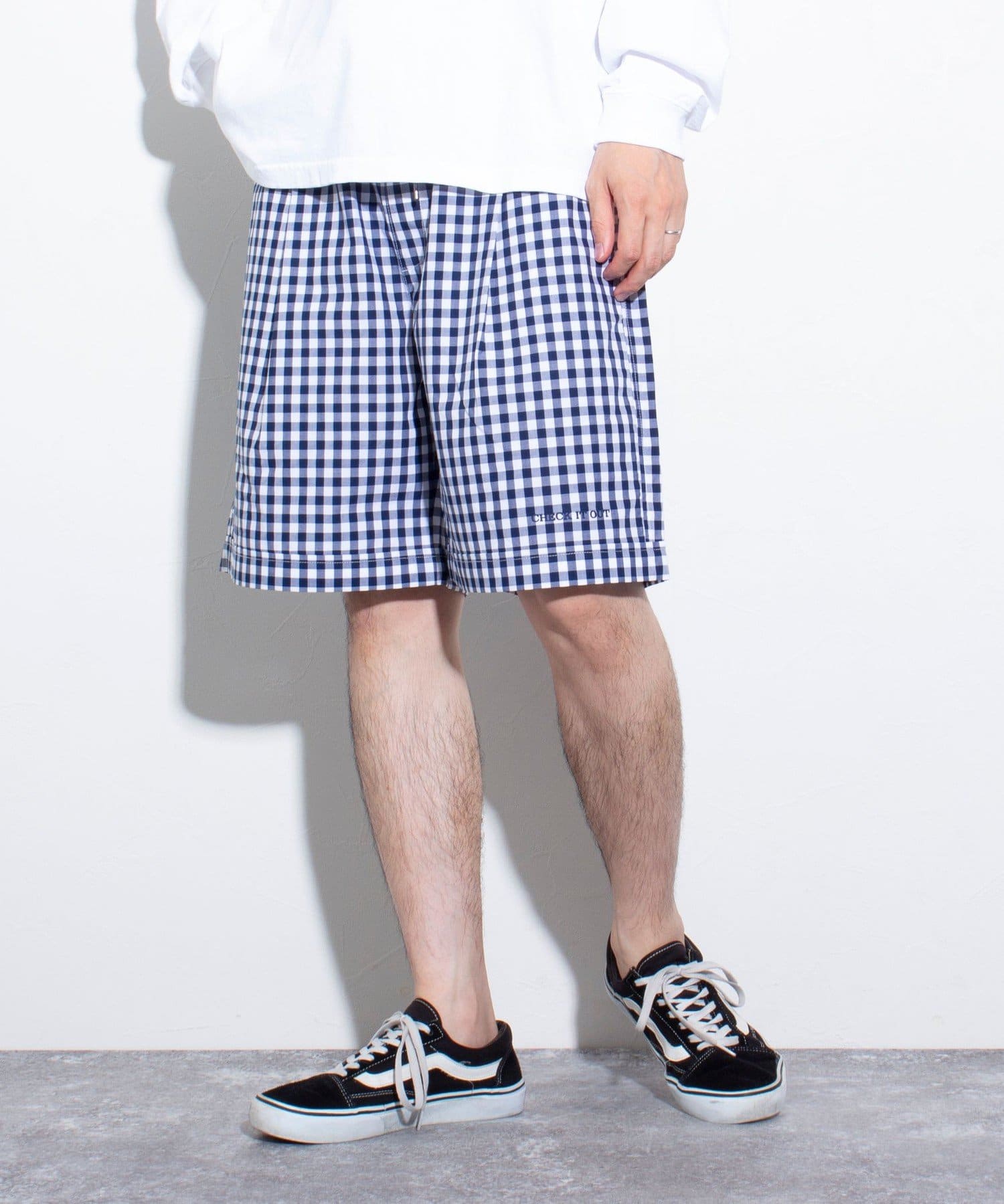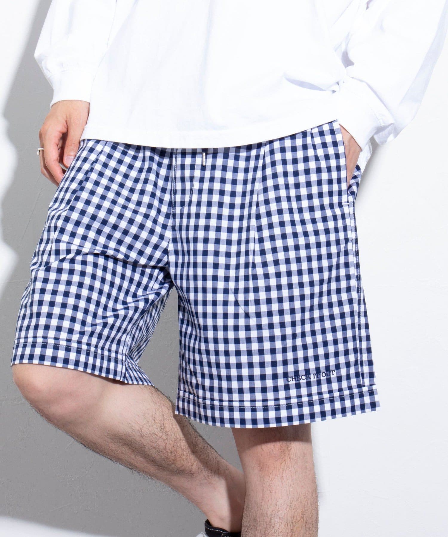 左裾にはワンポイント刺繍"CHECK IT OUT"を施し遊び心をプラス。