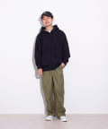 過度なビッグシルエットではなく、程よくゆとりにあるシルエットにしたことで、ストレートパンツからワイドパンツまで幅広いボトムスと合わせやすい形となっています。