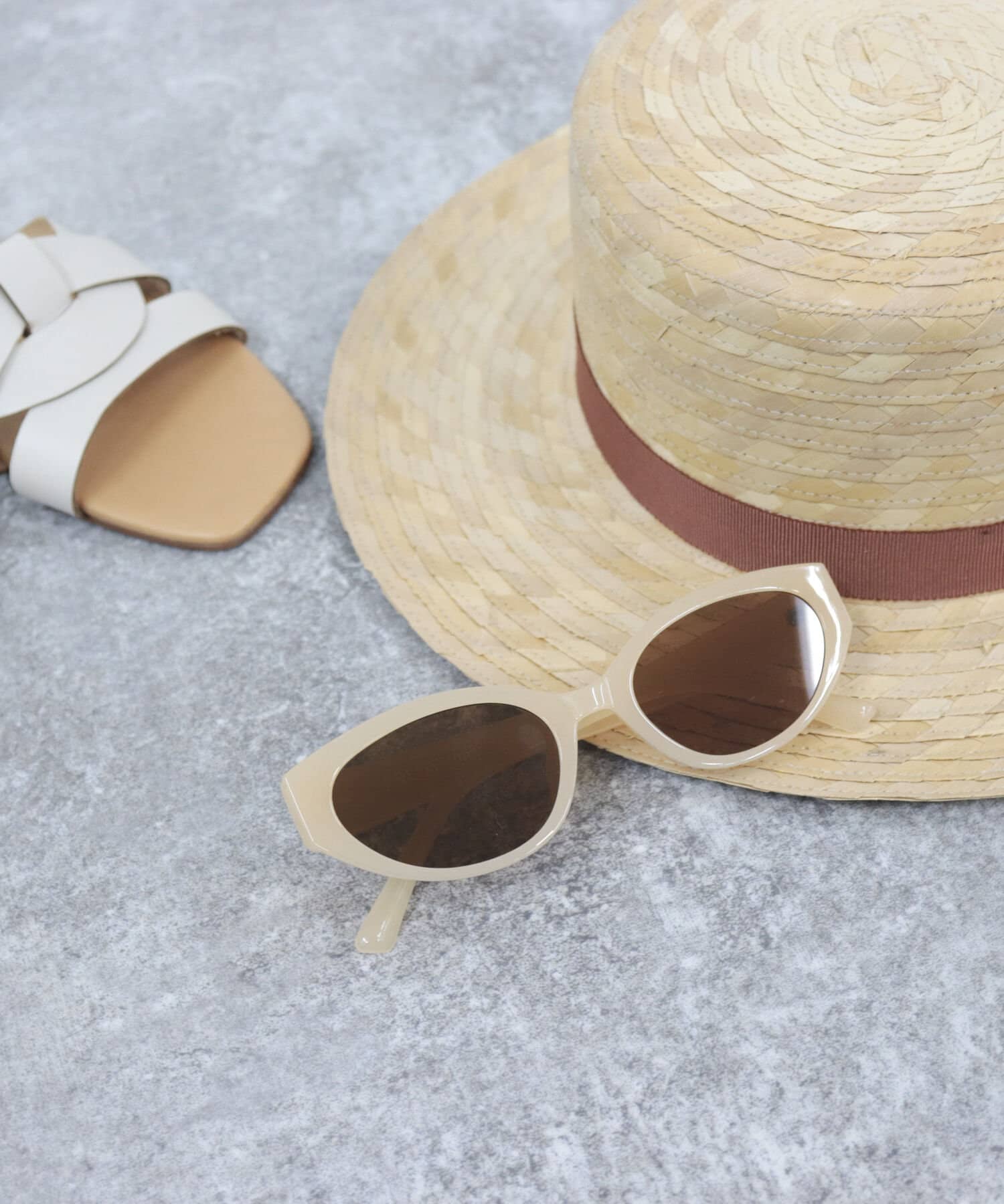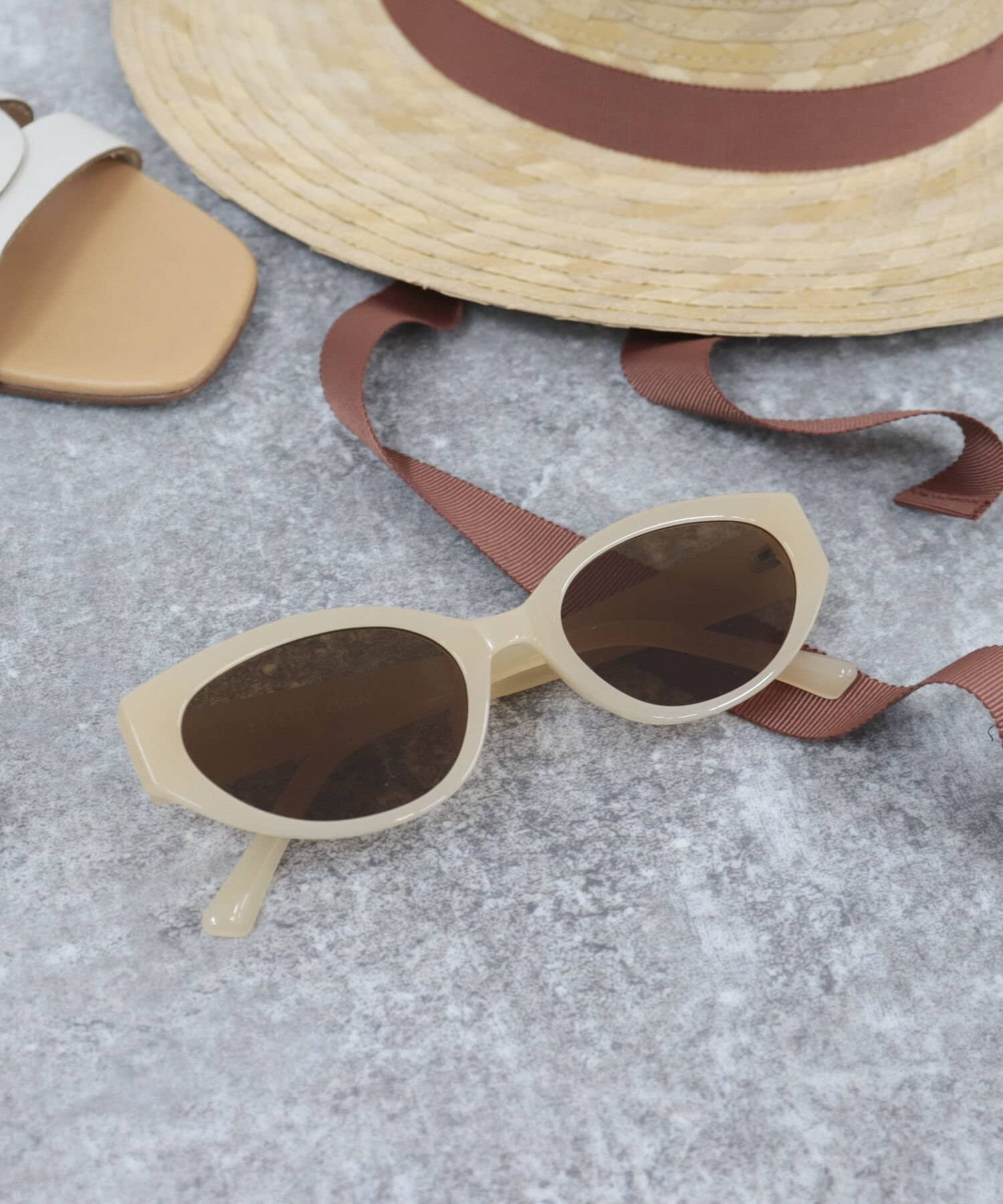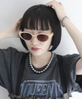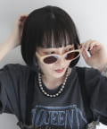 ・現代的にアレンジしたソフトな楕円形に仕上げたキャットアイサングラス