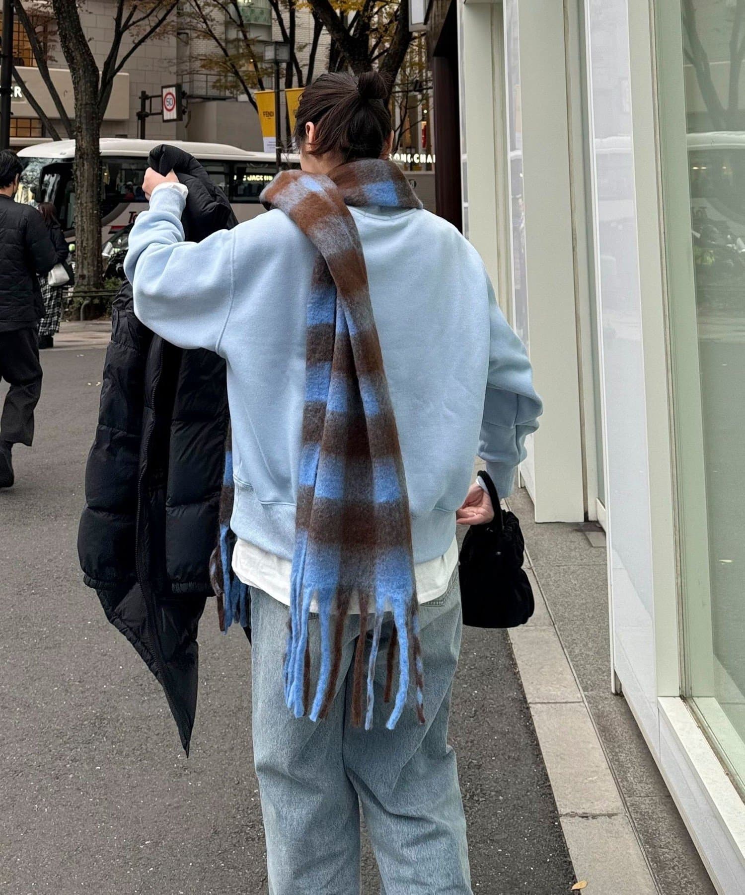 ・羽織りやひざ掛けにも使える大判サイズで、首元の防寒だけでなく様々なシーンでお使いいただけます