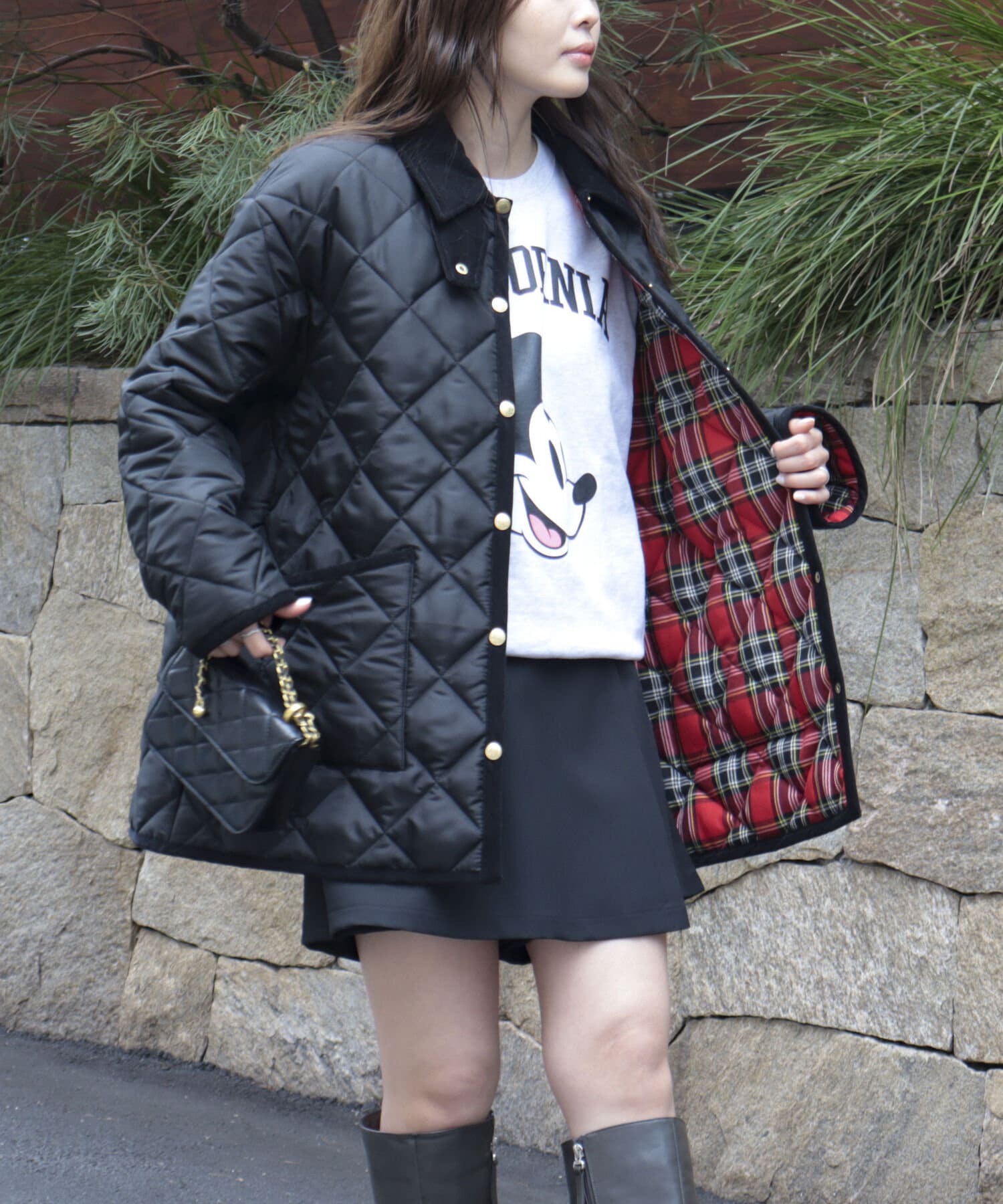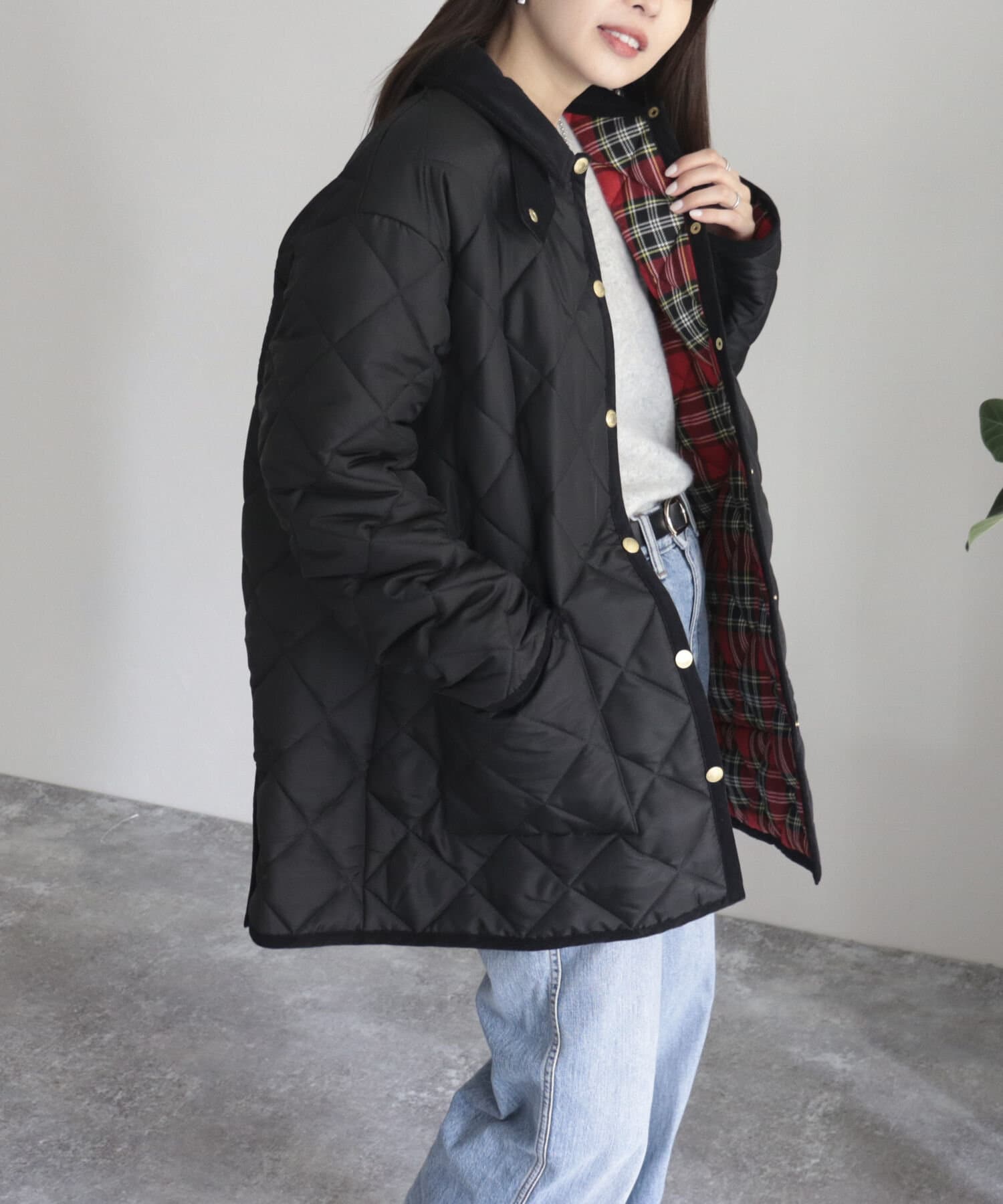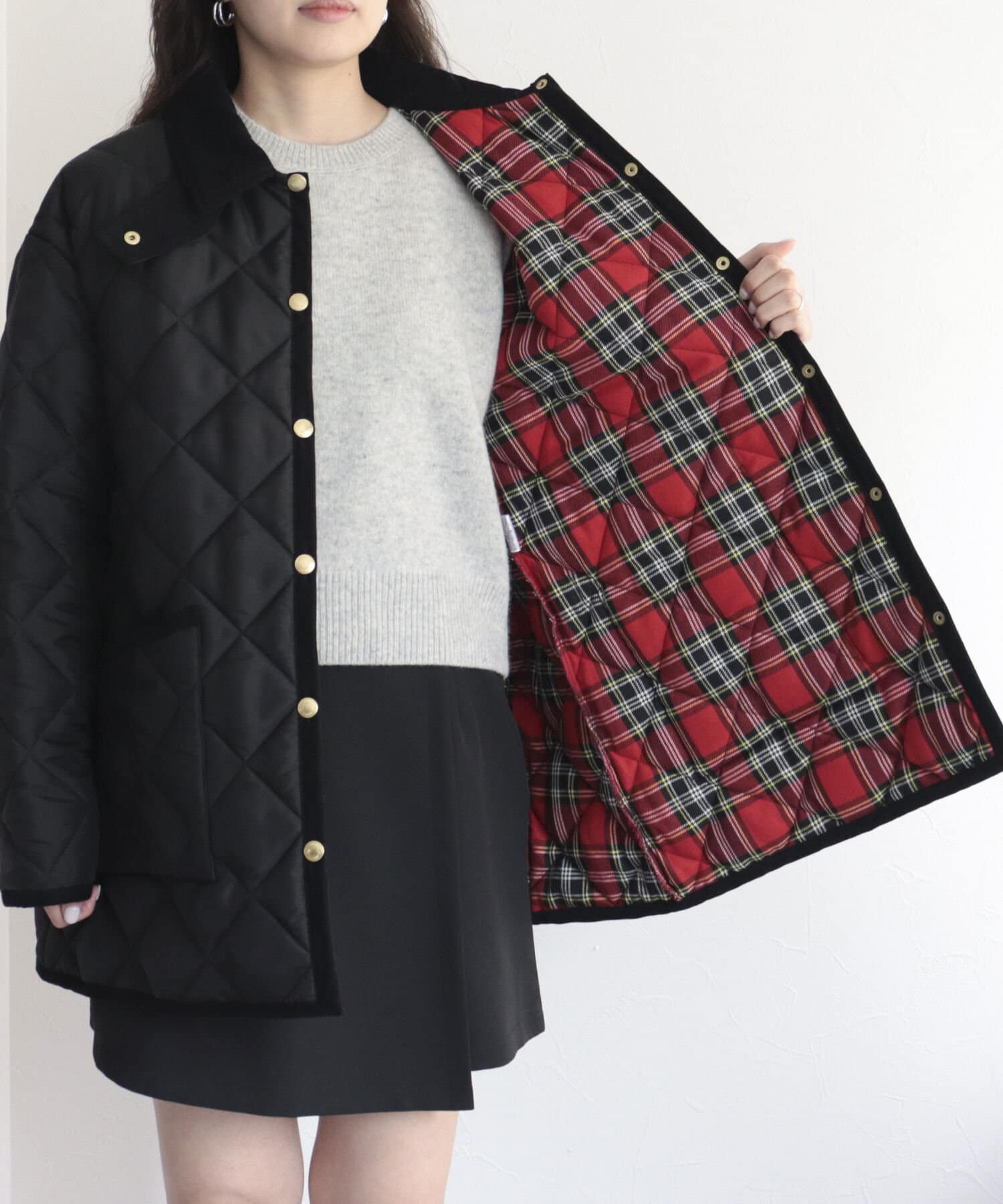 赤チェック柄の裏地が可愛い別注キルティングコートが今年も登場!