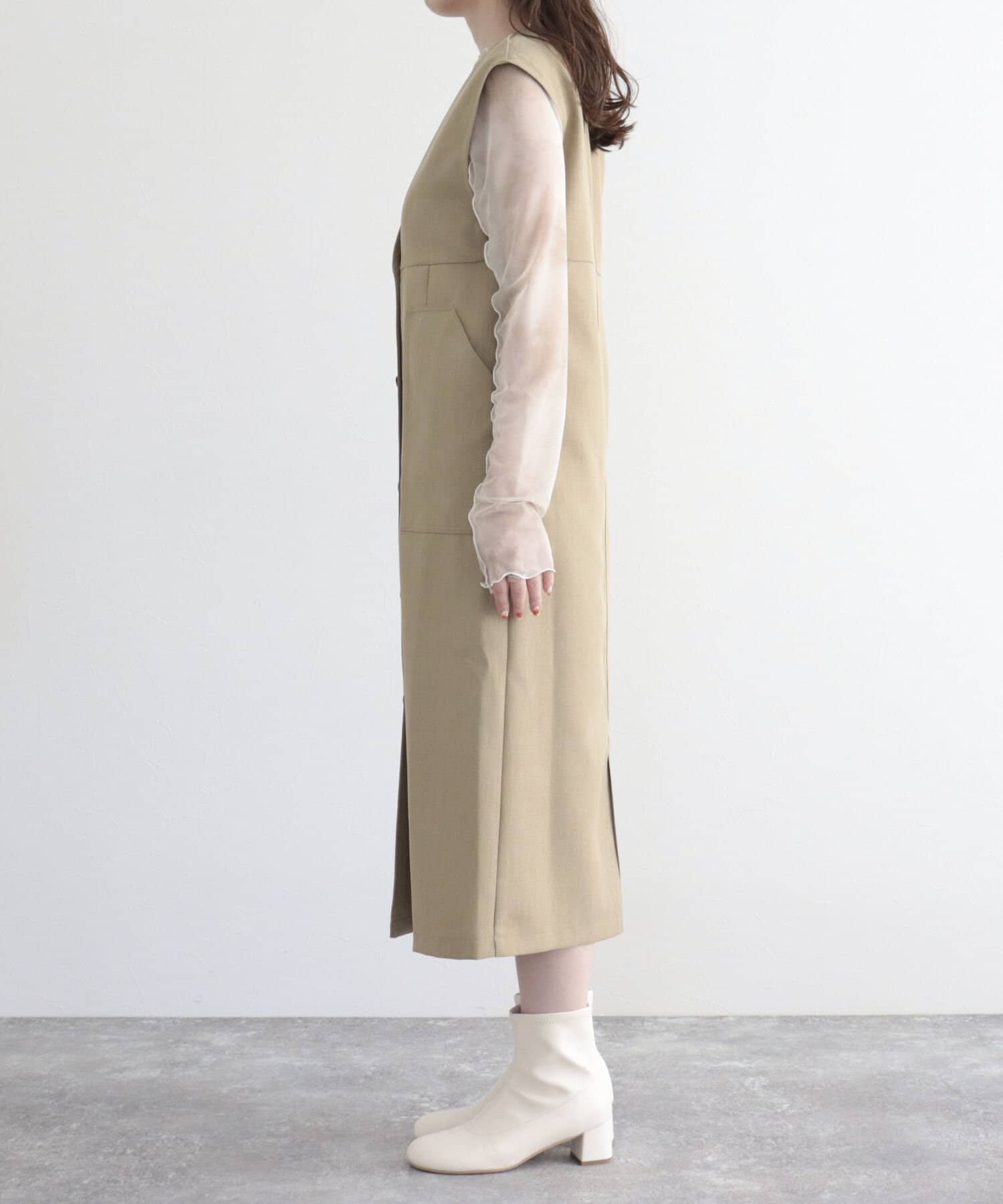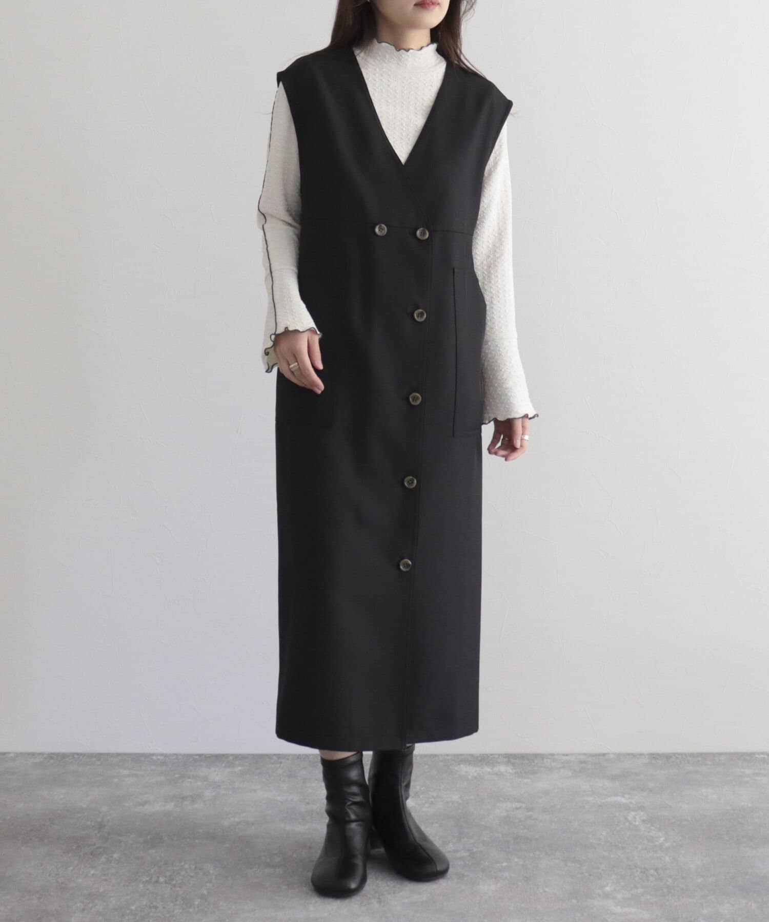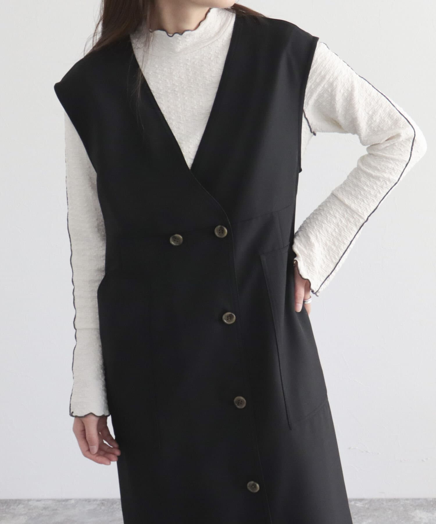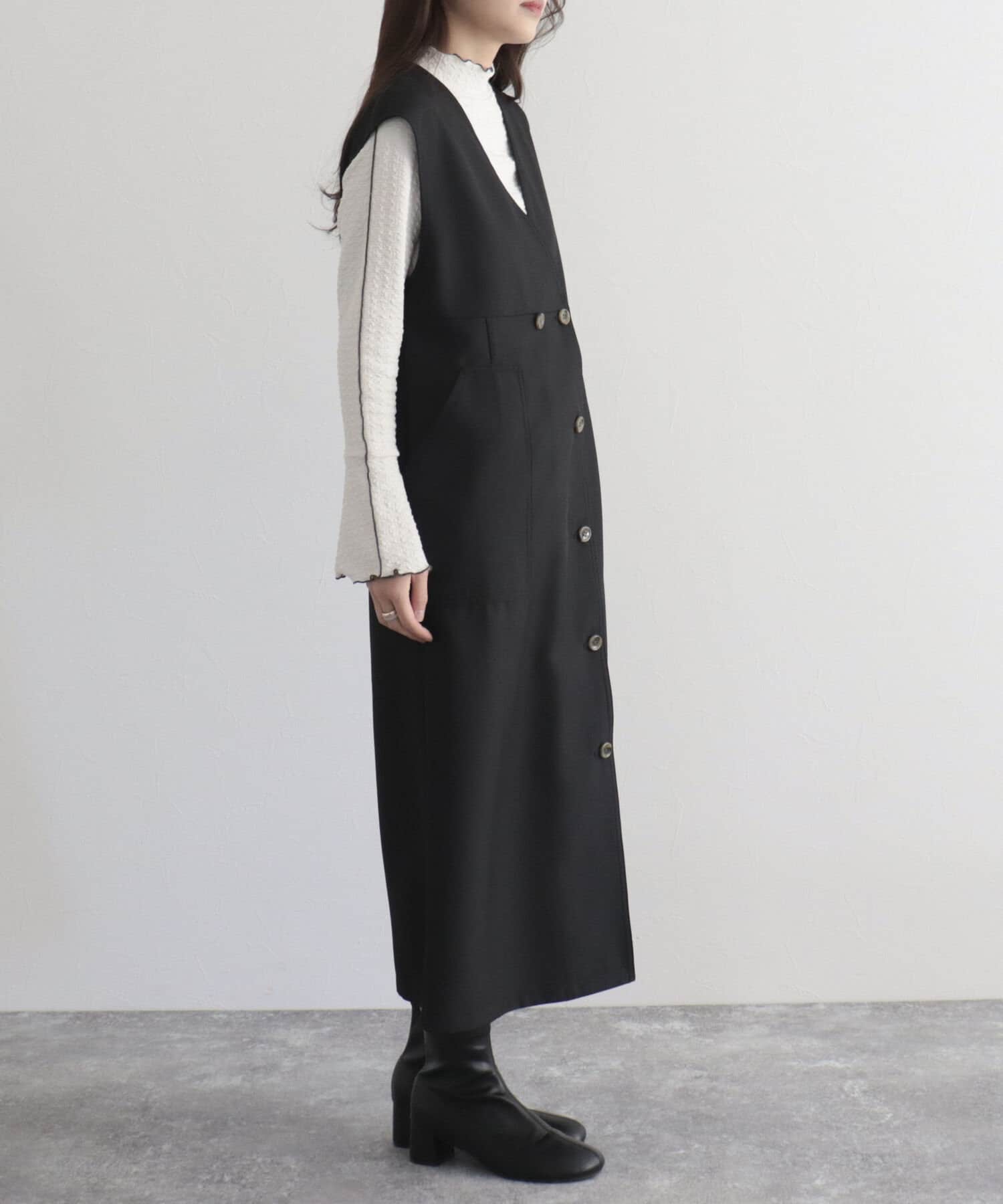 ・フロントボタンを閉じてジャンパースカートとして、開けてジレとして2WAYで楽しむことが出来ます