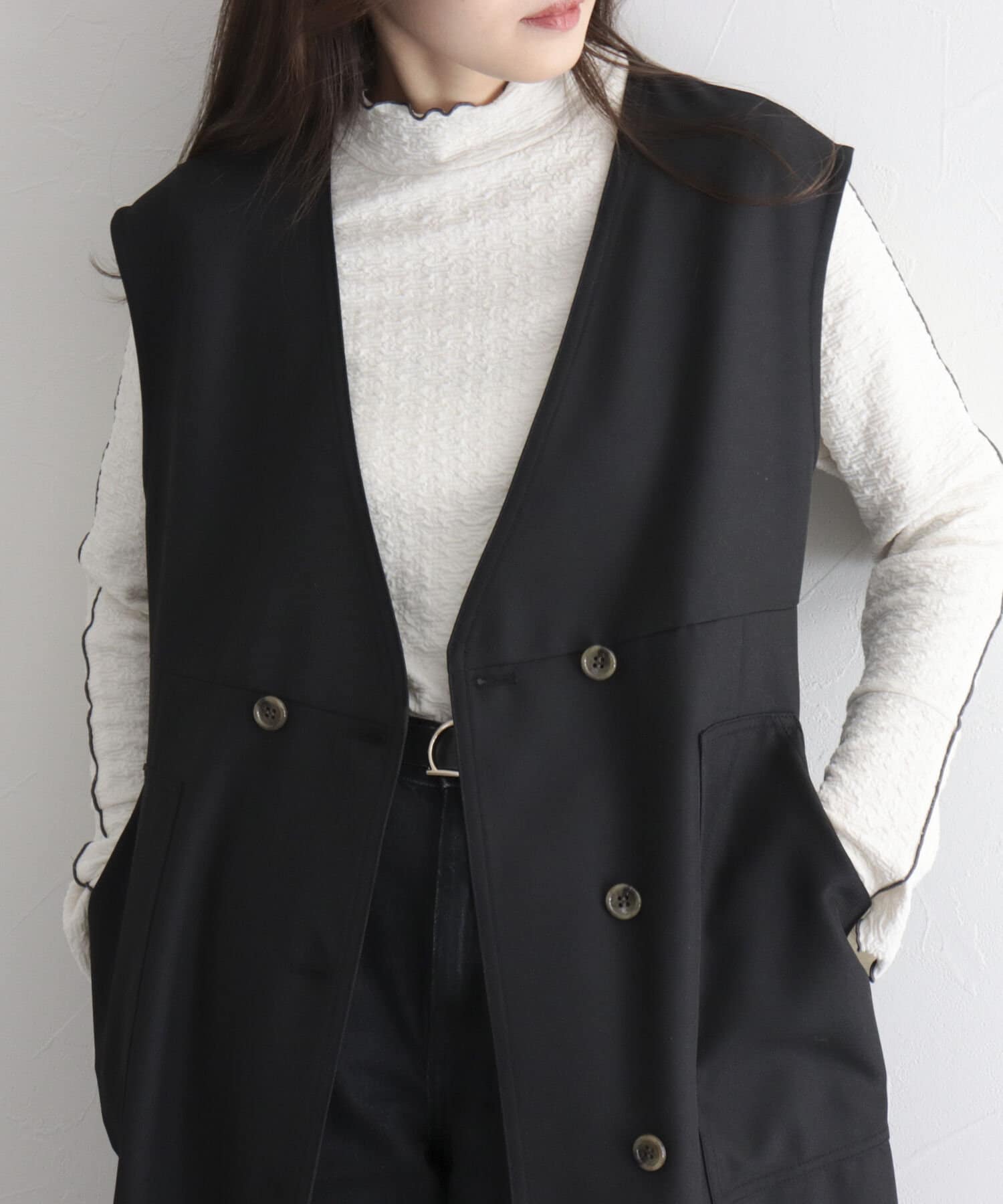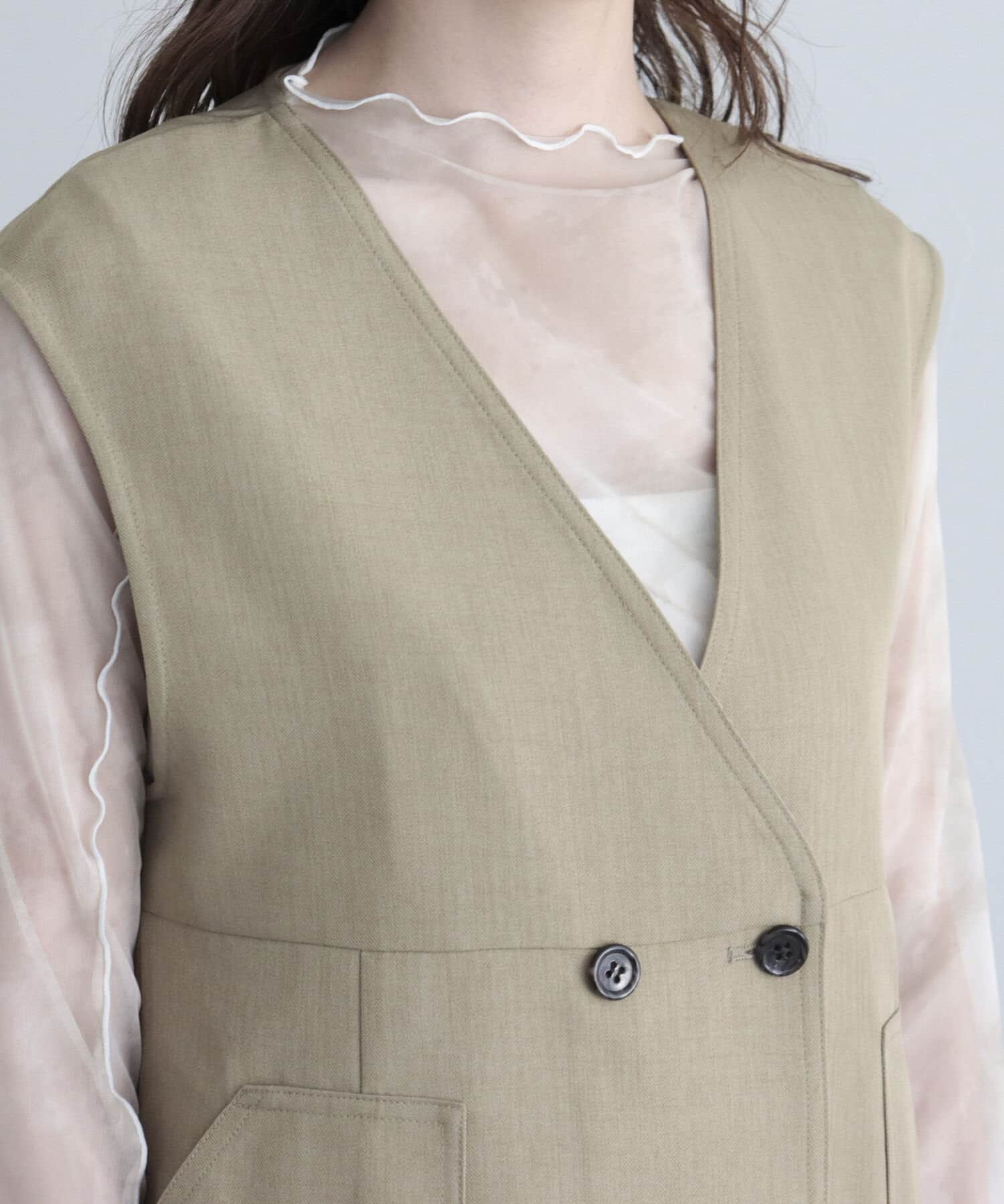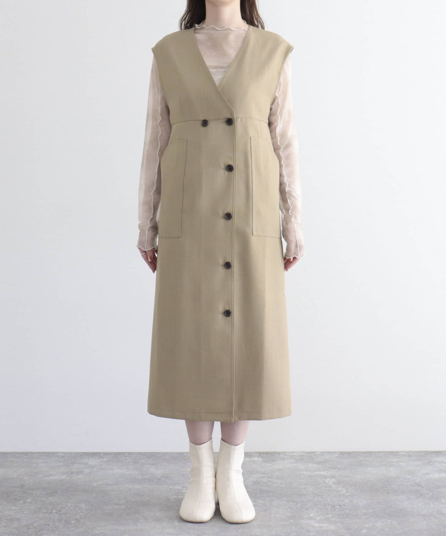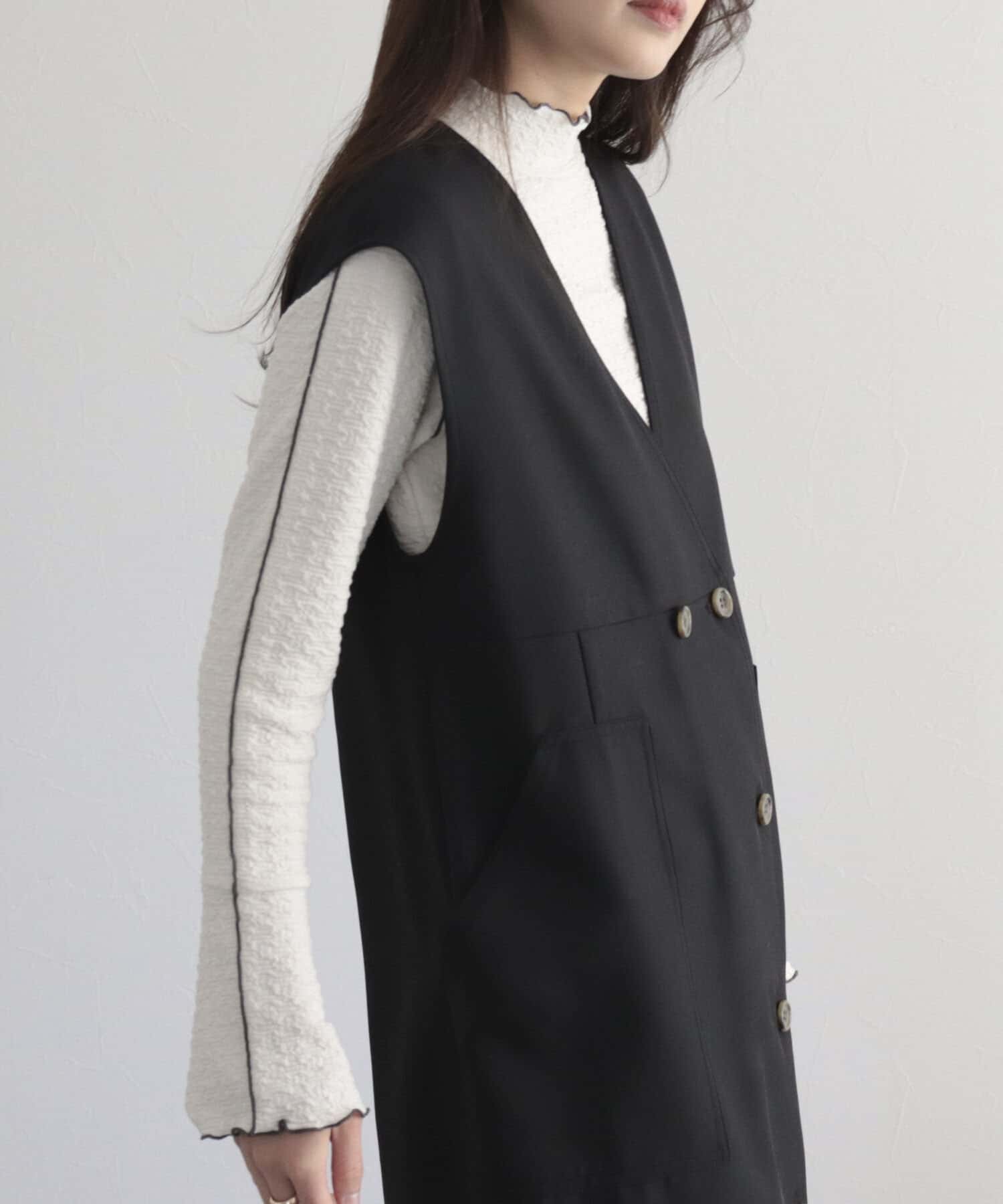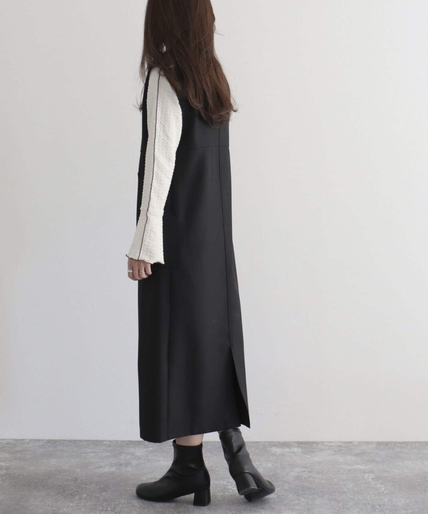 ・フロントボタンを閉じてジャンパースカートとして、開けてジレとして2WAYで楽しむことが出来ます