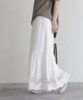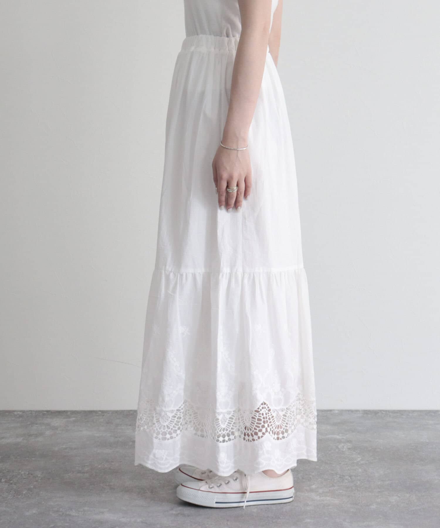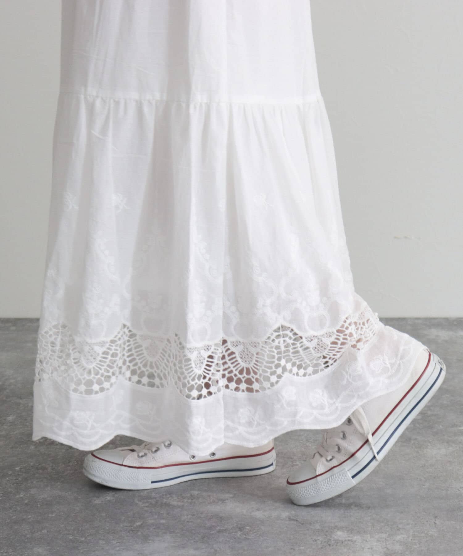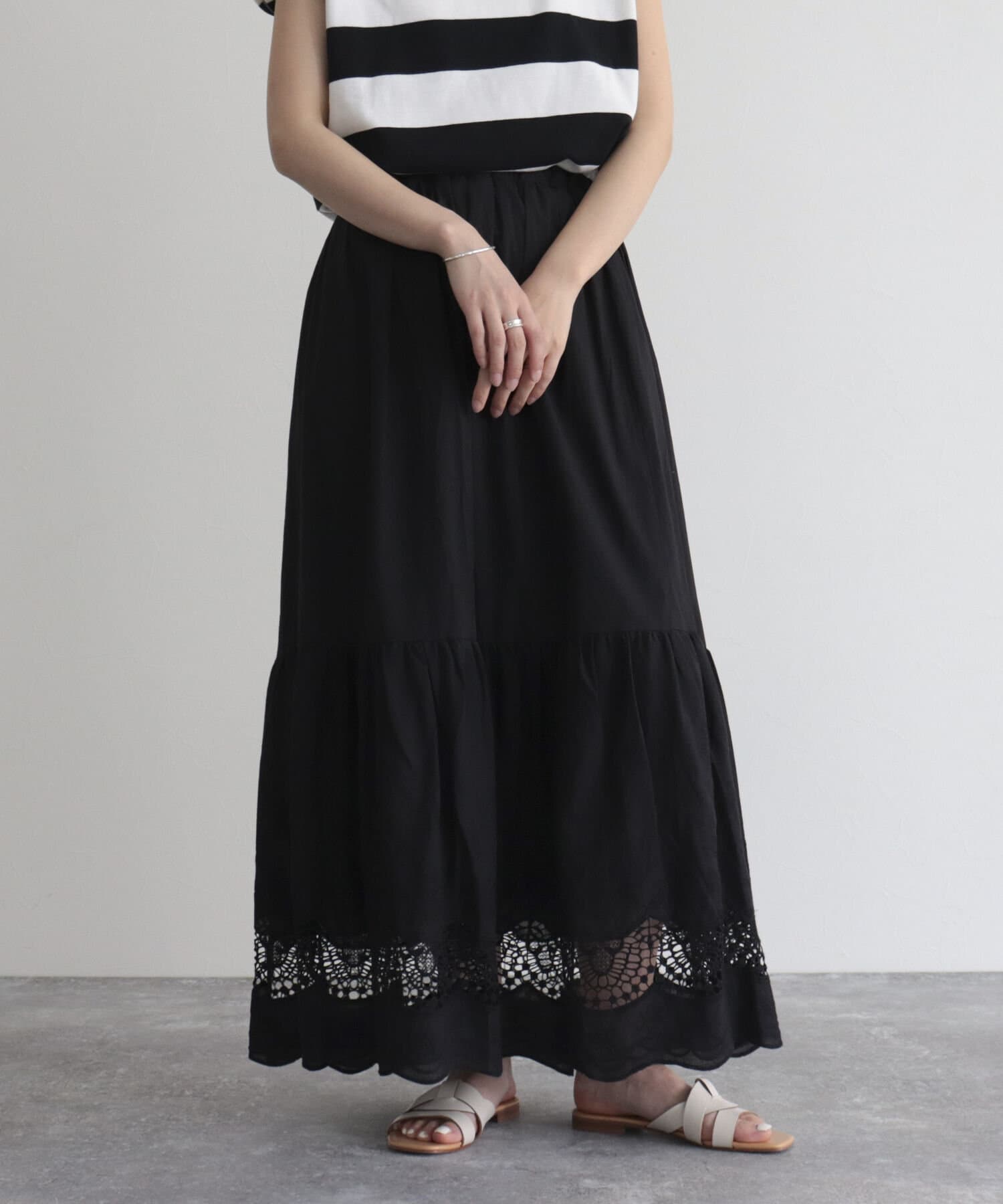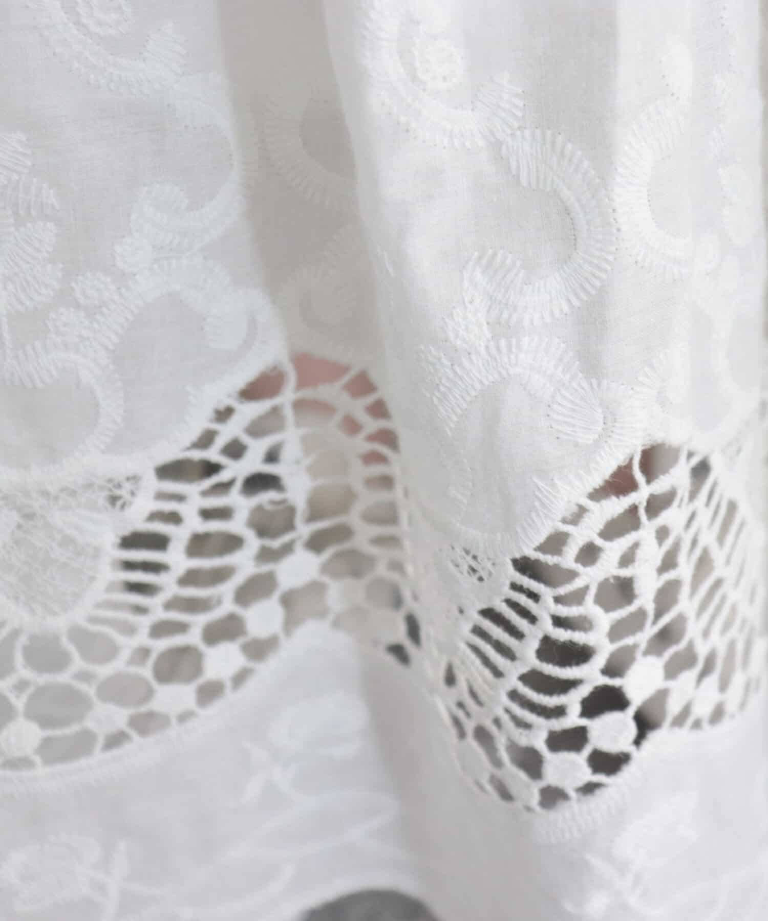 ・ヴィンテージのようなスカラップレースを裾に使ったギャザースカート