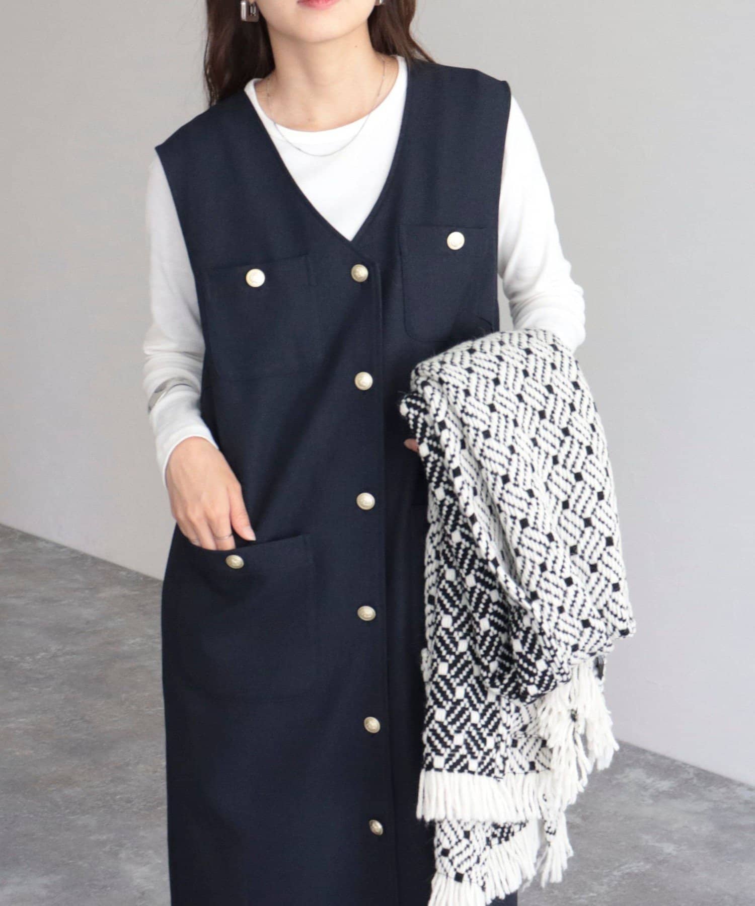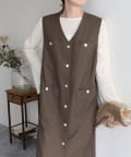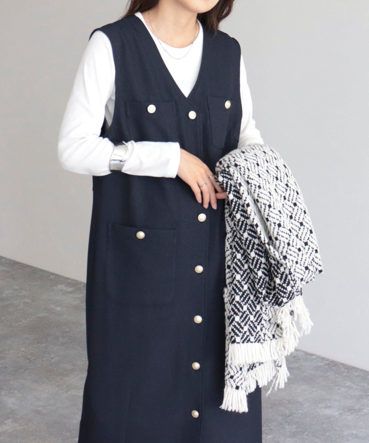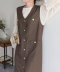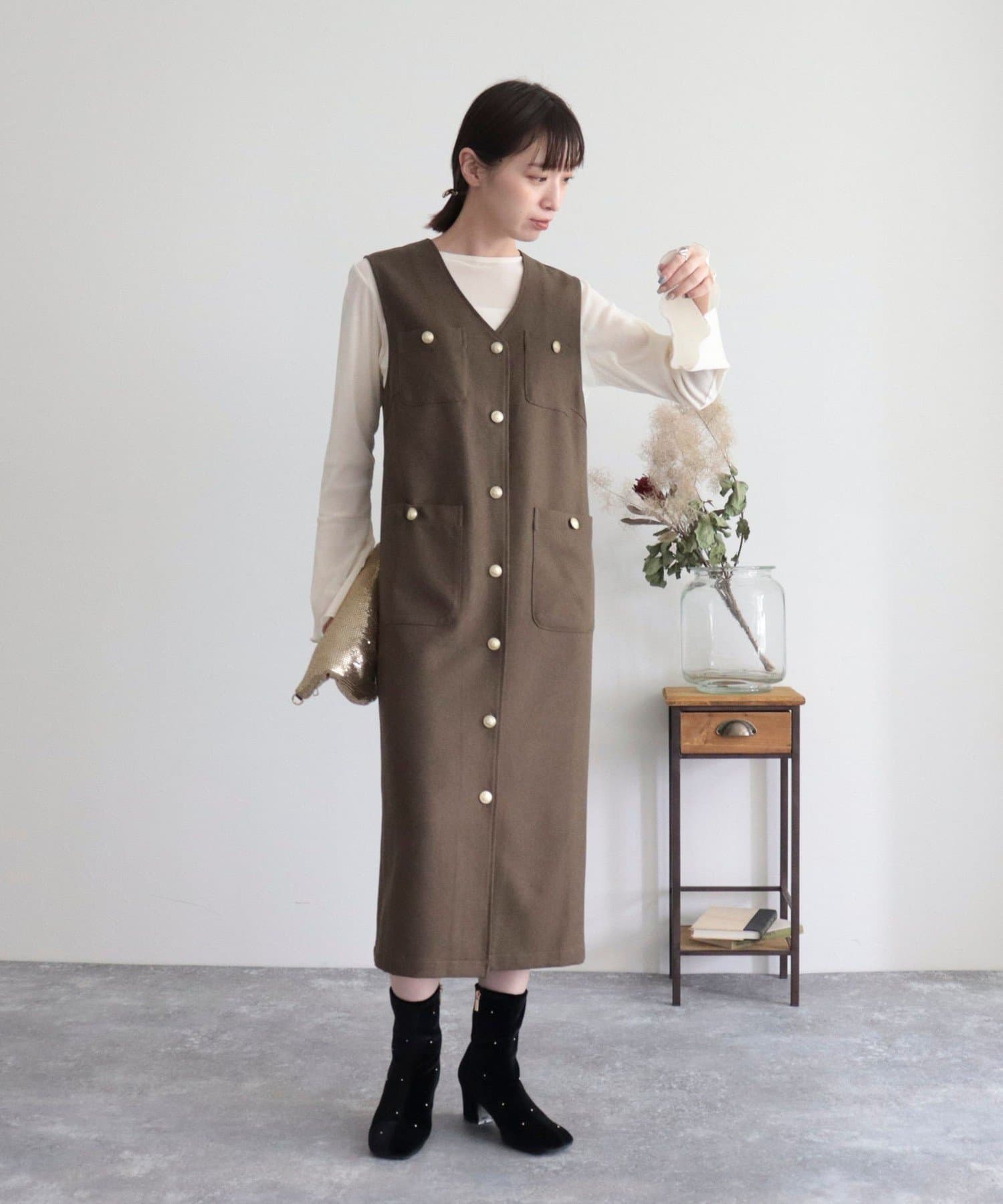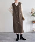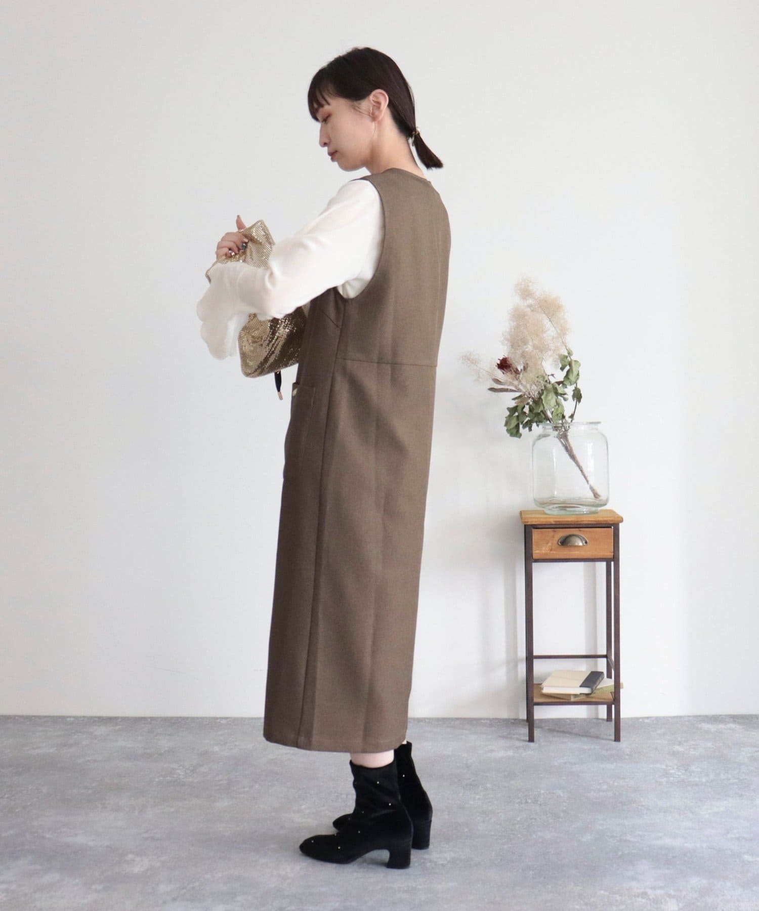 ・ワンピースとしてはもちろん、前を開けてジレとしても着用いただけるのでコーディネートの幅が広がります
