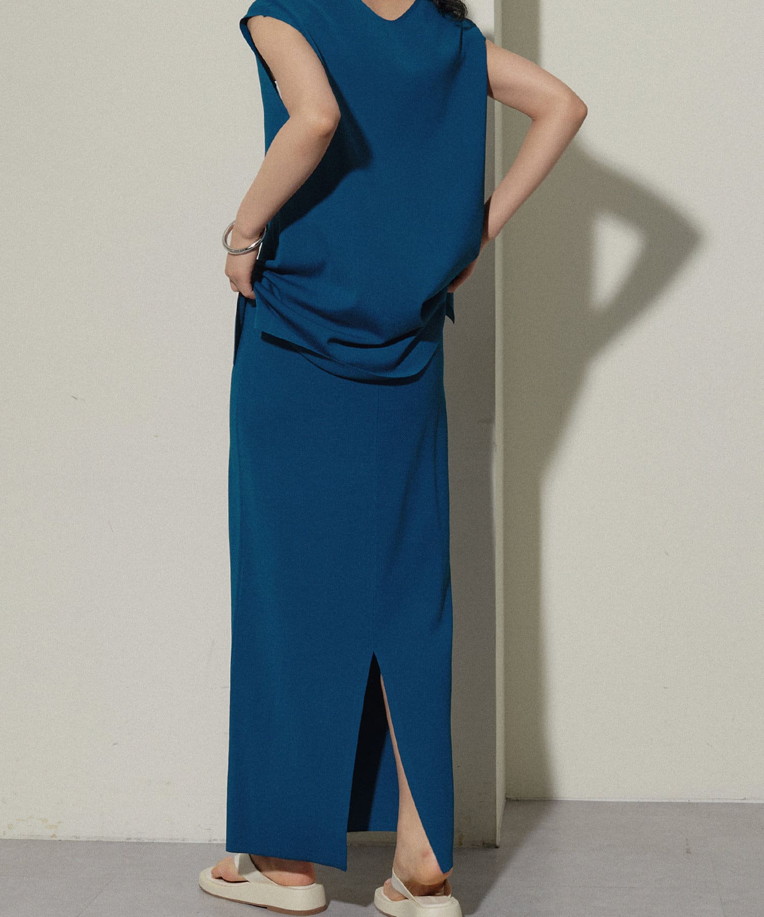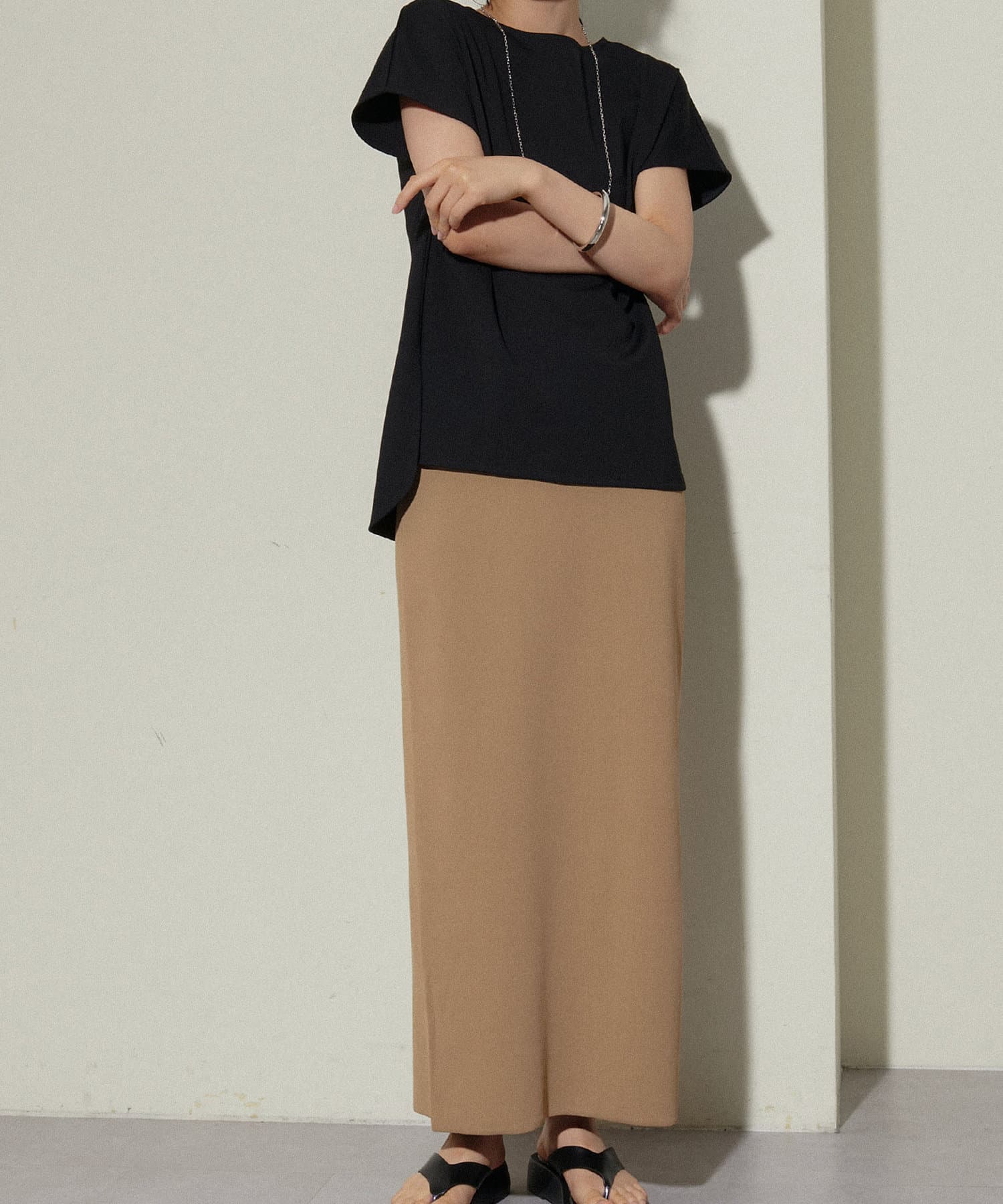 バックスリットがアクセントにもなりつつ、足さばきのしやすさにも配慮。