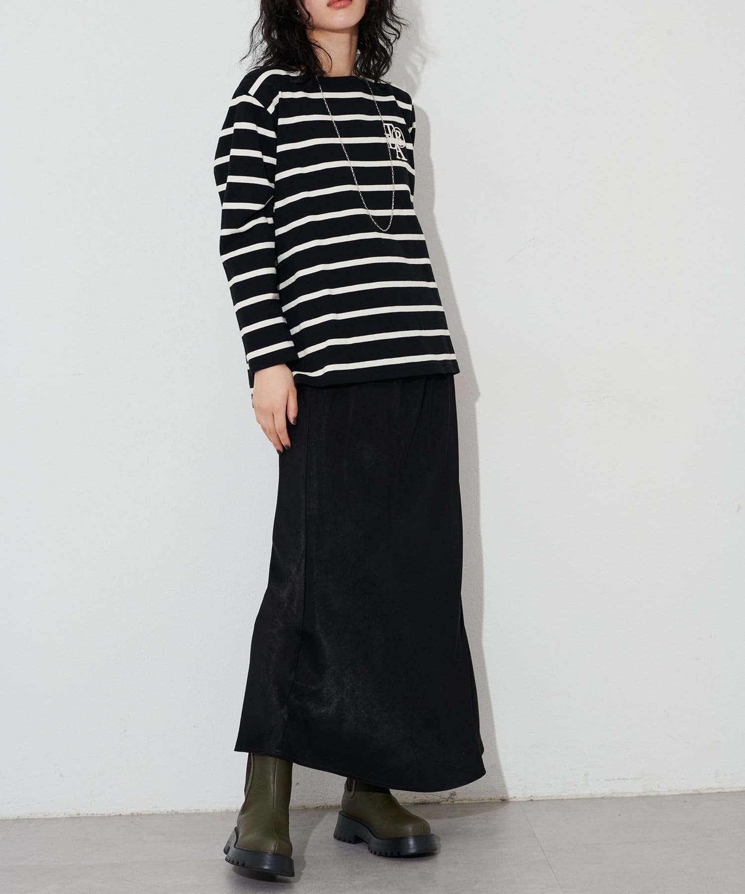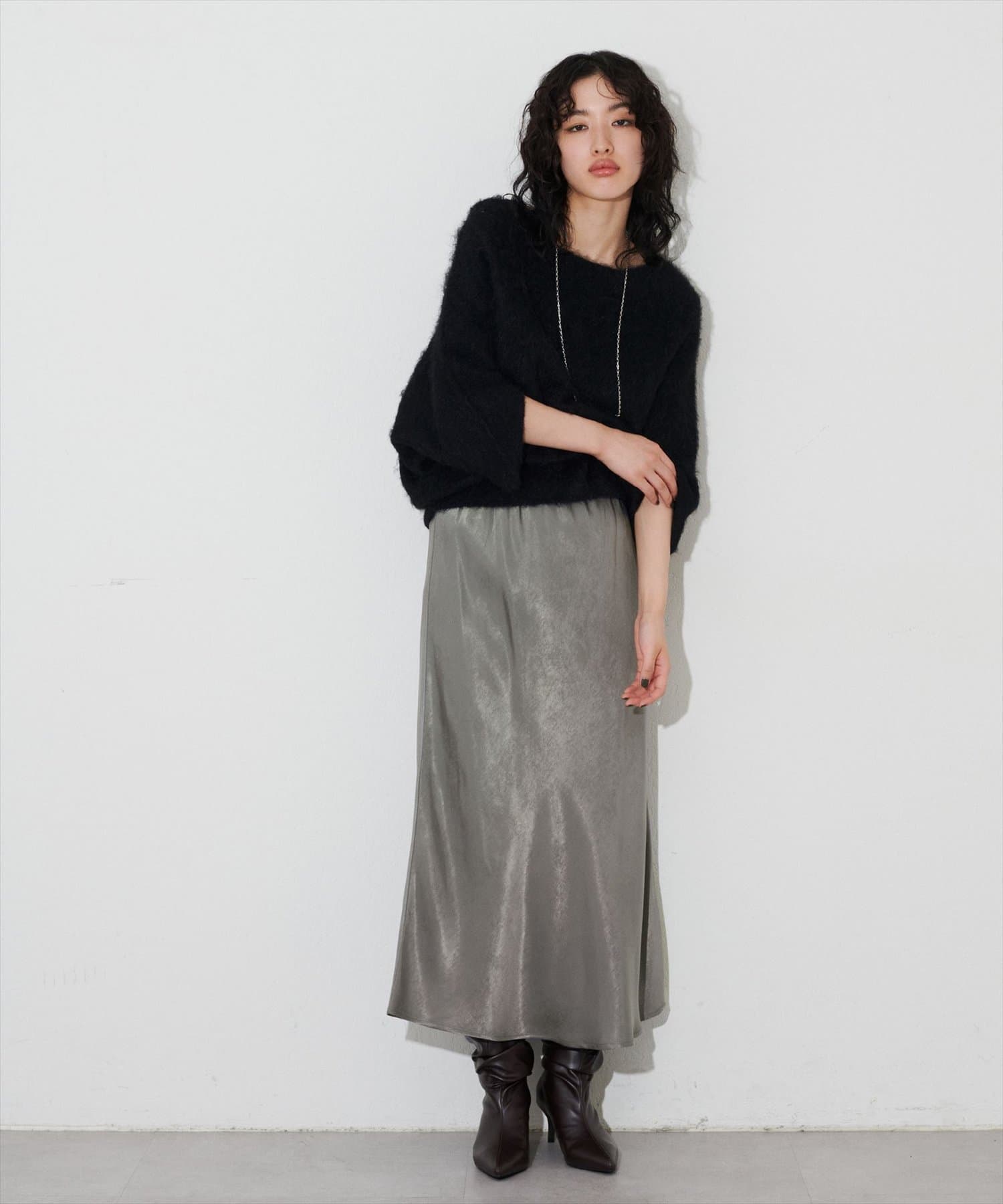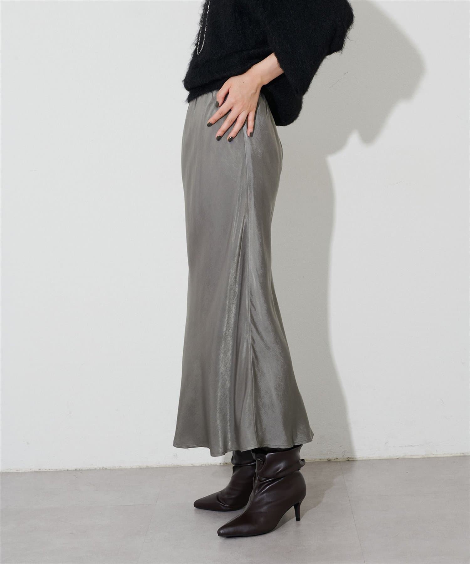 大人のフェミニンスタイルにぴったりなサテンスカート。