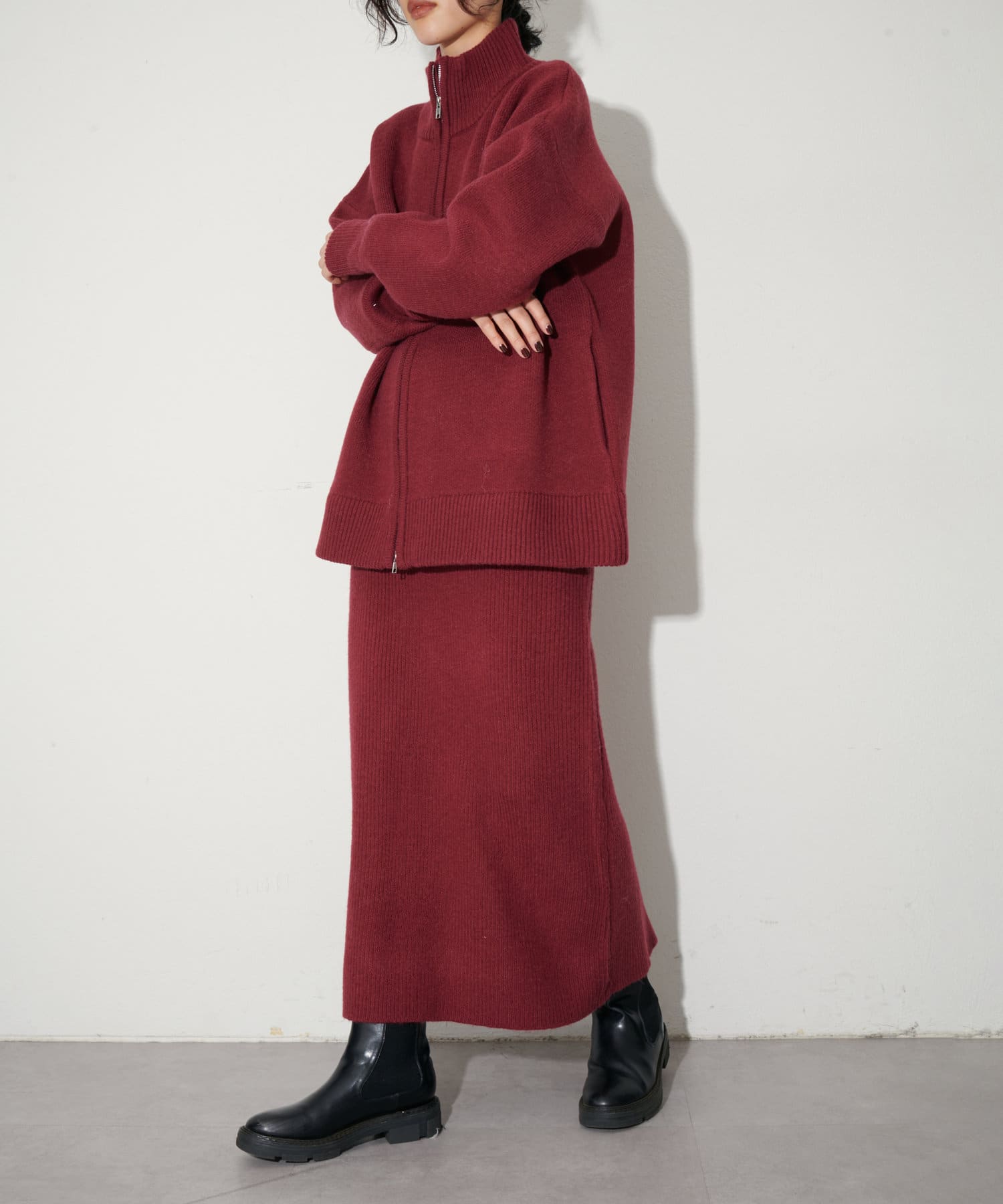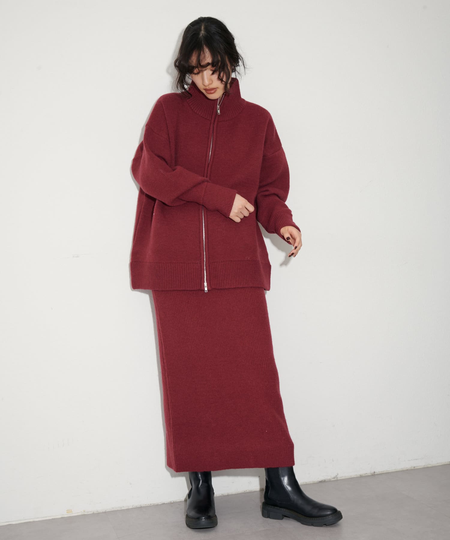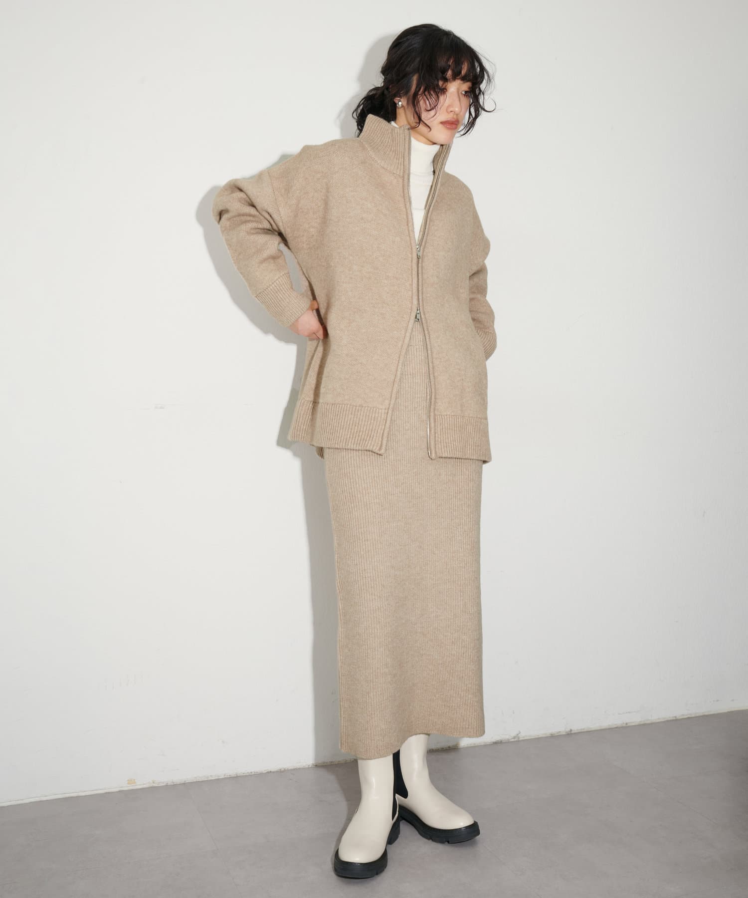 3032050470 ダブルジップニットカーディガンとの