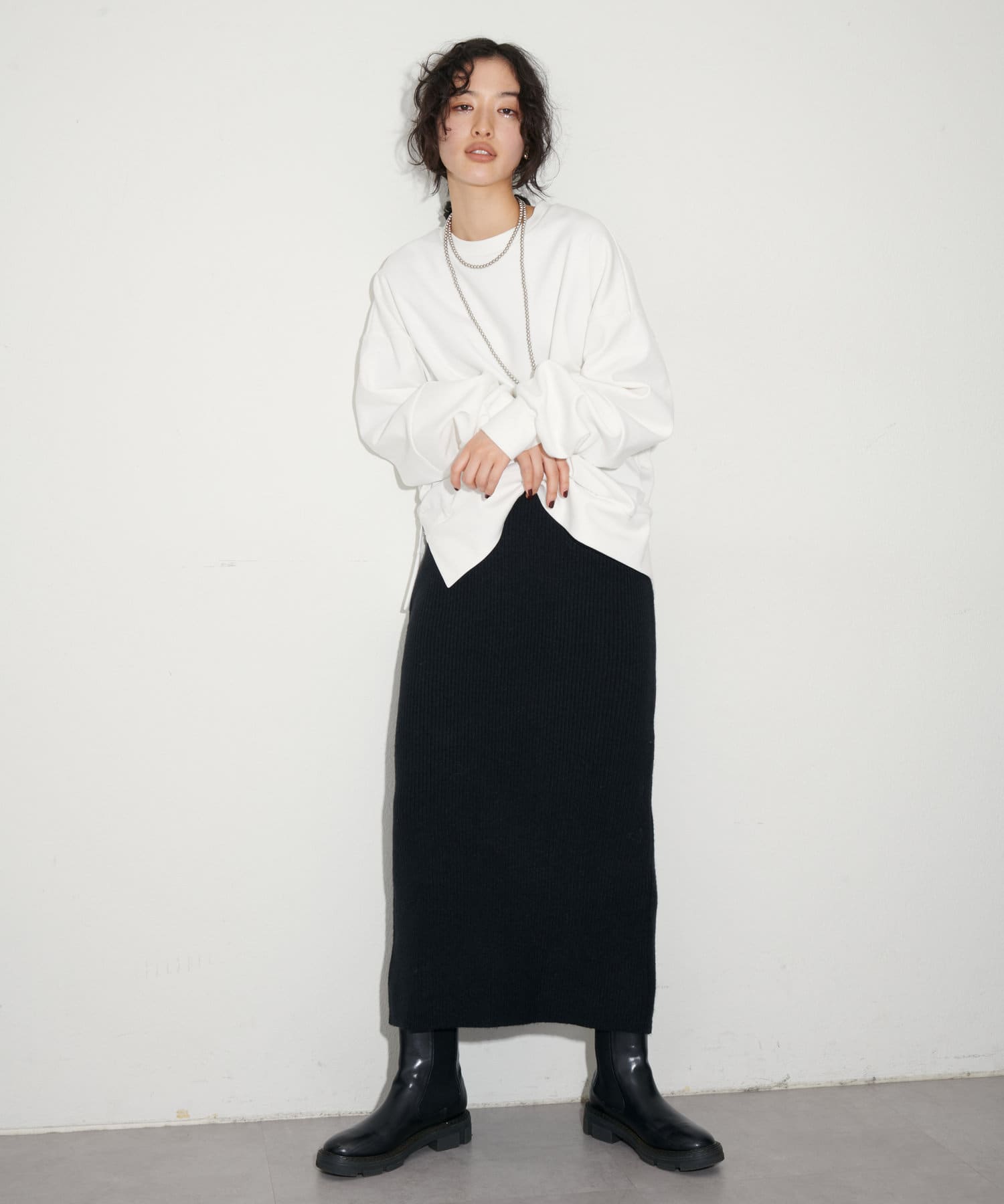 【セットアップ着用可能】リブペンシルニットスカート