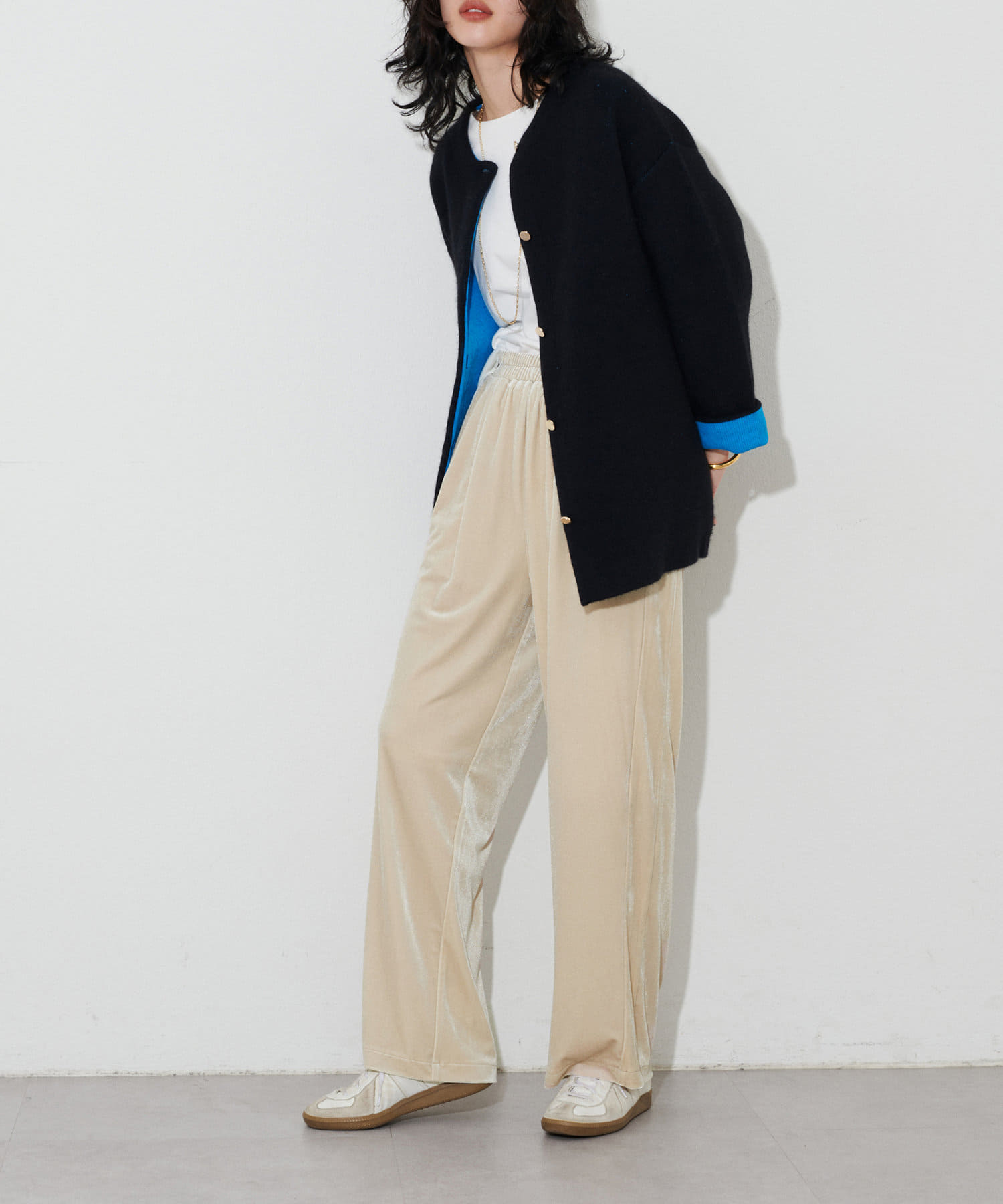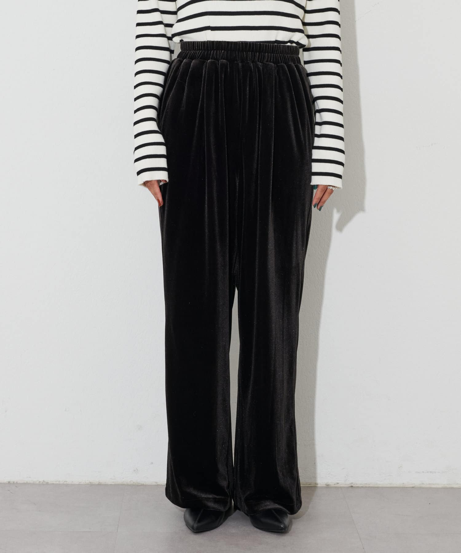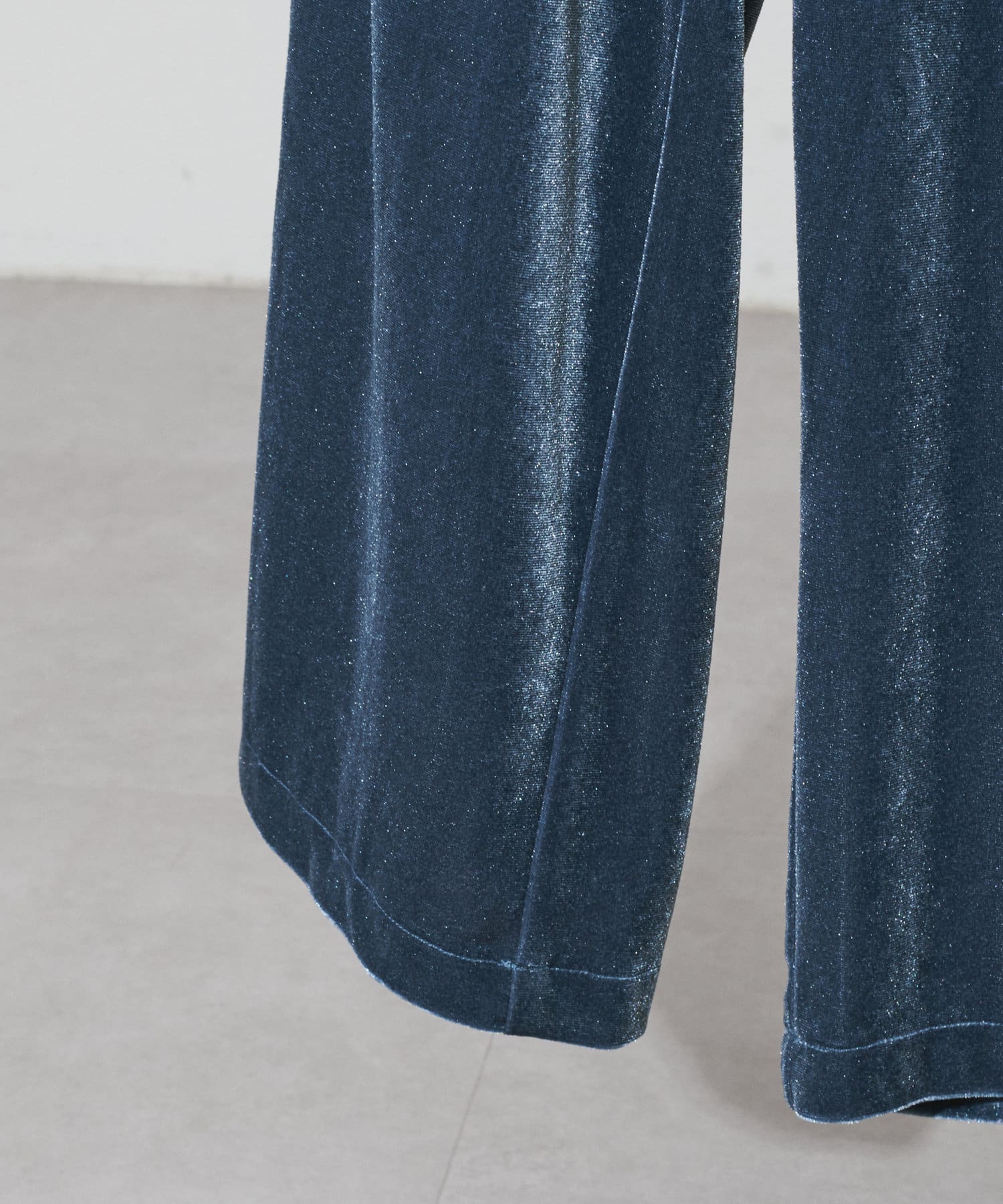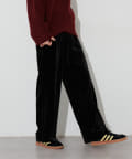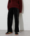 程よい裾幅のベロアワイドパンツ。