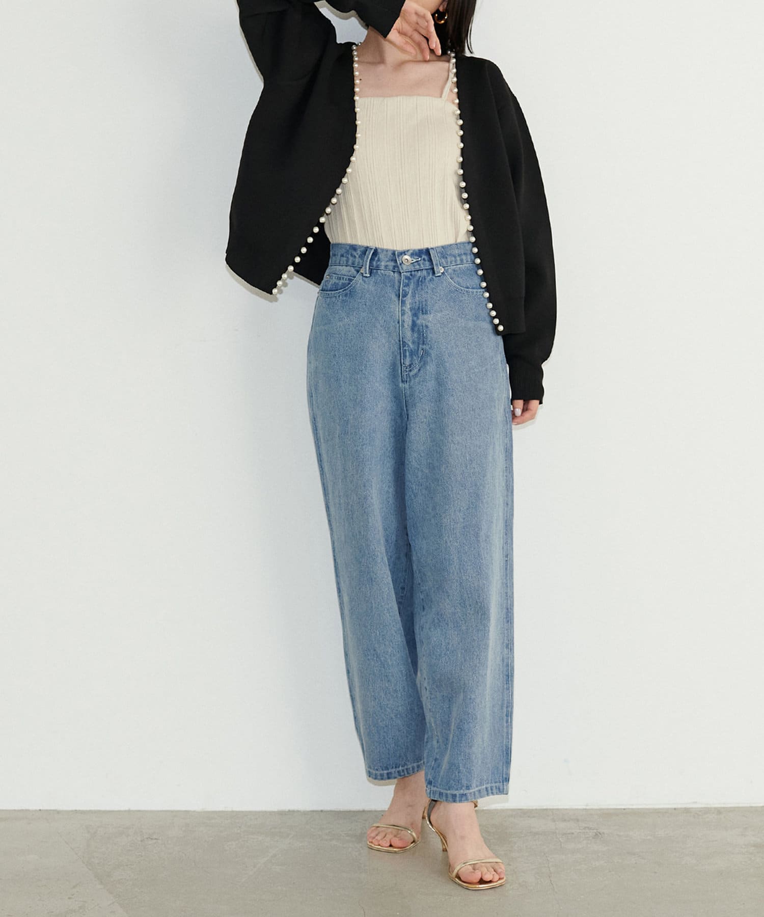 ややゆったりとしたサイズ感にショート丈という組み合わせがフレッシュで、