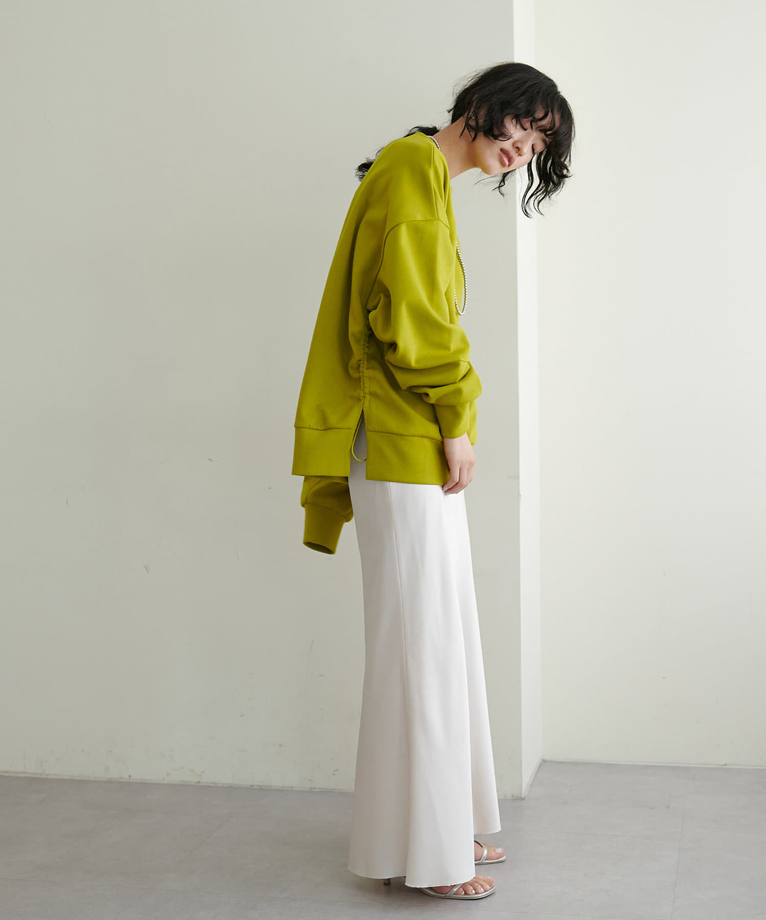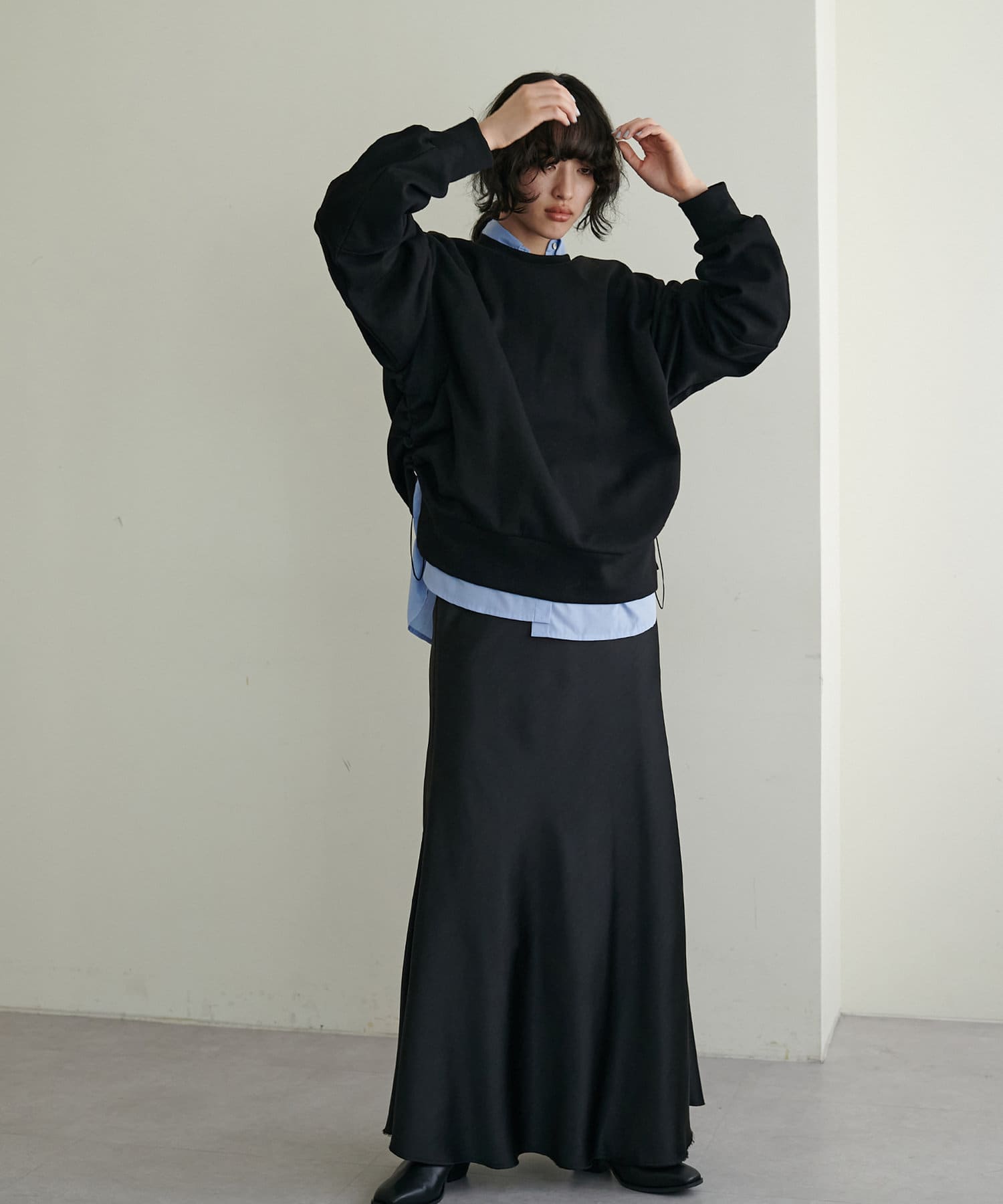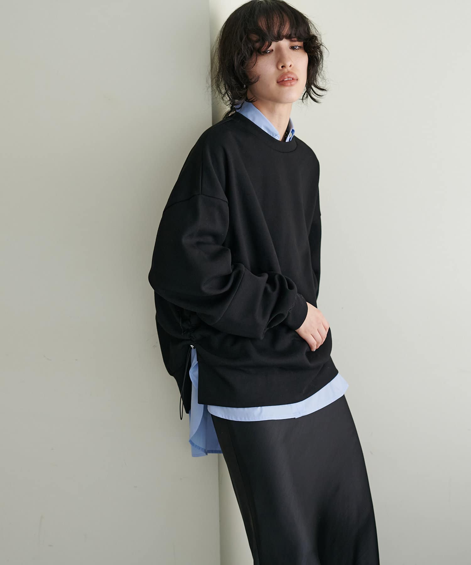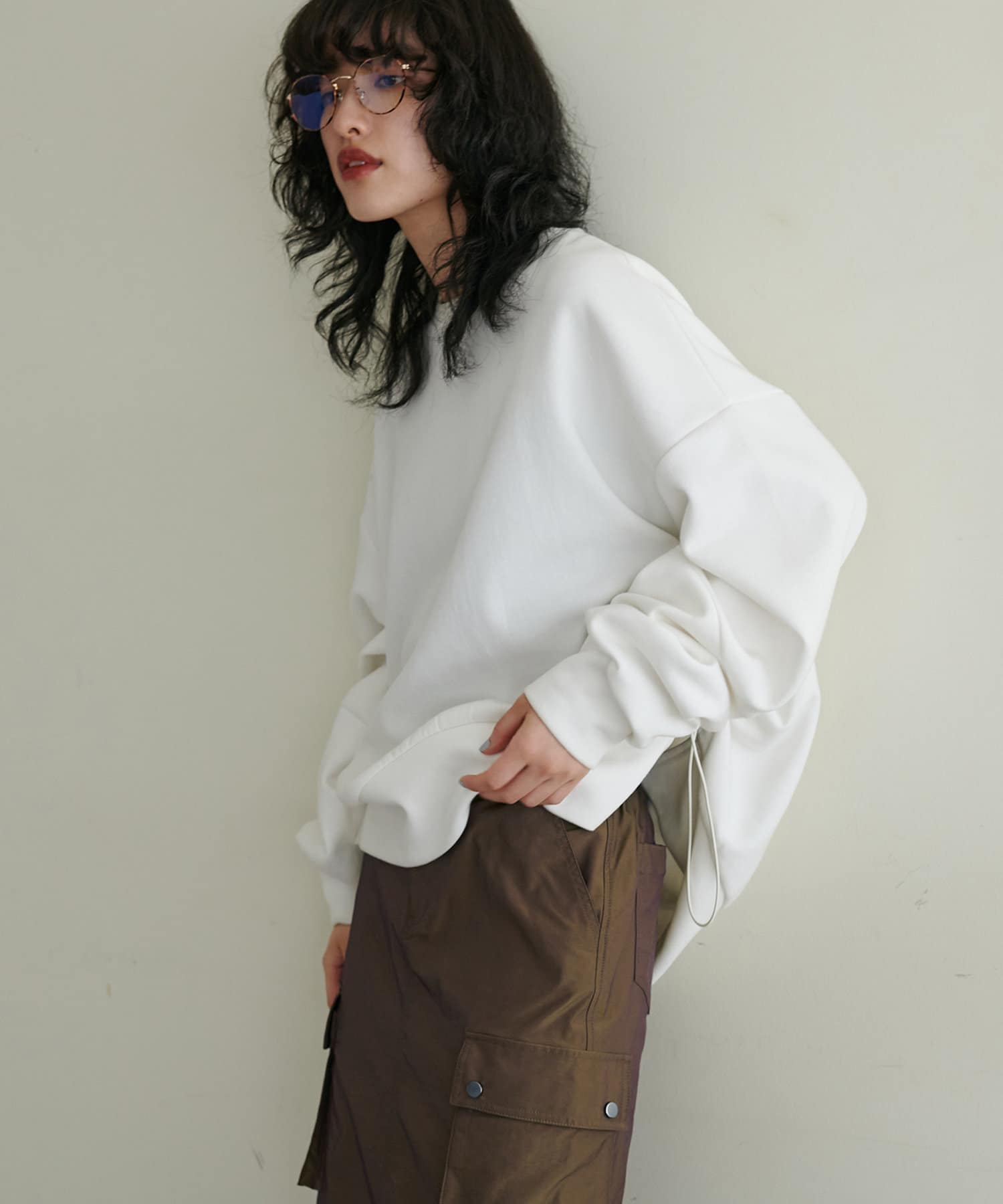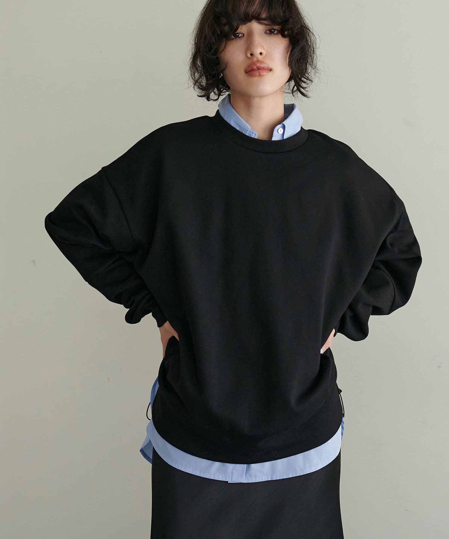 程よい厚みのある素材と脇のドロストで立体感のあるシルエットに。