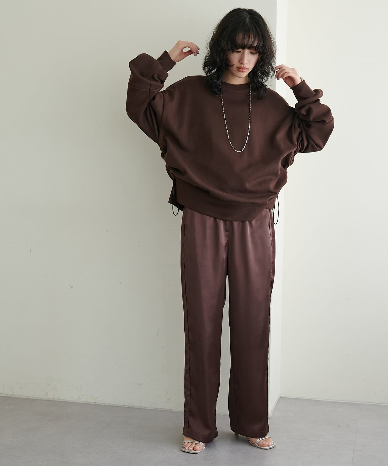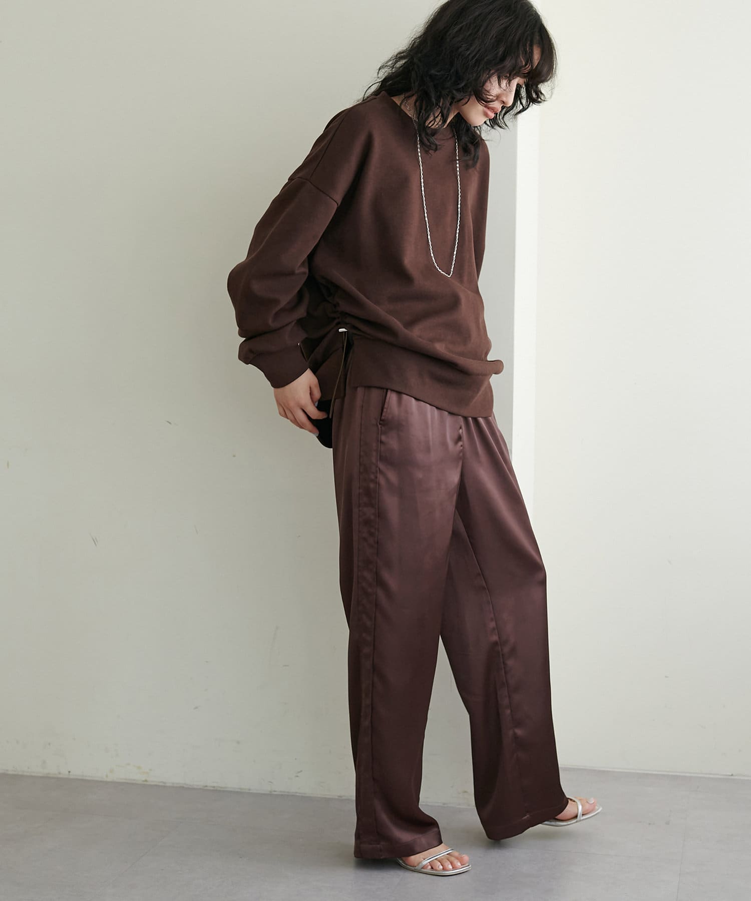 リラックスしたい時にはリブパンツを合わせても程よくこなれ感が出て◎
