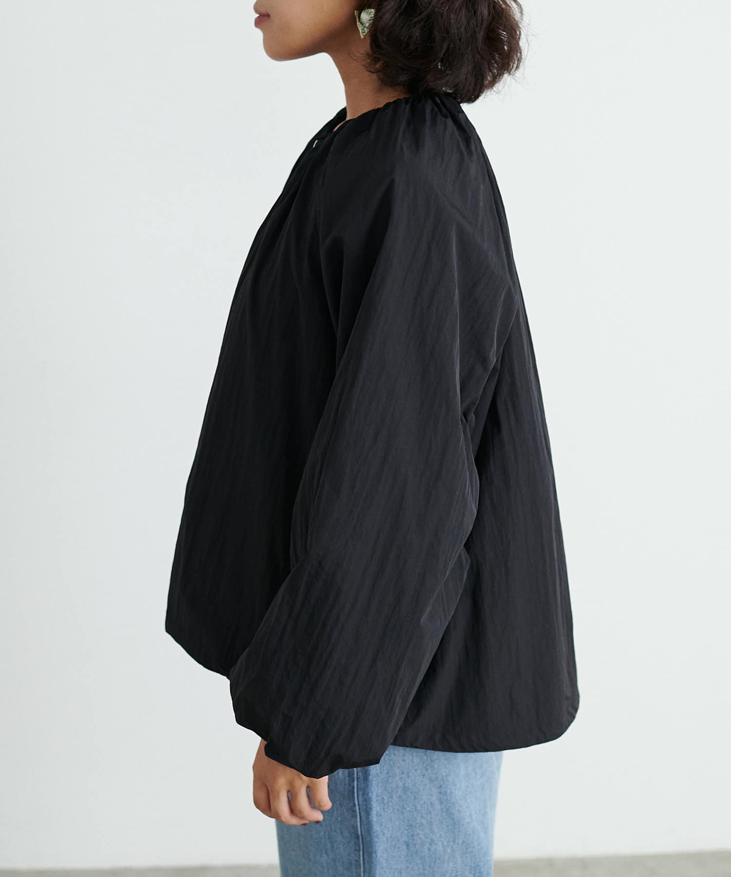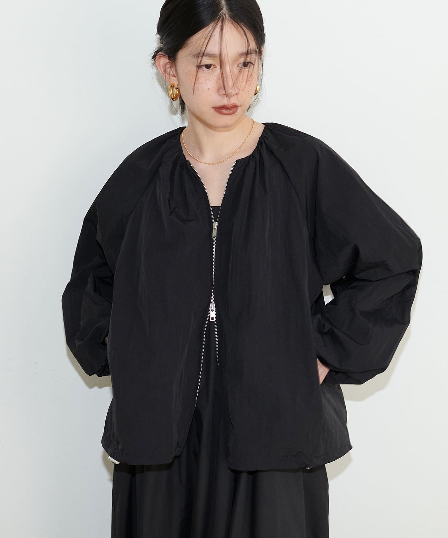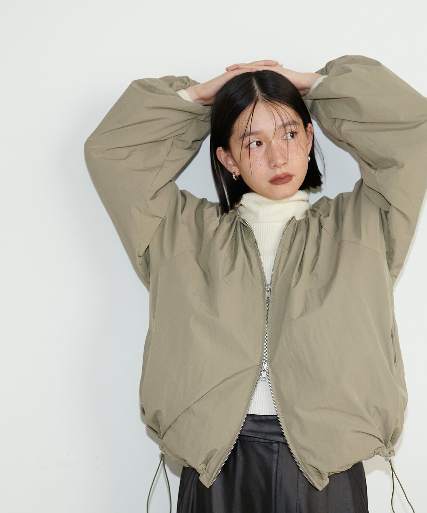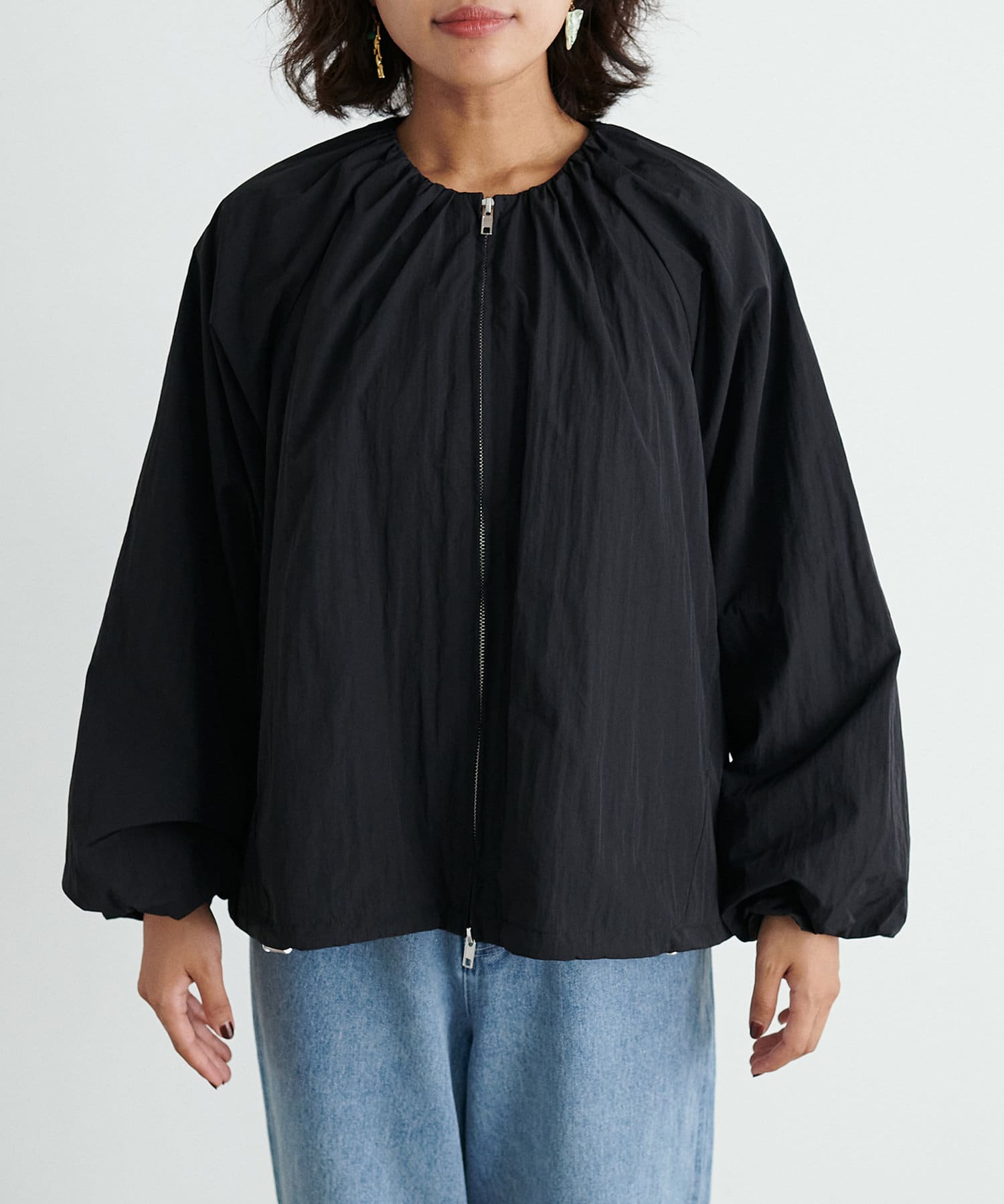 袖のバルーンシルエットが着映える、カジュアルなのに女性らしい、丸みのあるシルエットが魅力のエアリーなブルゾン。