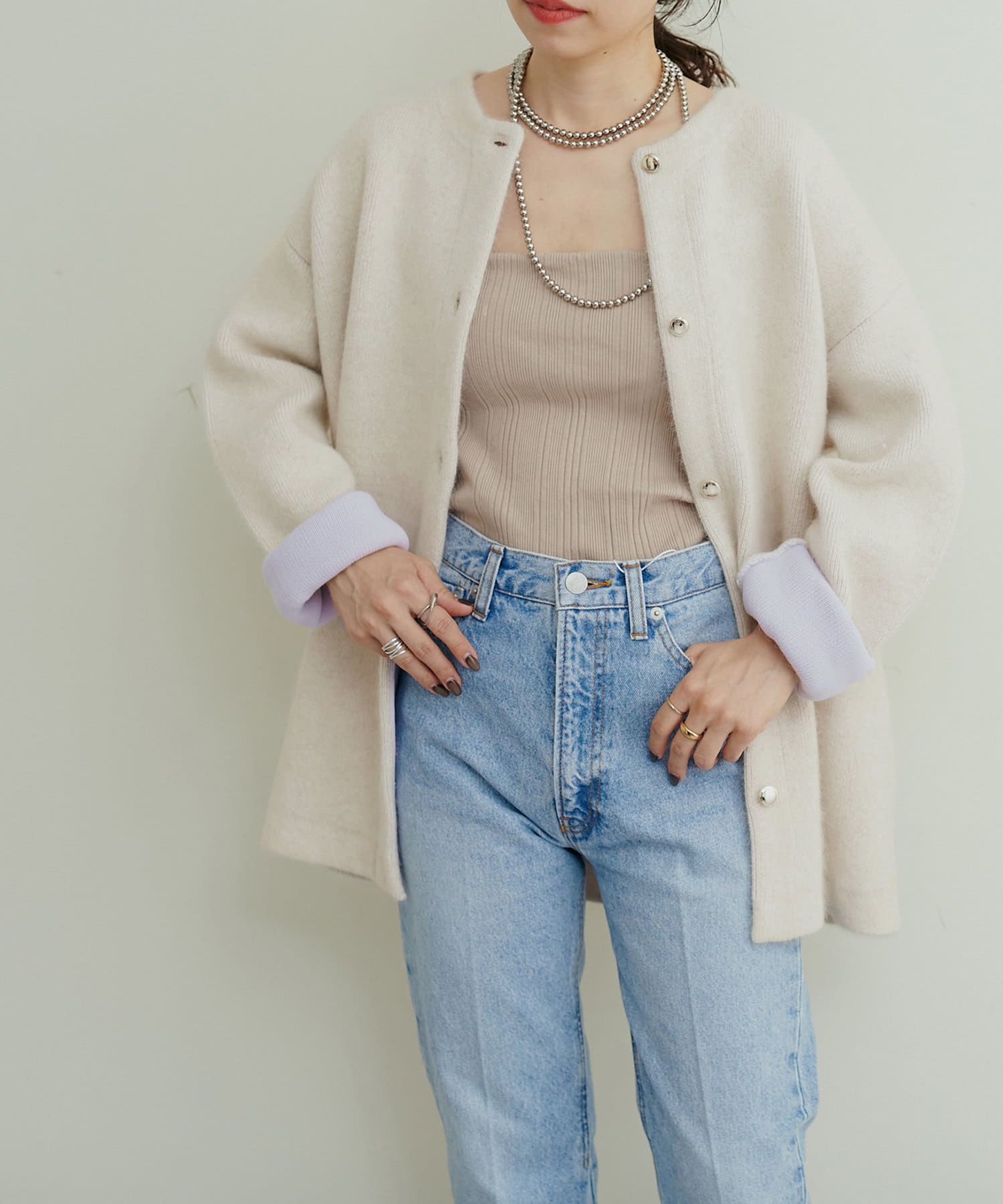 ワンピースや、袖にディテールのあるトップスなど、幅広いアイテムに羽織って頂きやすい、
