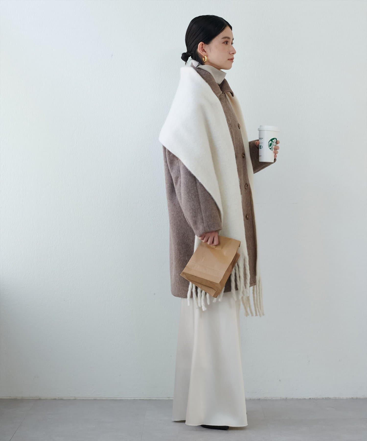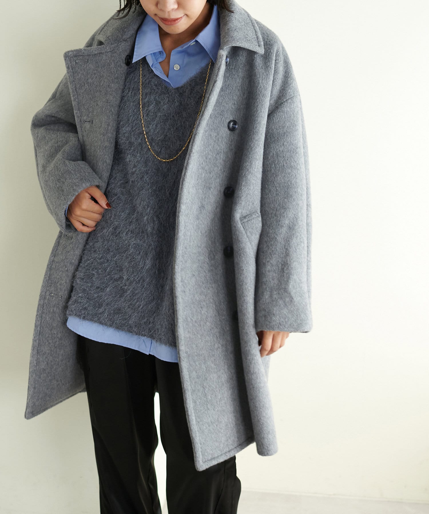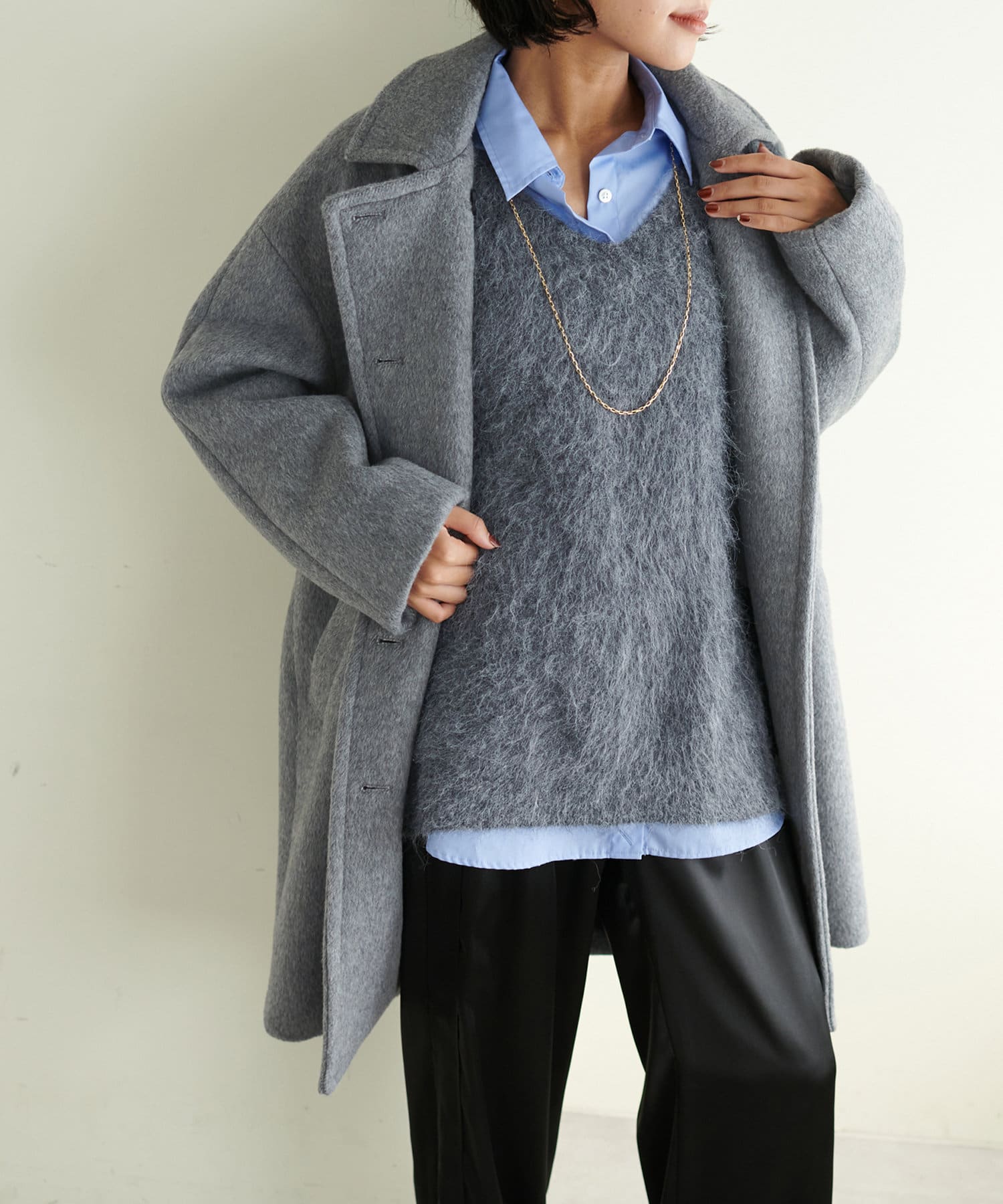 シャギー加工を施しシーズンム―ドな雰囲気を醸し出してくれるミドルコート