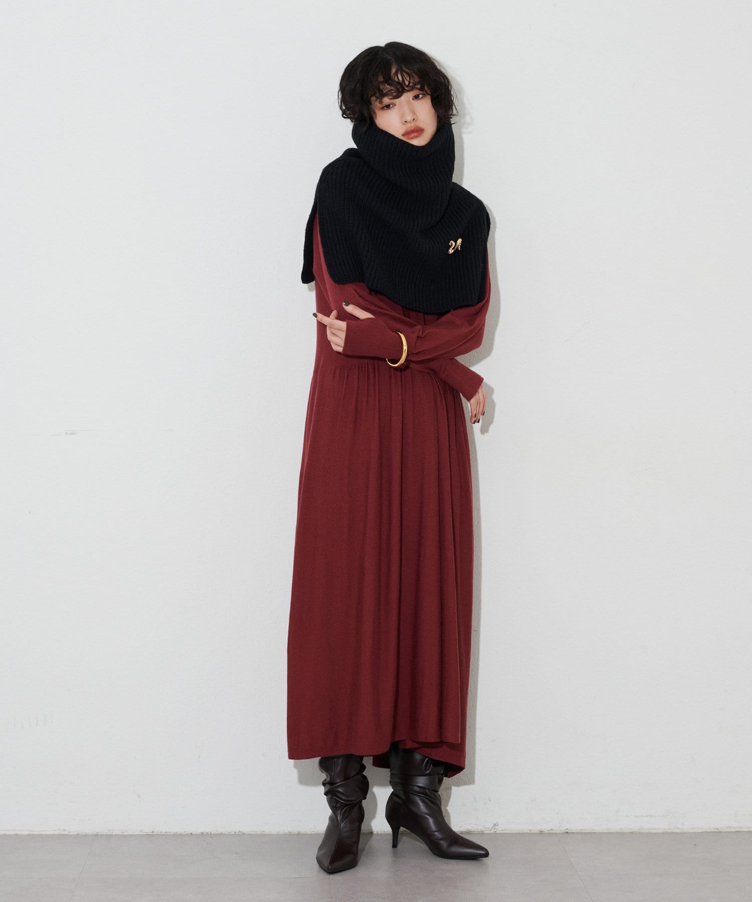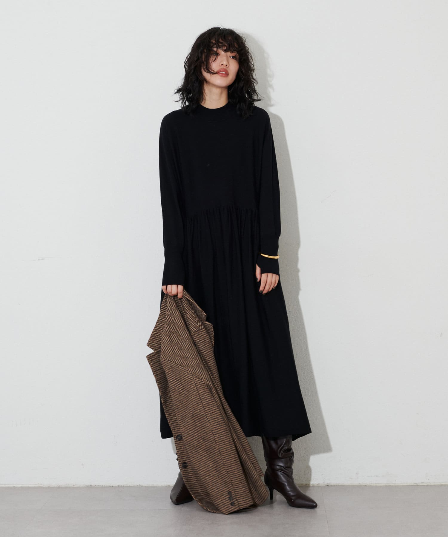 1枚で秋冬の上品なスタイリングが完成するニットワンピース。