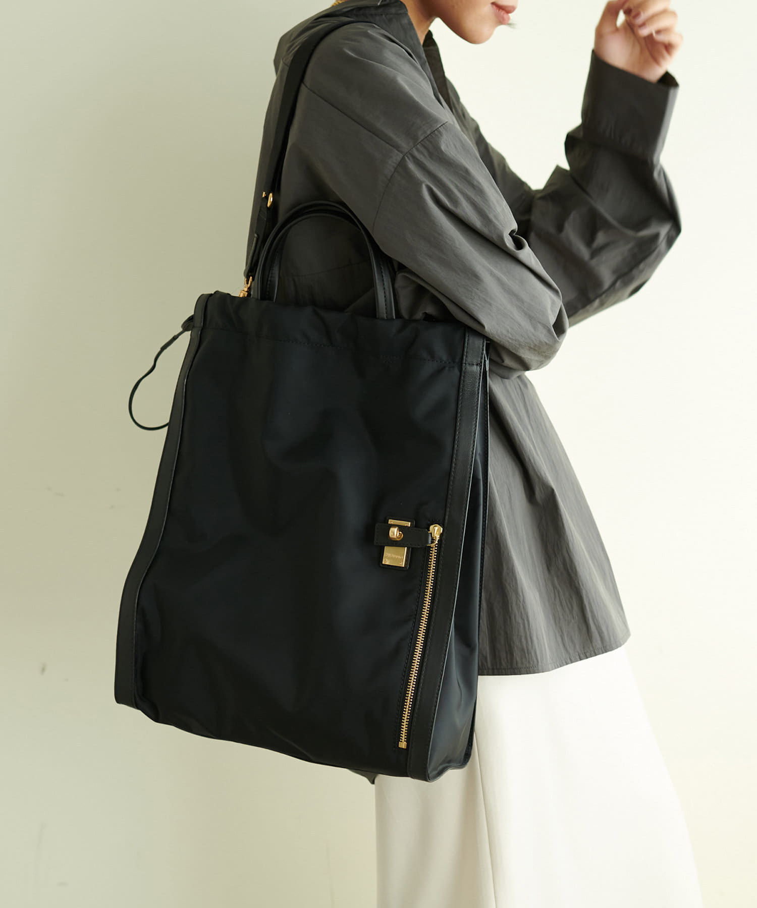 光沢のある上品なナイロンは軽く、様々なシーンでお使いいただけます。