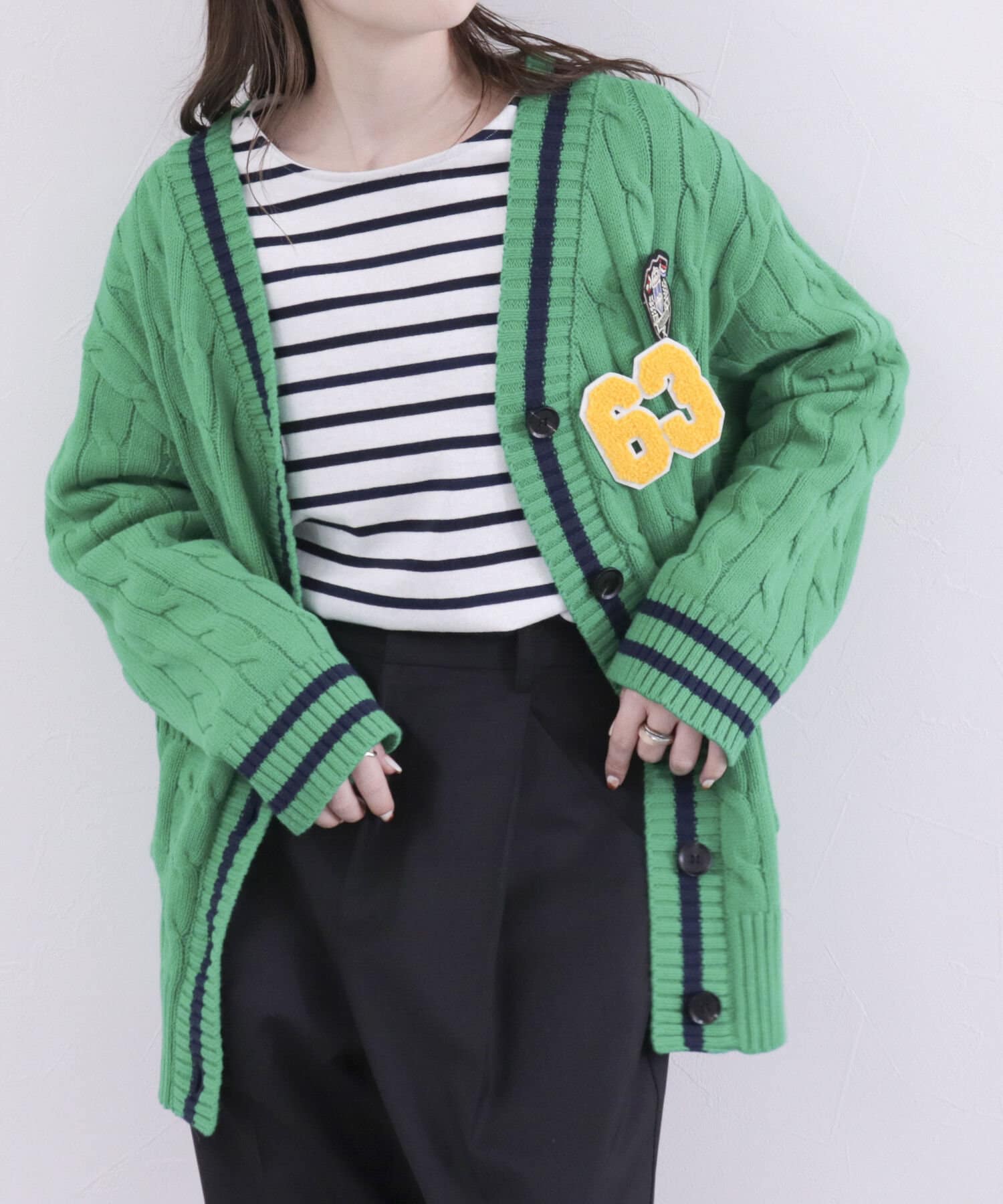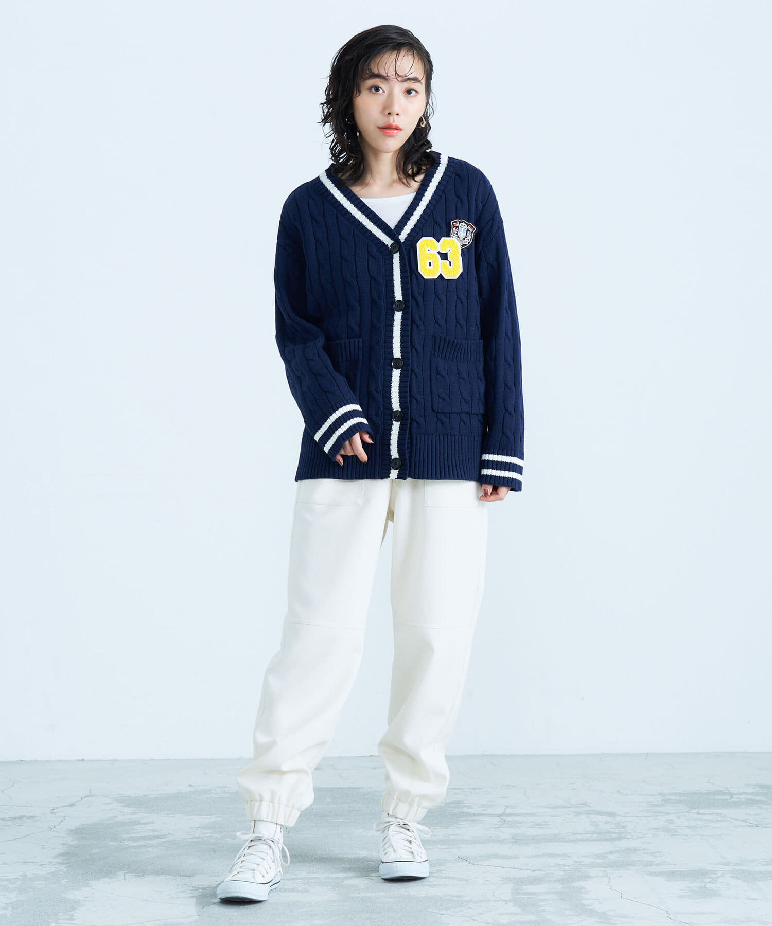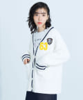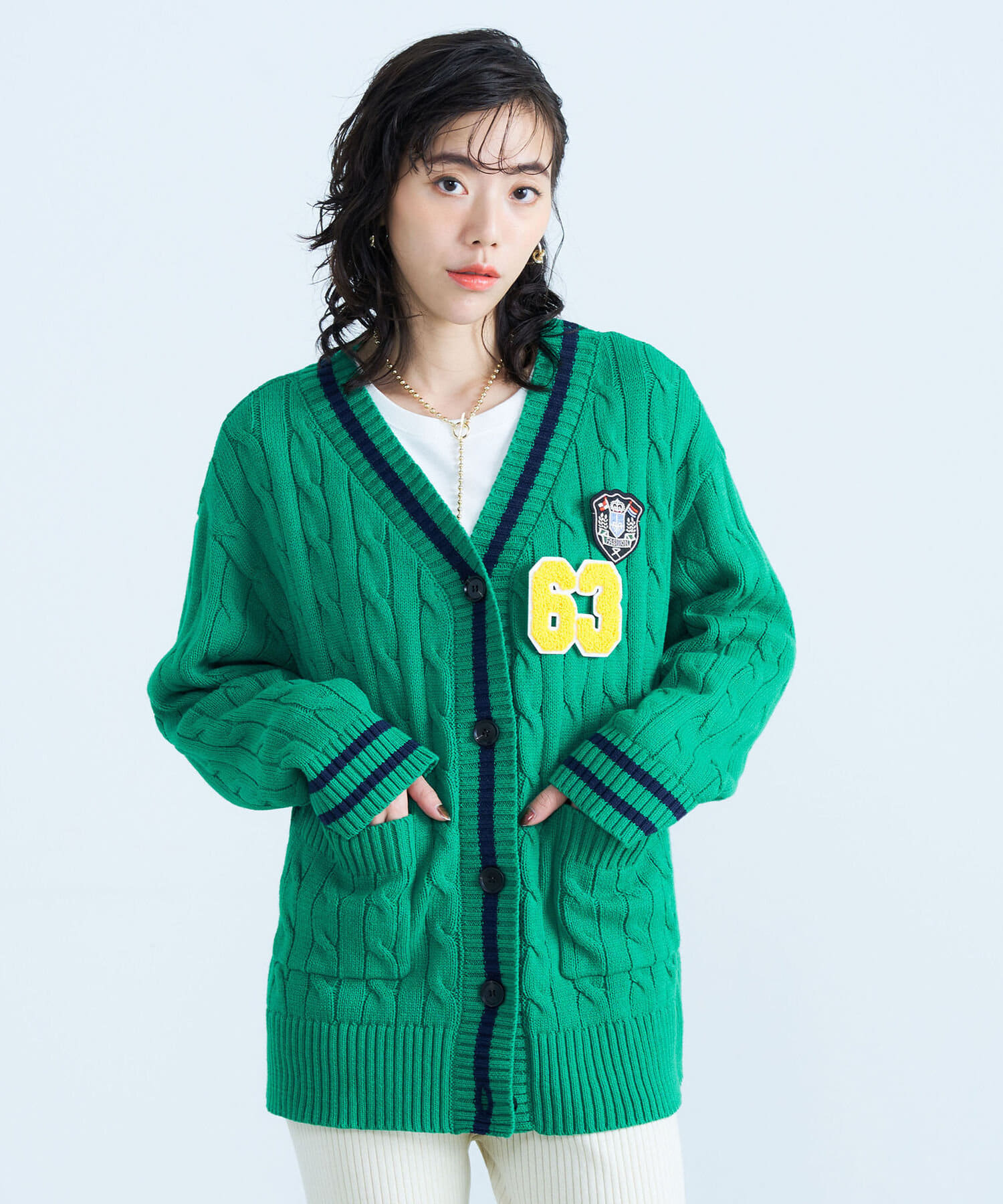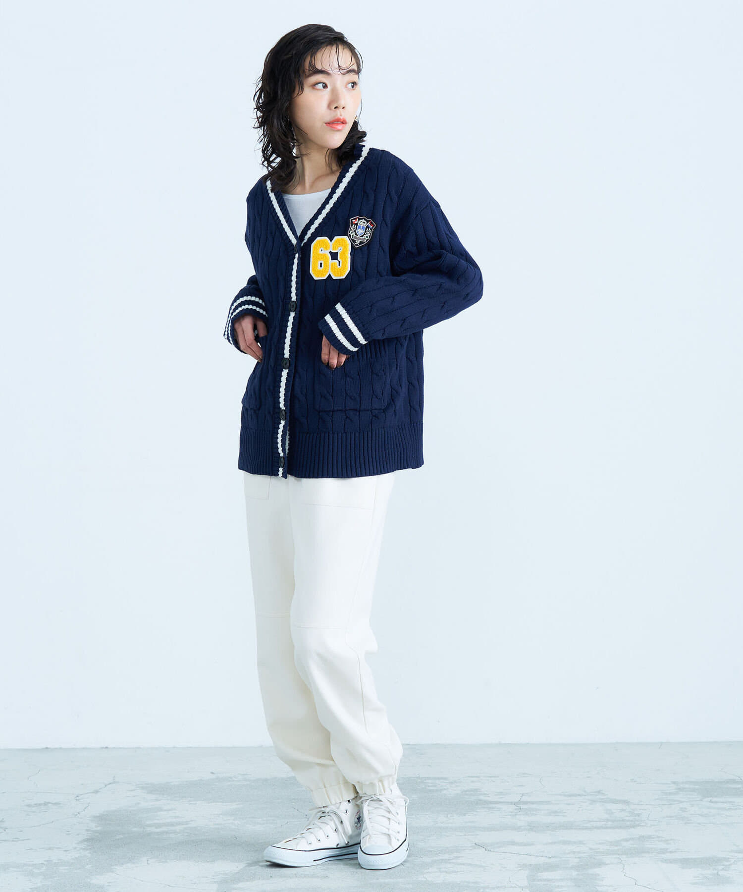 ・胸元のワッペンが目を惹くカレッジカーディガン