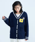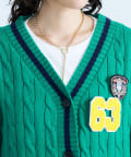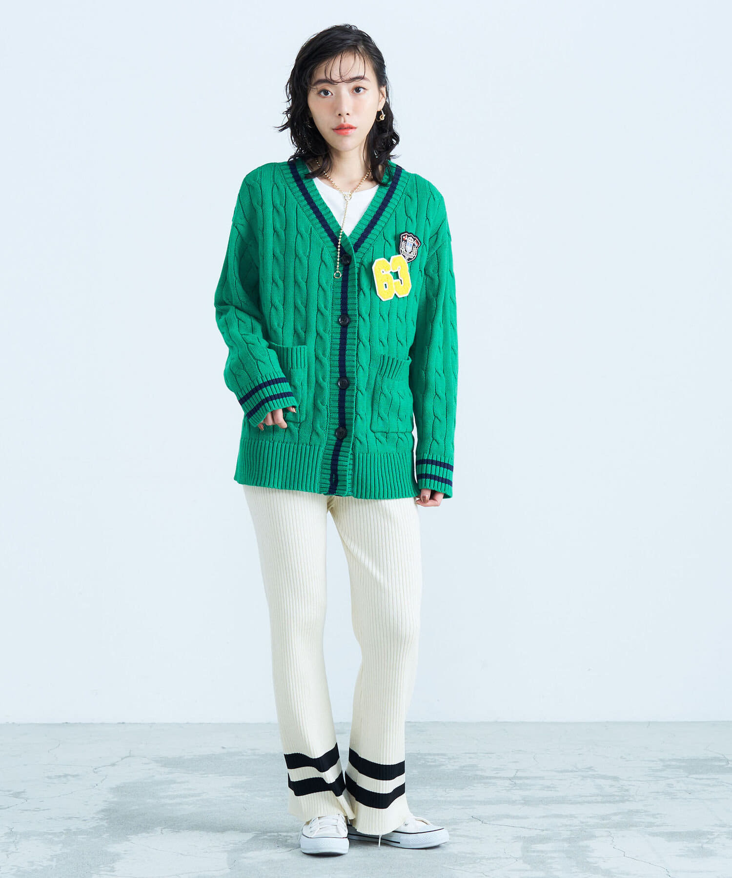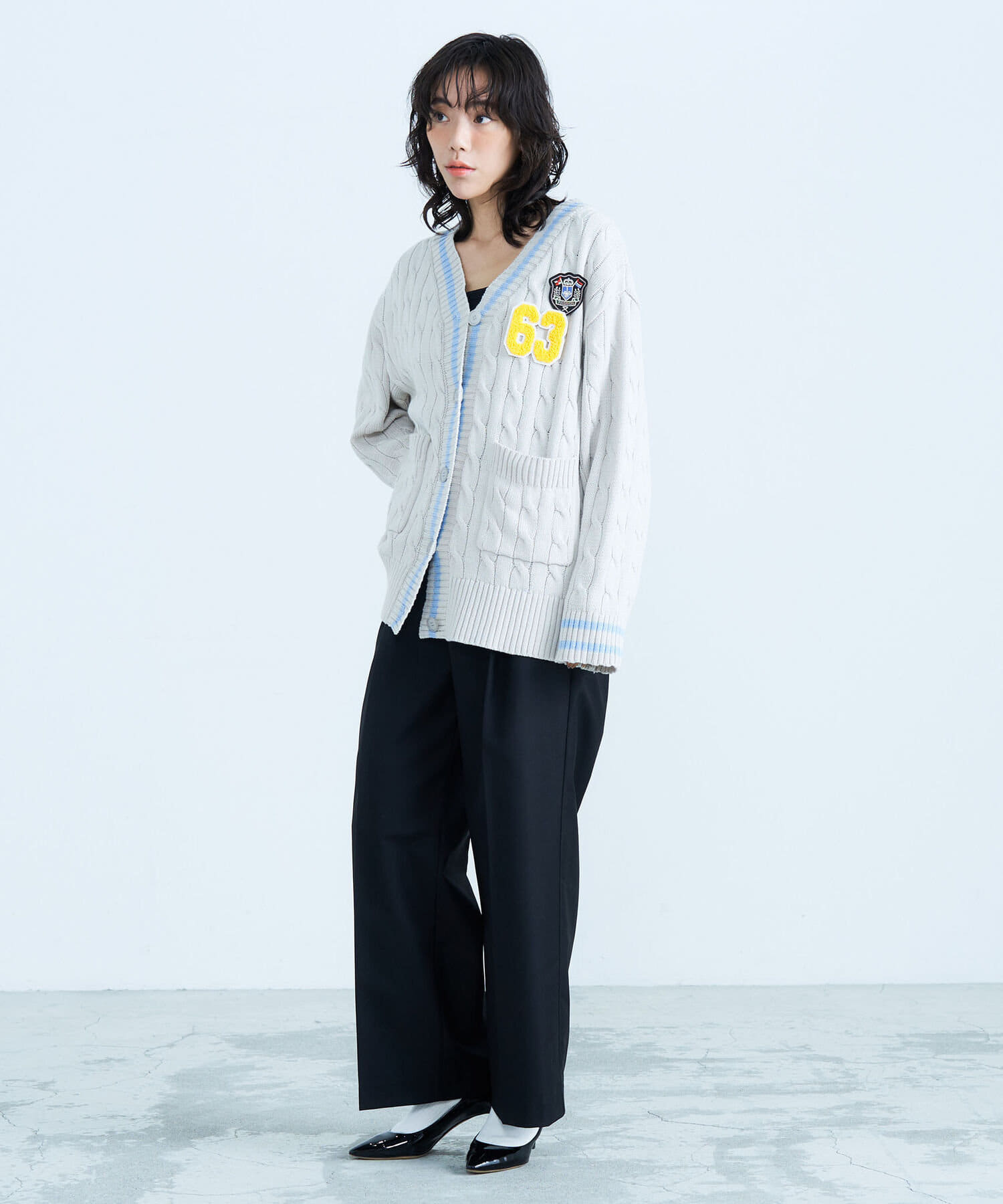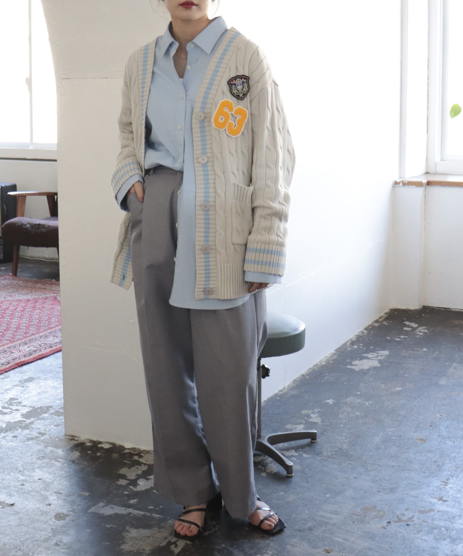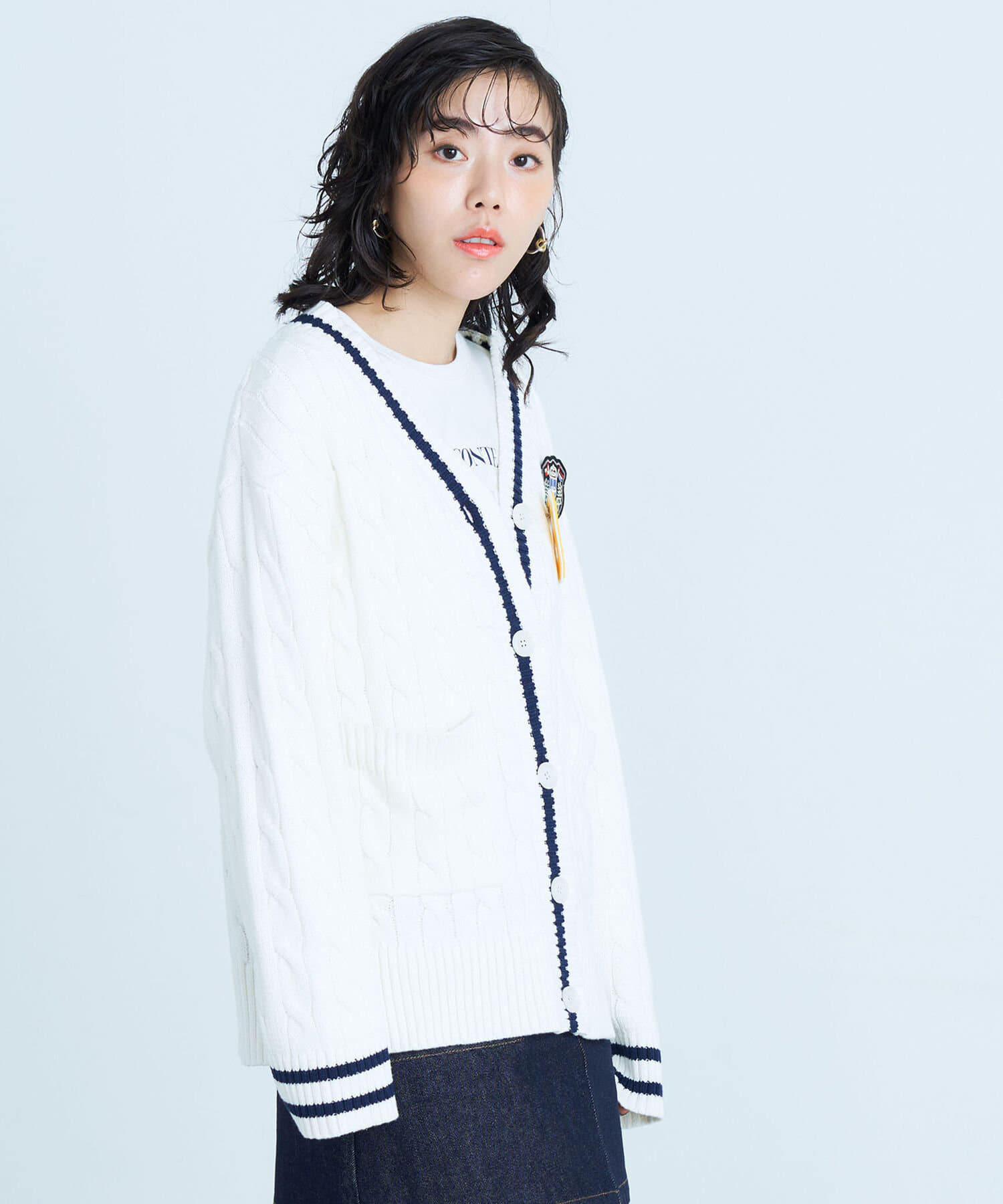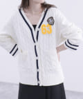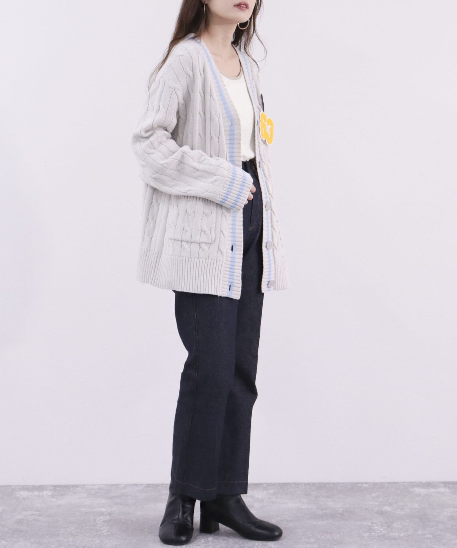 ・胸元のワッペンが目を惹くカレッジカーディガン