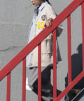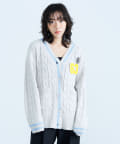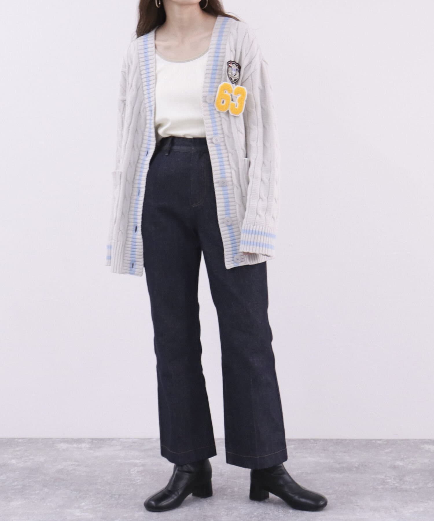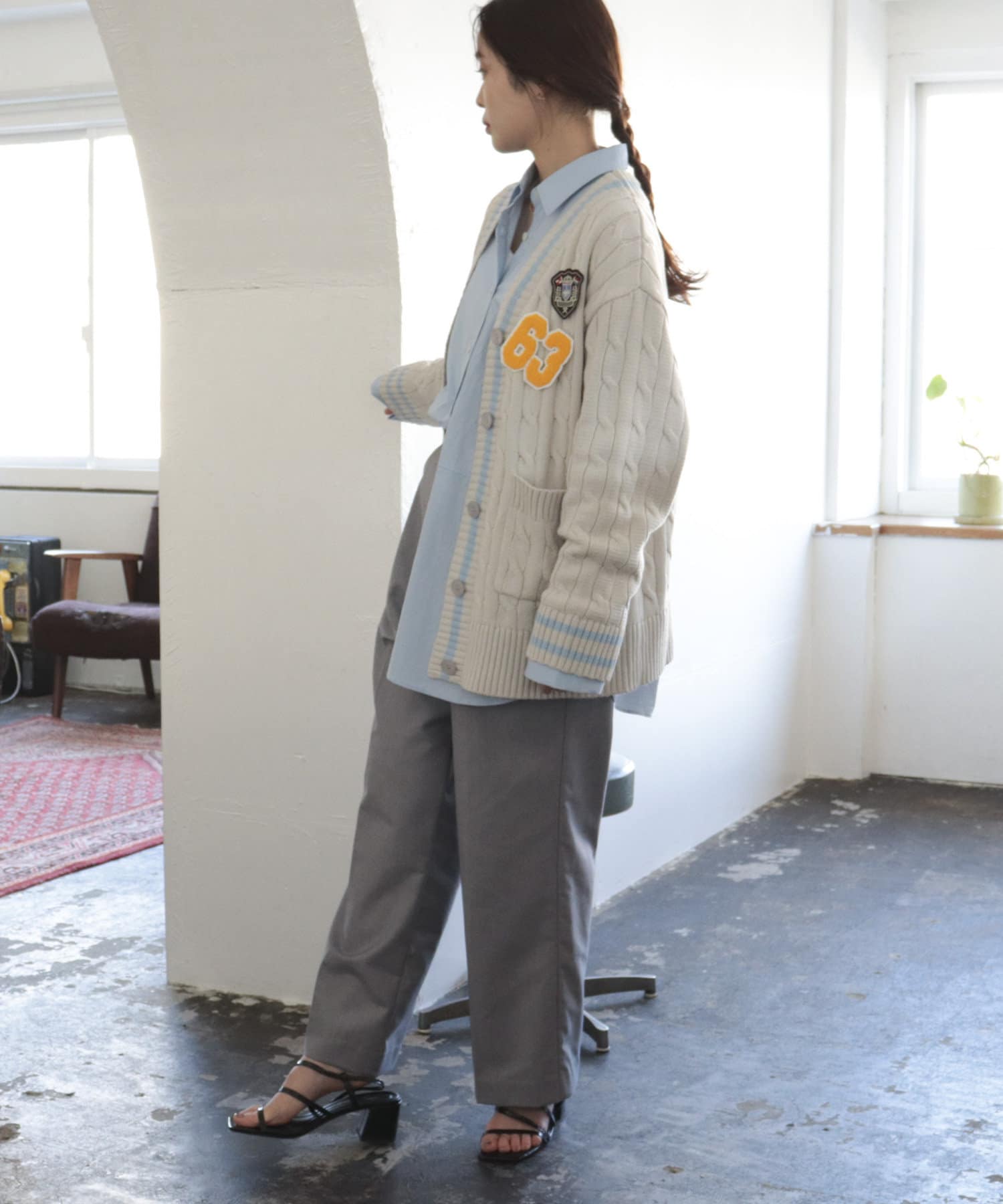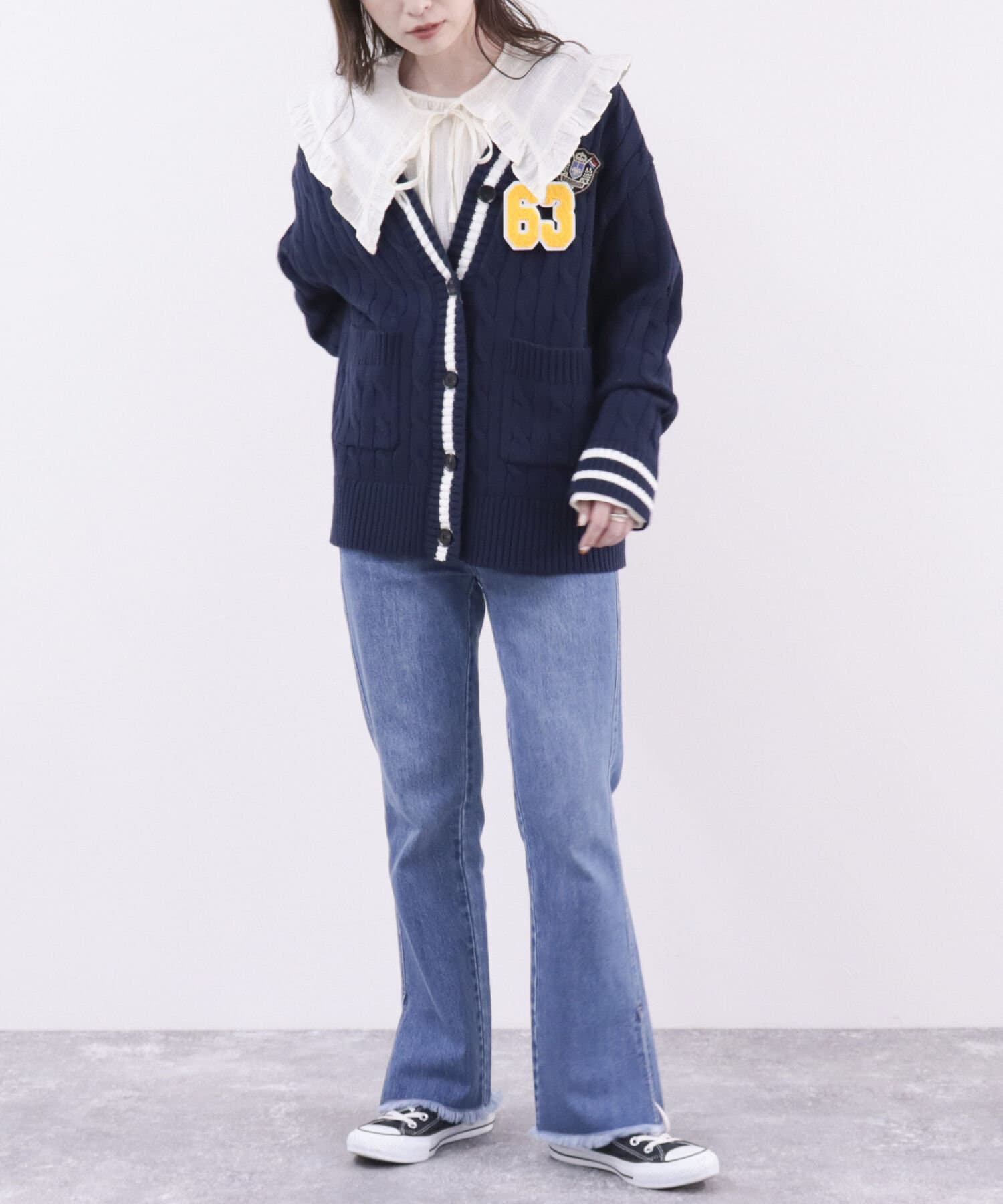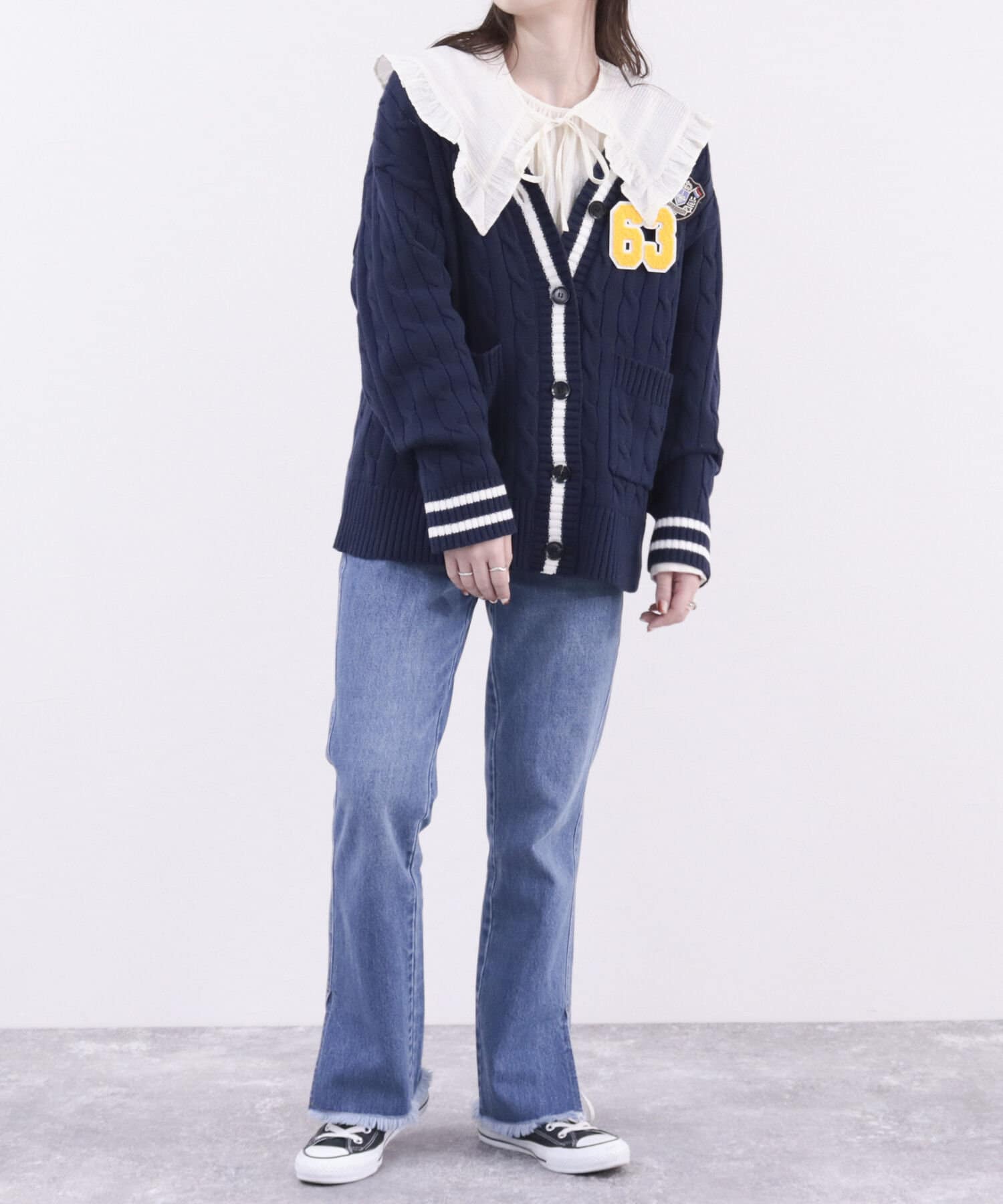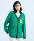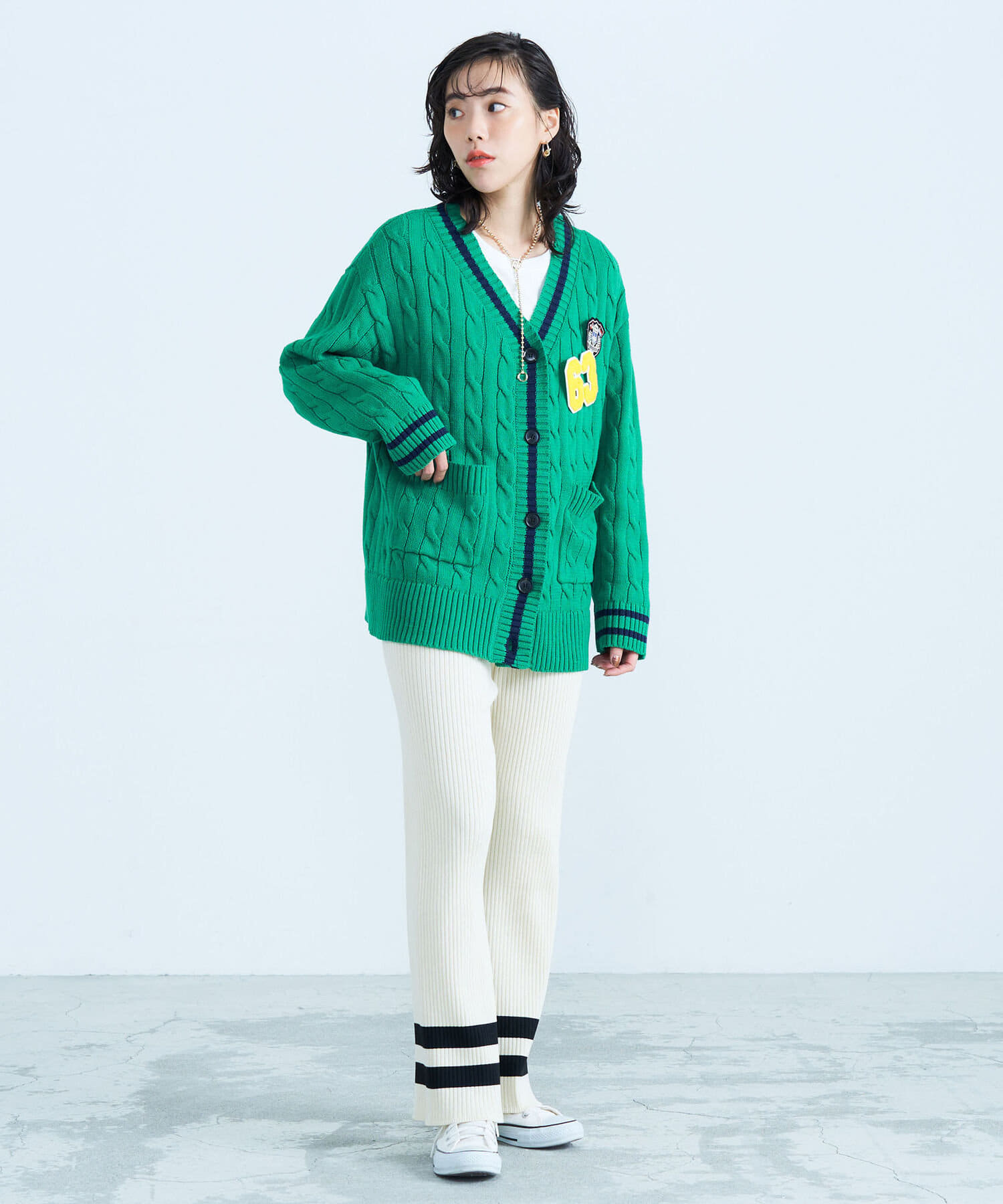 ・胸元のワッペンが目を惹くカレッジカーディガン