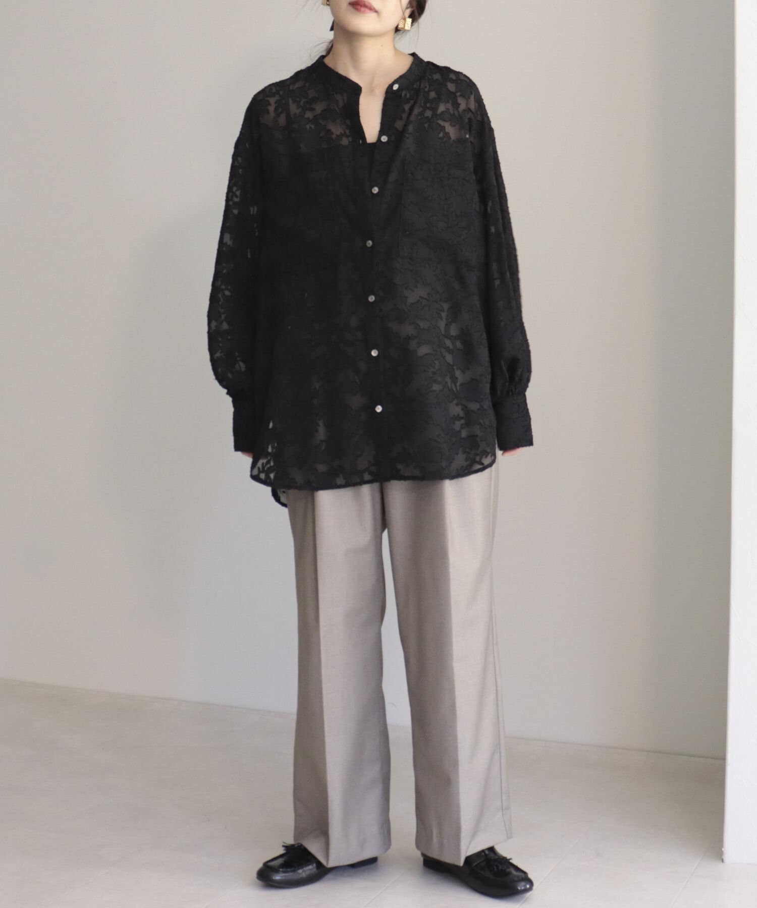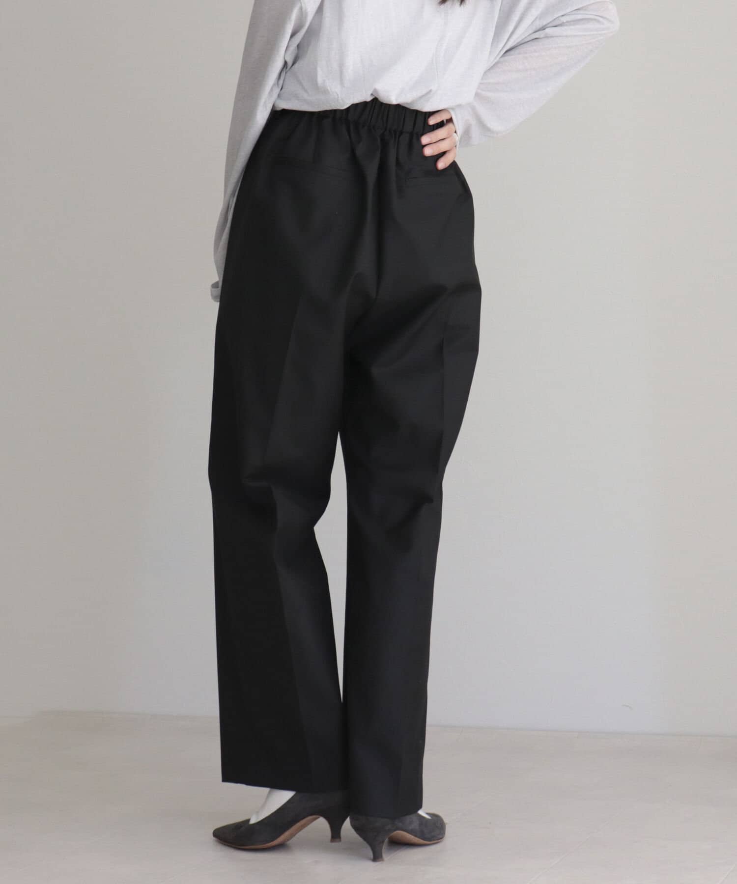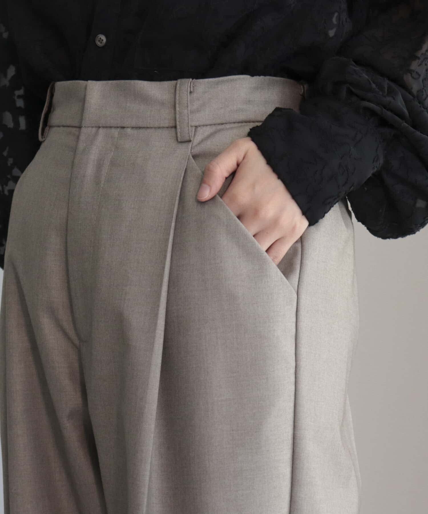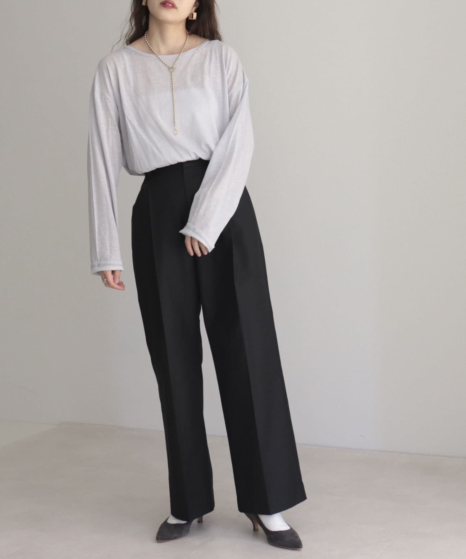 ・ボディラインを拾わない、ストンと落ちるストレートタックワイドシルエット