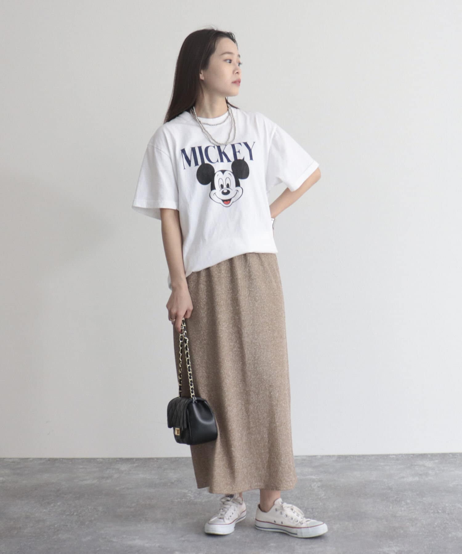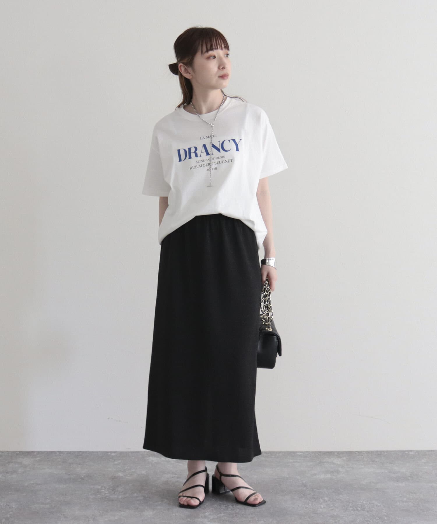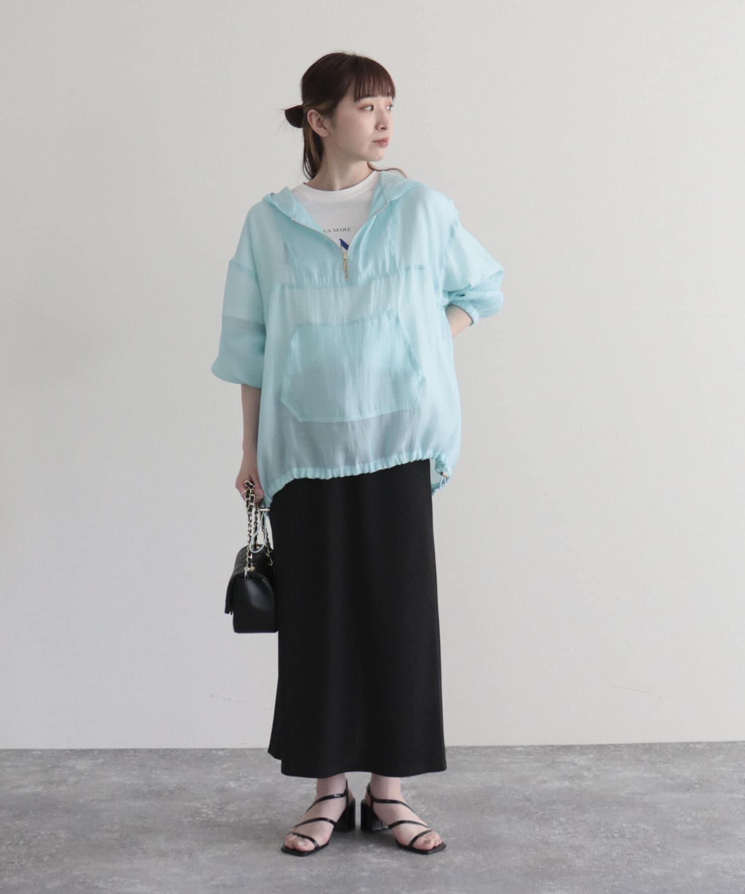 ・ロゴTをあわせたシンプルなスタイリングや、トレンドの透け感のあるアイテムとの合わせがオススメです