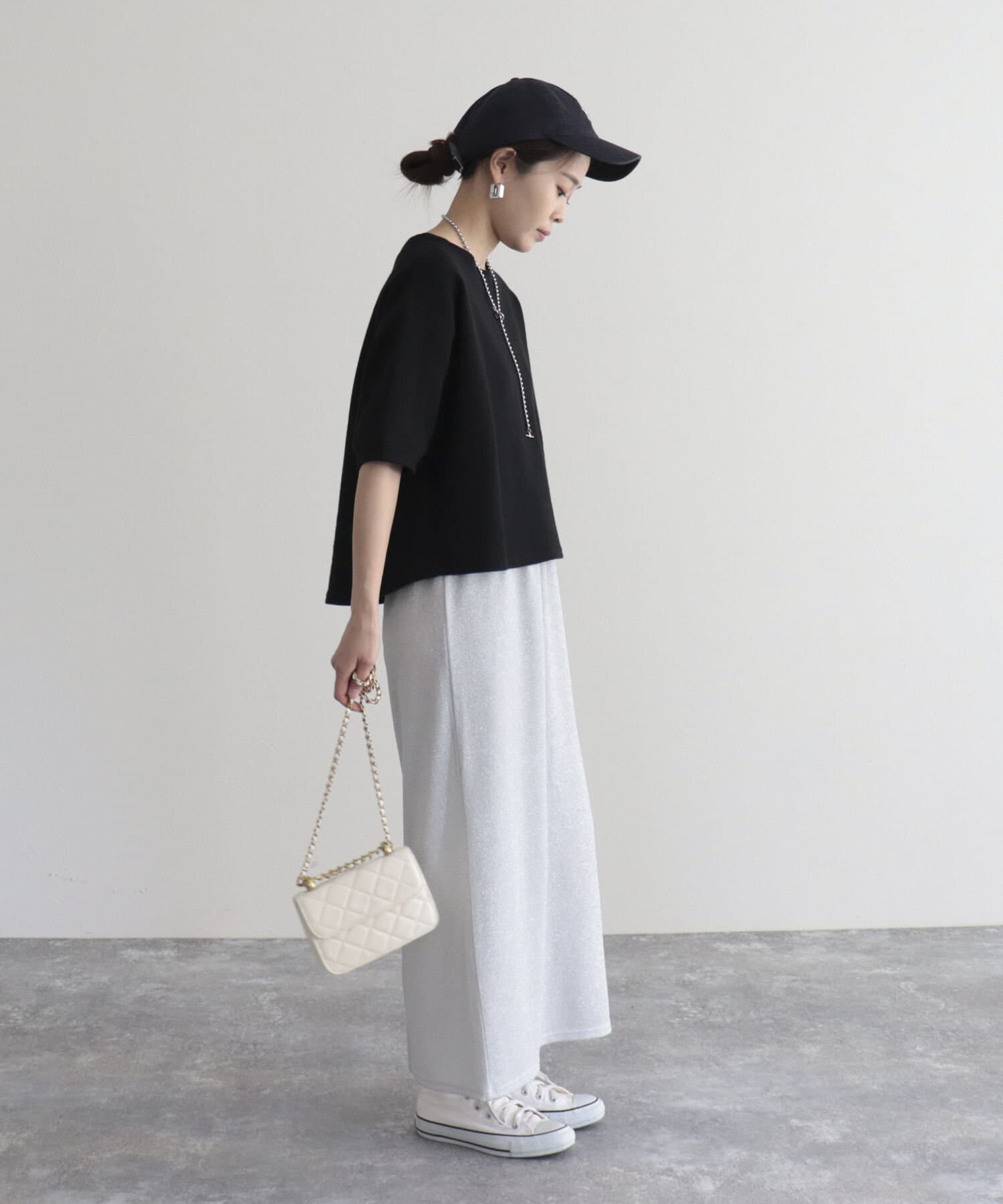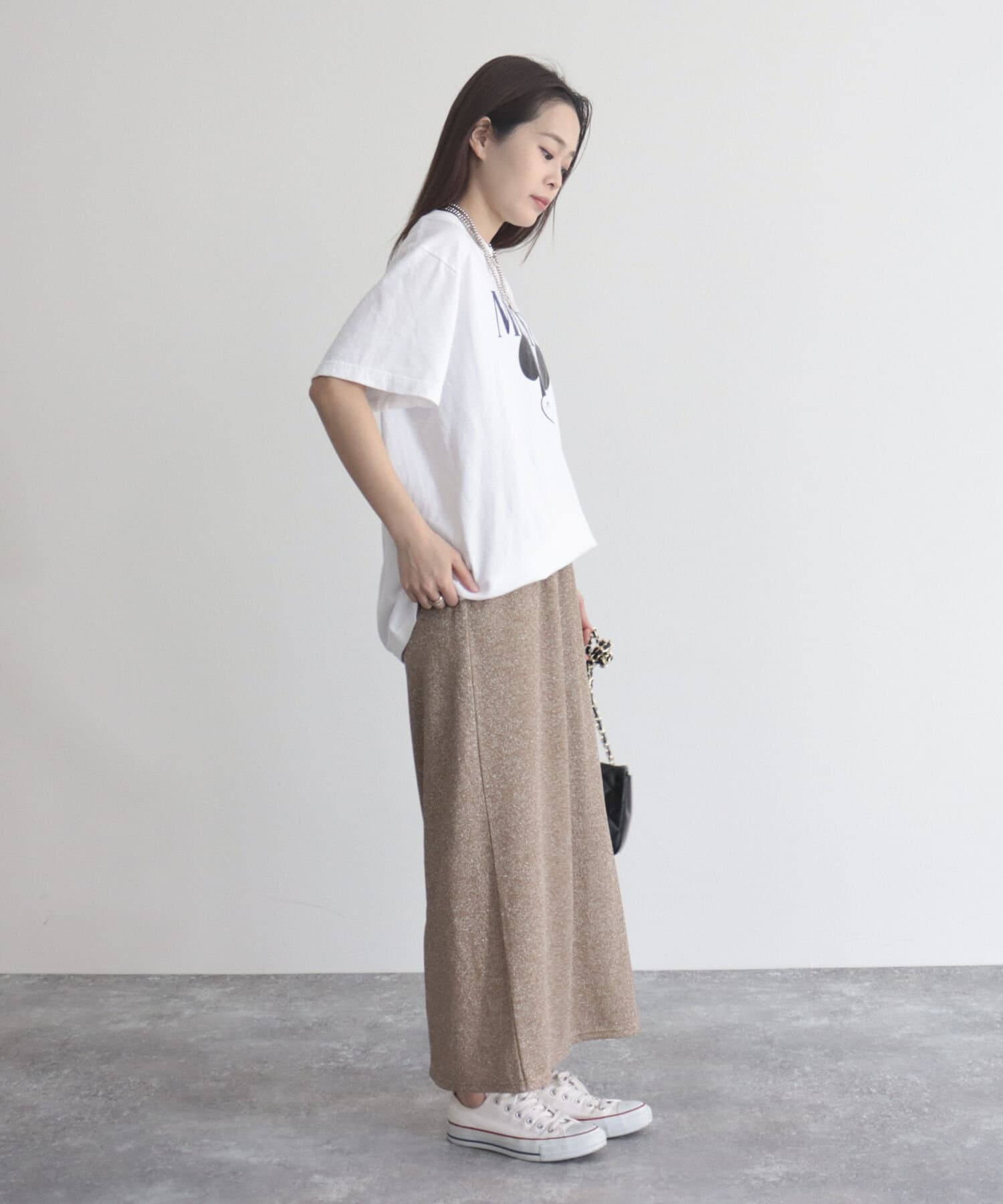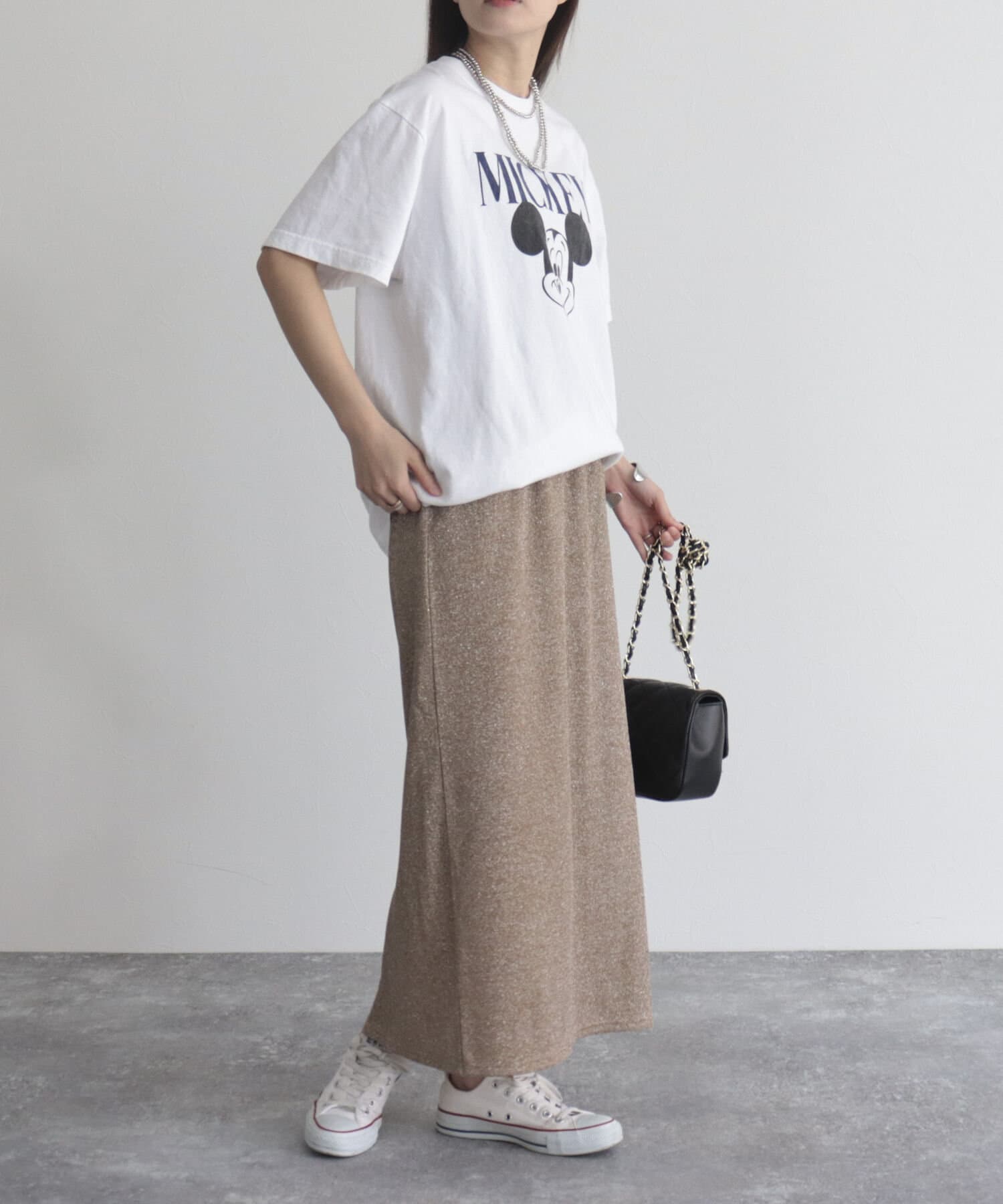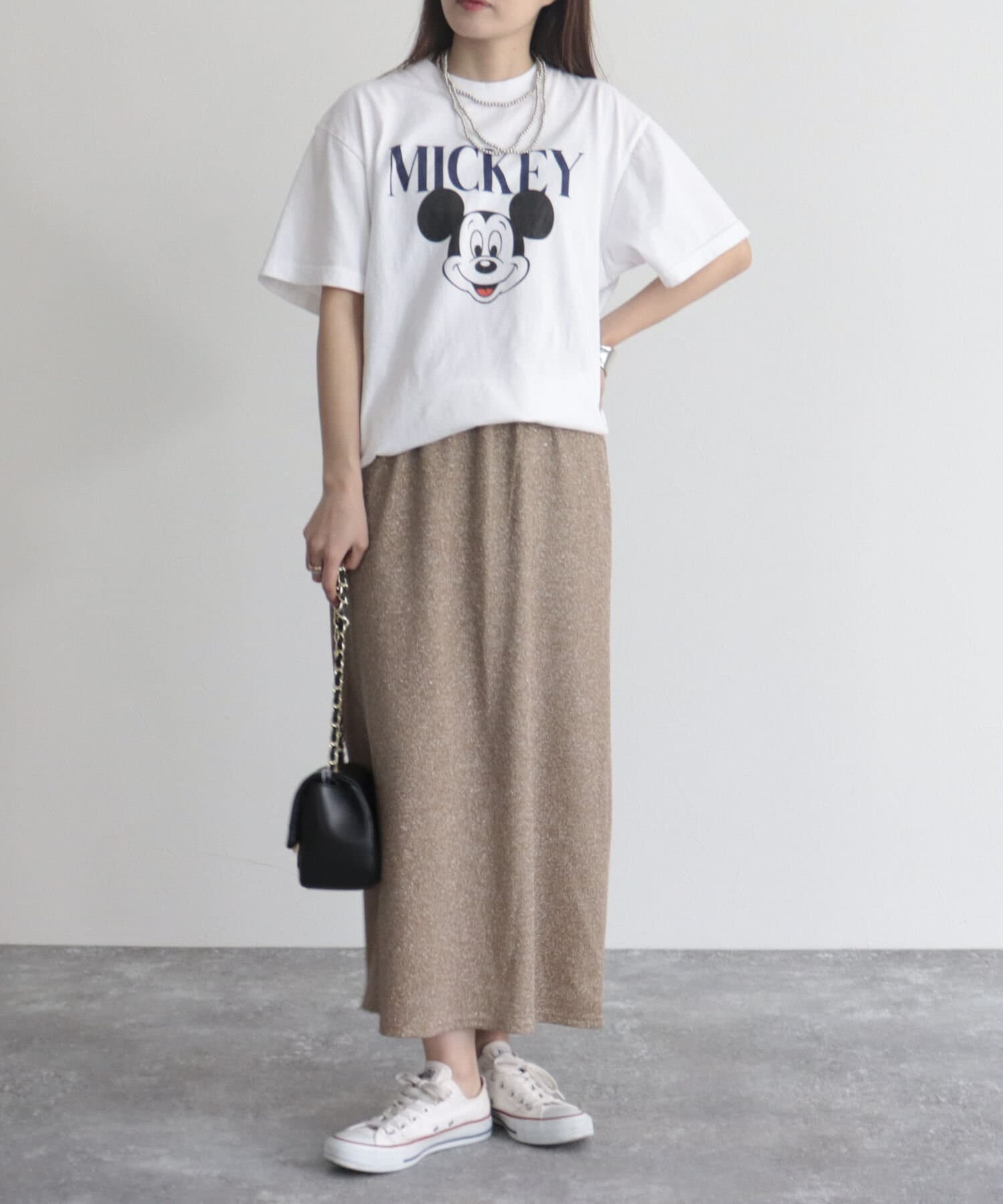・ロゴTをあわせたシンプルなスタイリングや、トレンドの透け感のあるアイテムとの合わせがオススメです