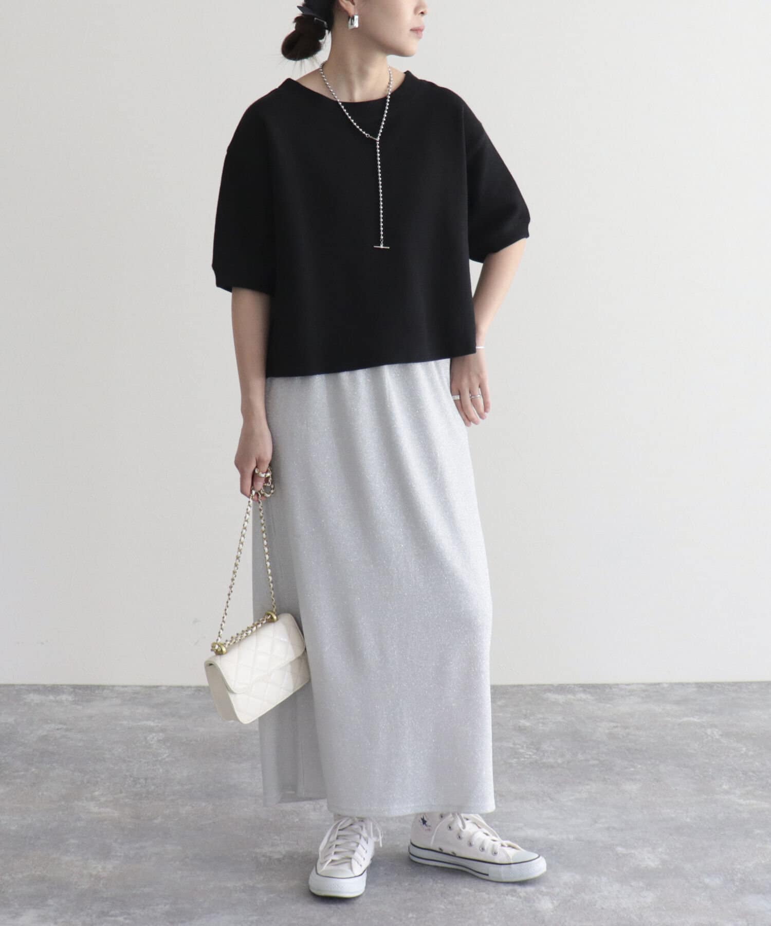 ・すとんと落ちるタイトシルエットでレディライクな着こなしに