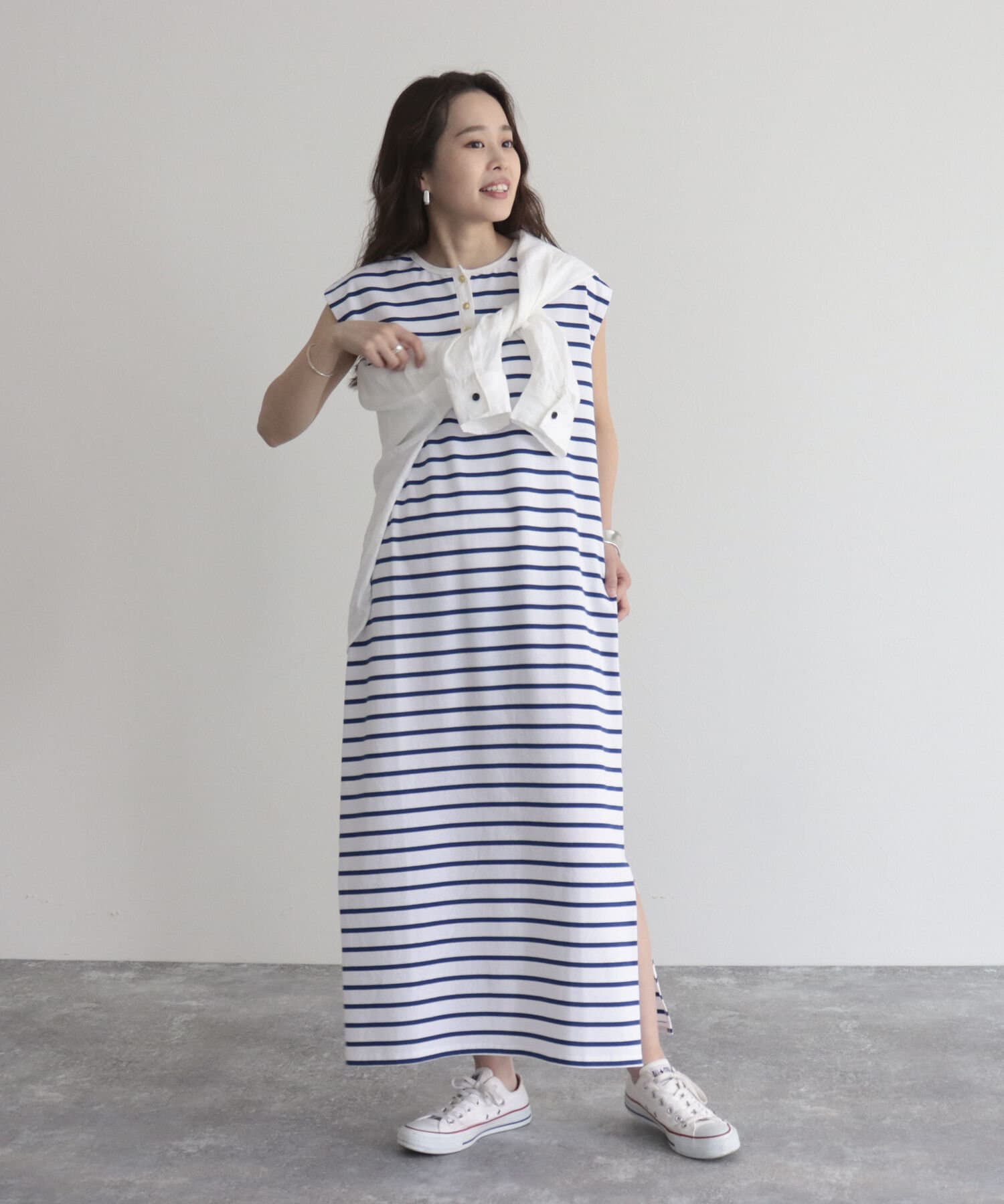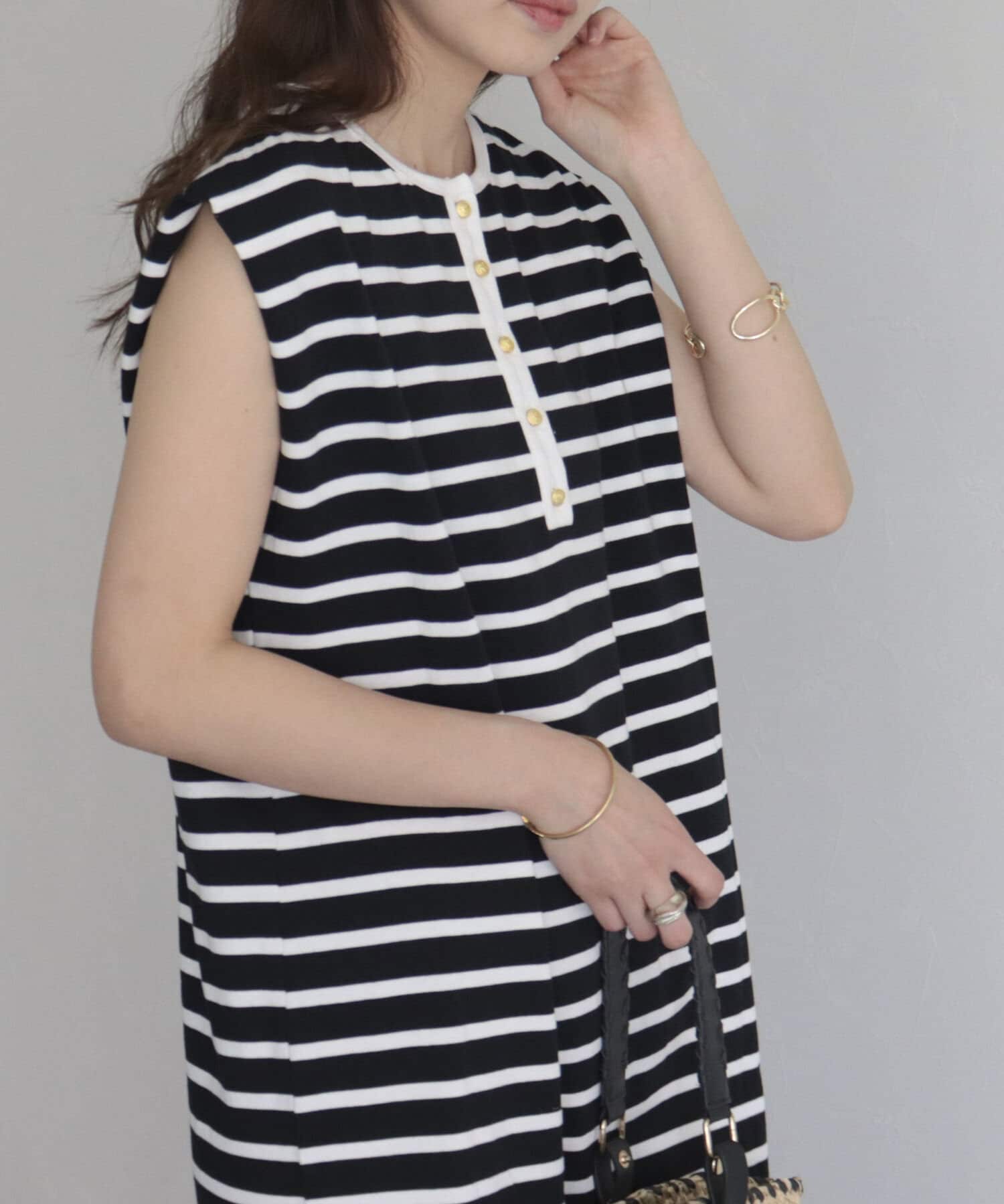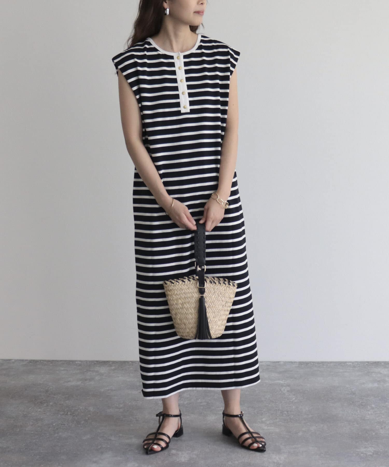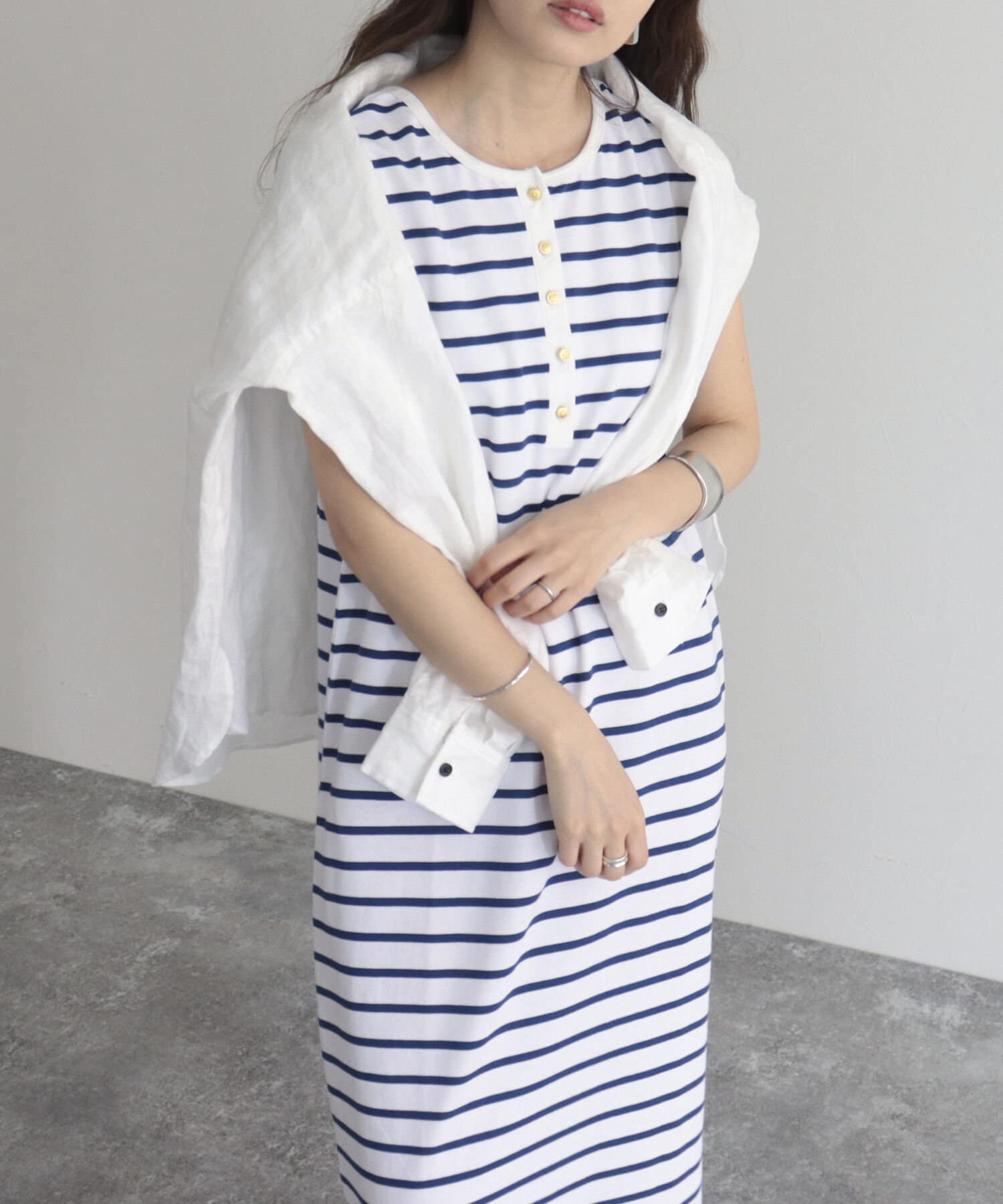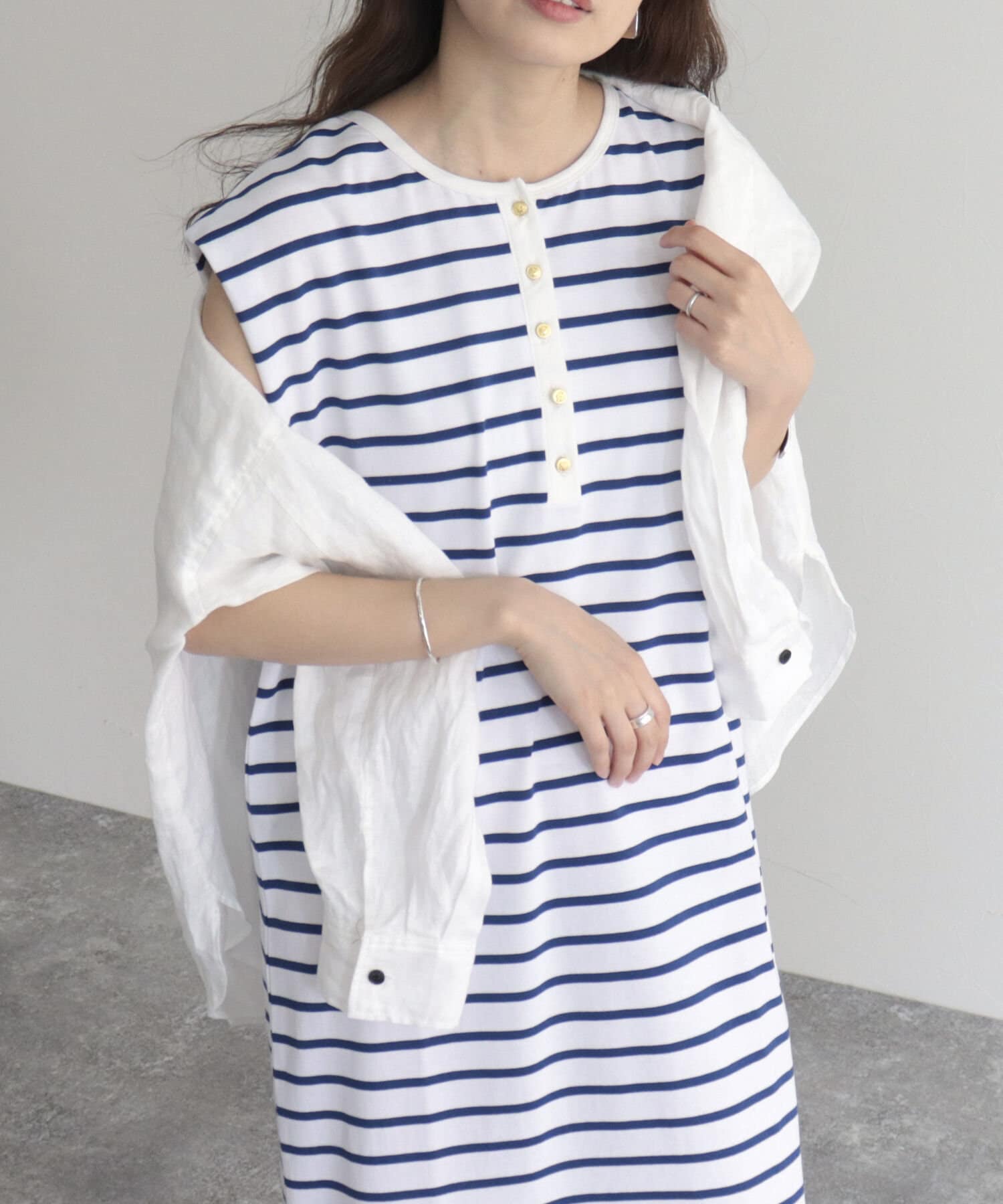 ・両前なので着回しを楽しめるカットソー素材のボーダーワンピース